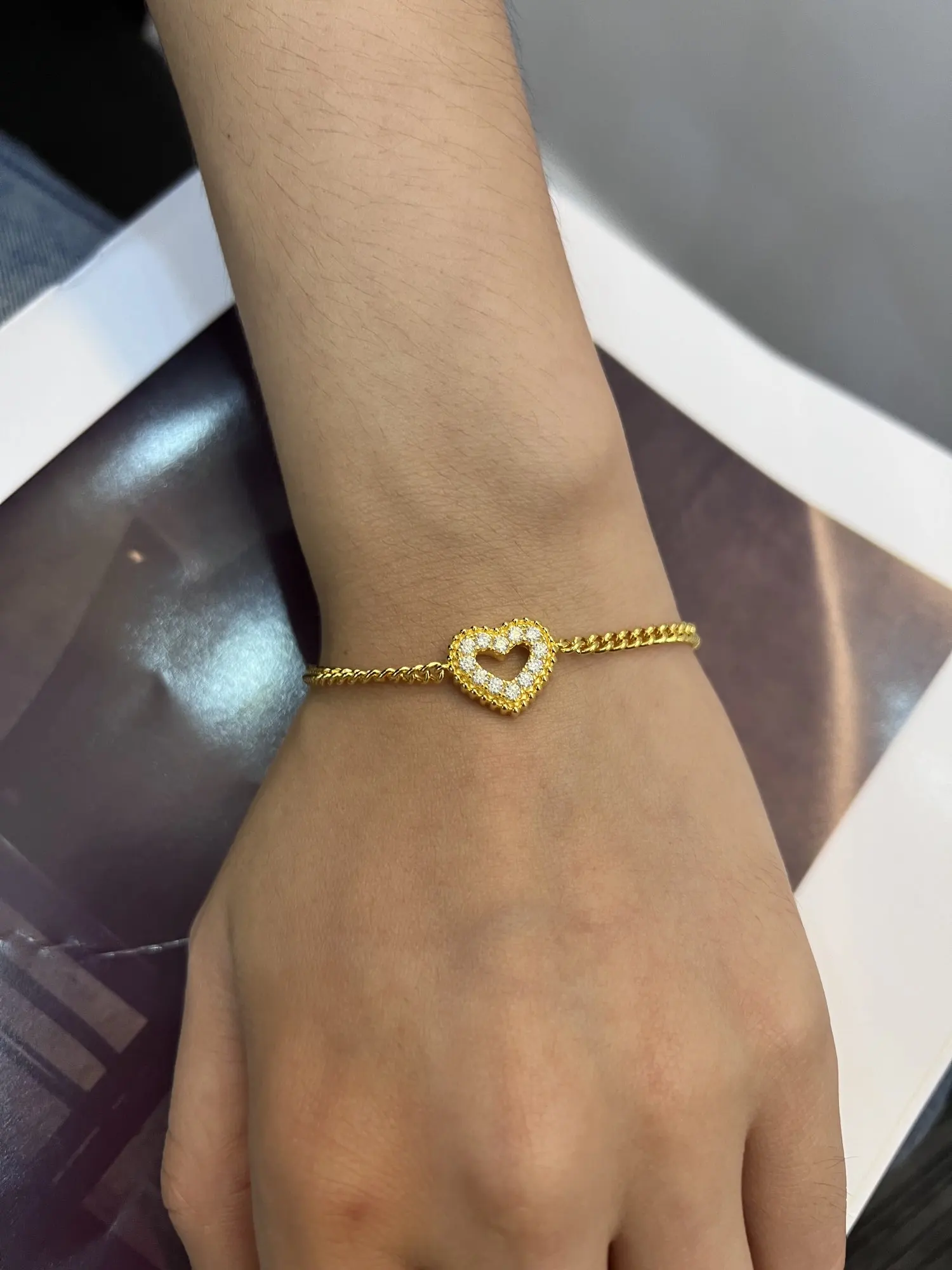 Bellartini Gold S925 Sterling Silver Moissanite Diamond Heart Shape Bracelet