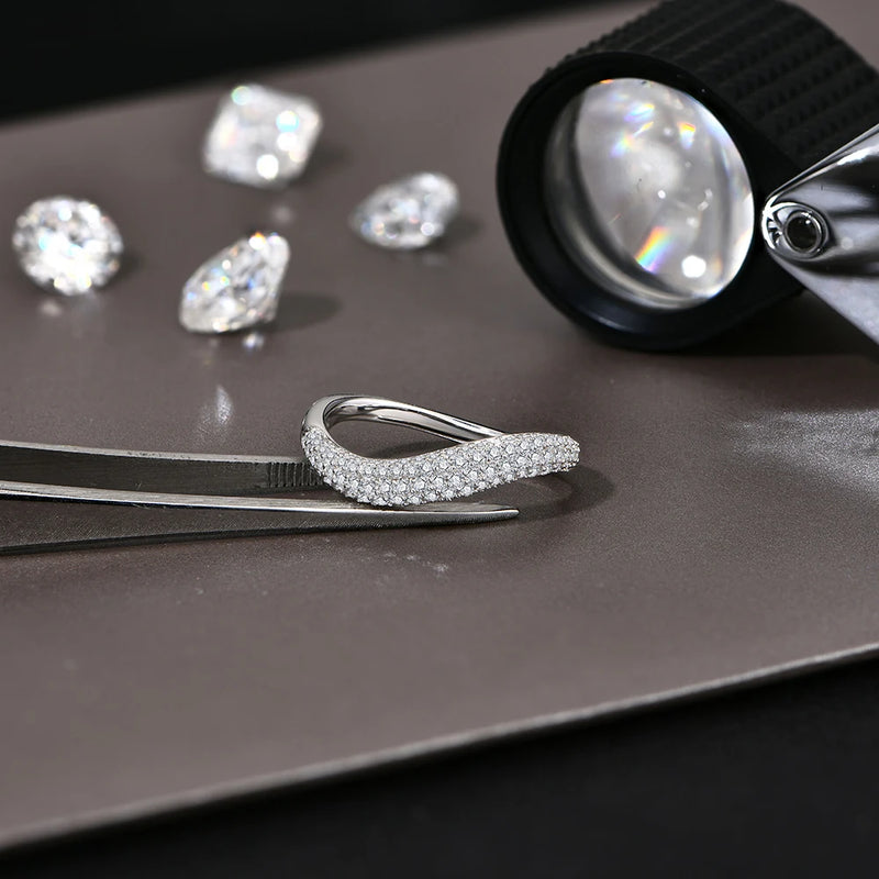 Bellartini 18k Gold Luxury D Color Moissanite Ring VVS1 Lab Diamond Wavy Band