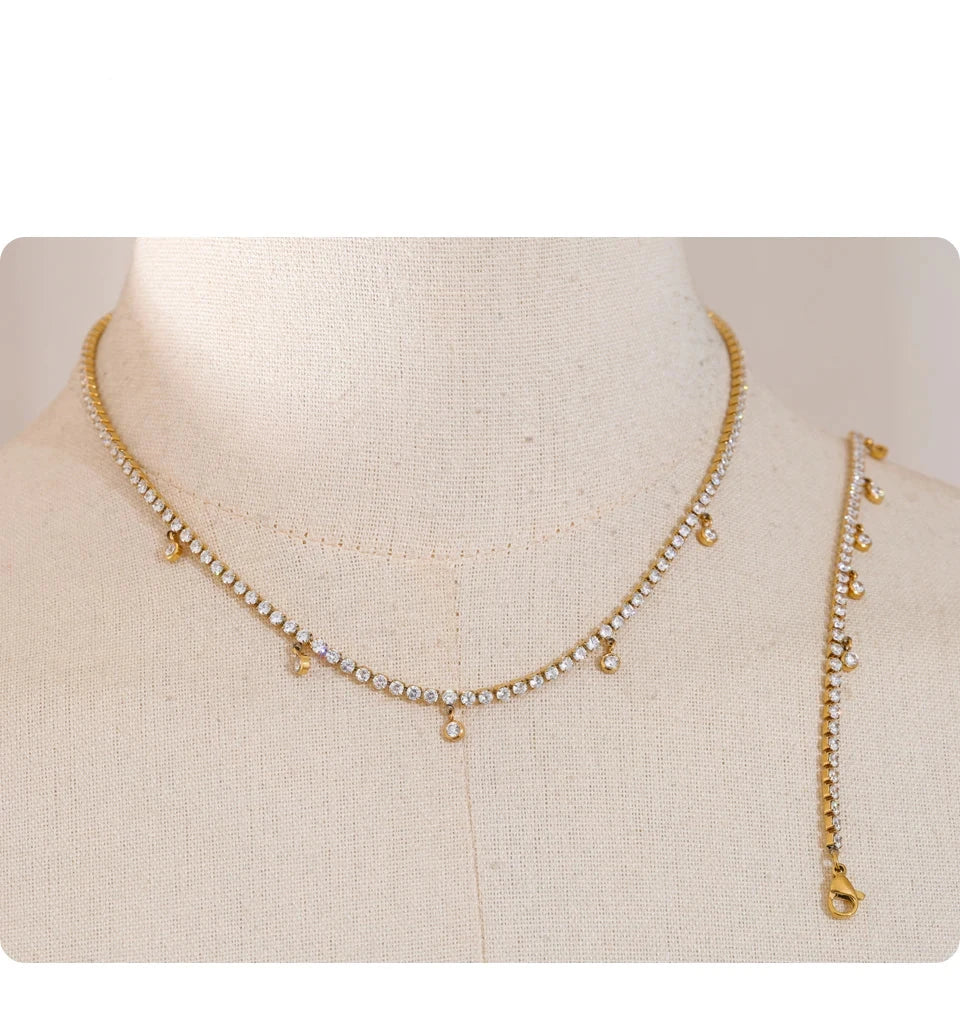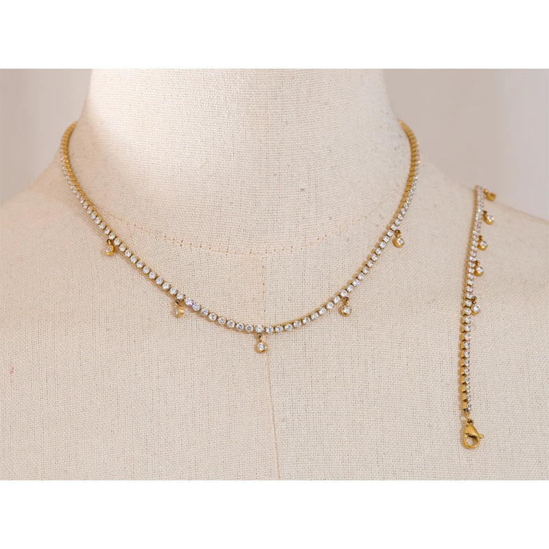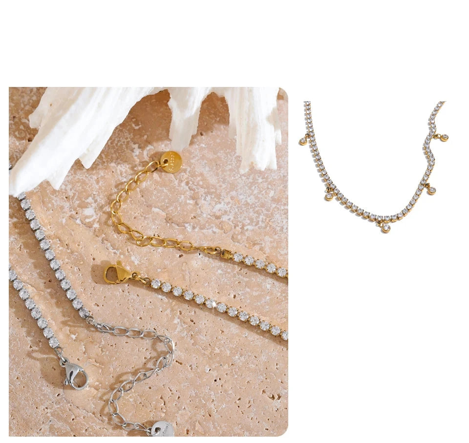 Bellartini Gold Shiny Cubic Zirconia Chain Necklace