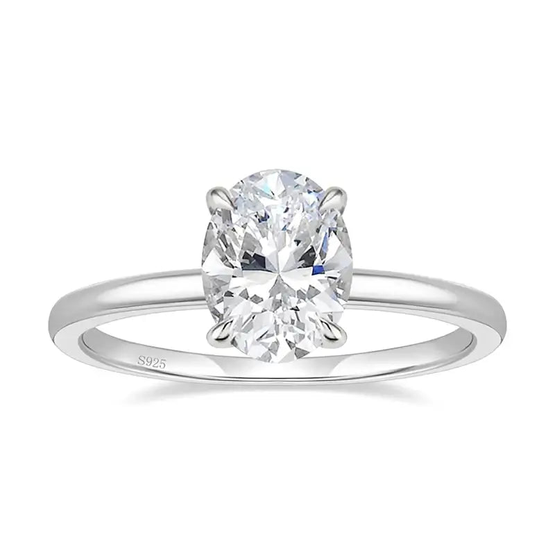 Bellartini Verona Solid 925 Sterling Silver 3.0CT Oval Cut Zirconia Solitaire Ring