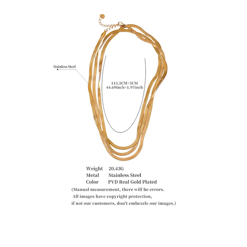 Bellartini Gold 110CM Exquisite Flat Snake Necklace WP Jewelry