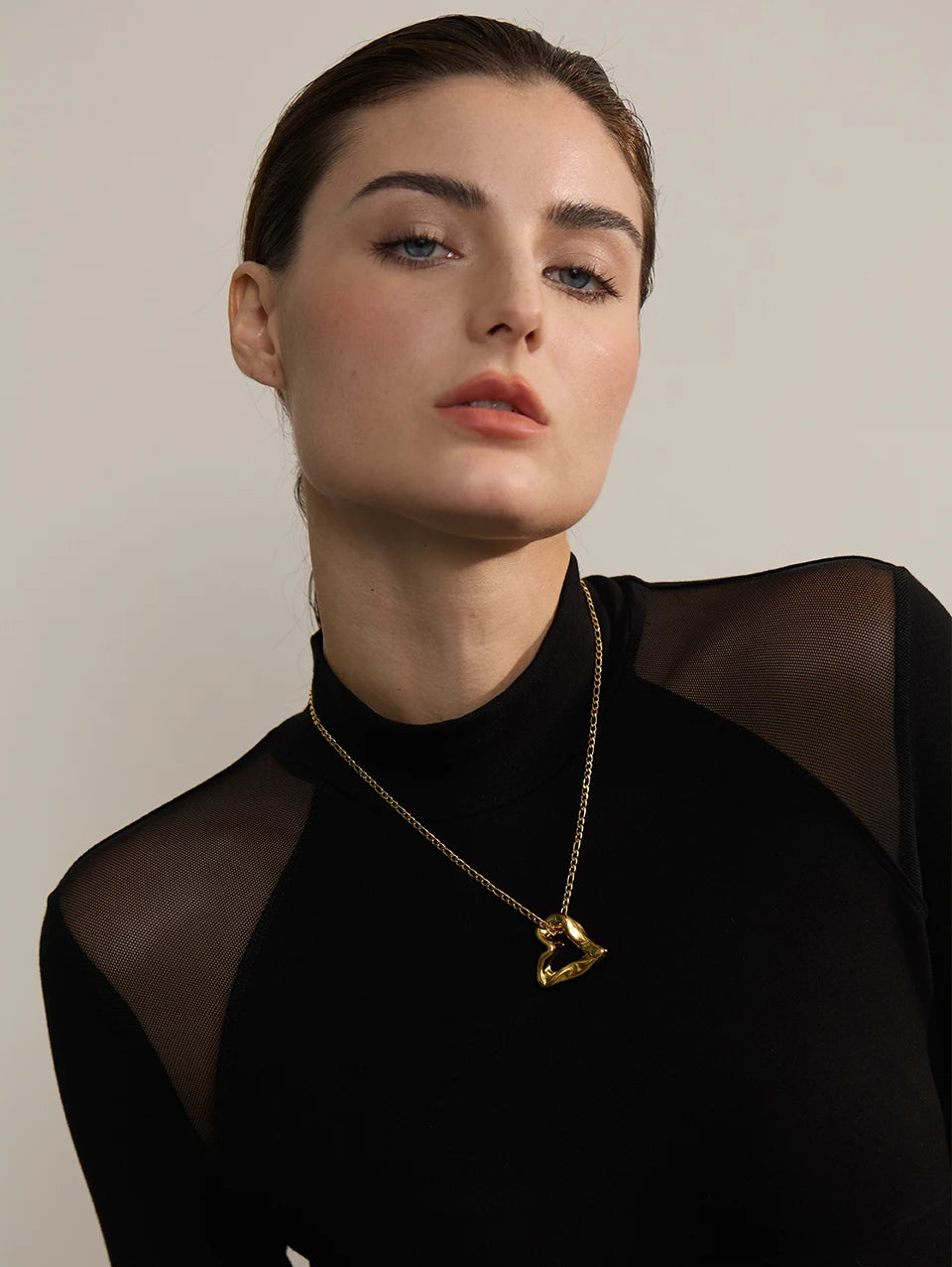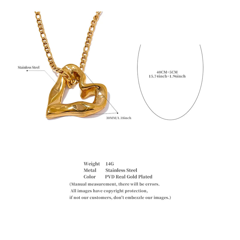 Bellartini 18K Gold Minimalist Heart Love Hollow Necklace Pendant
