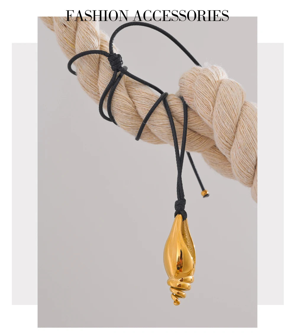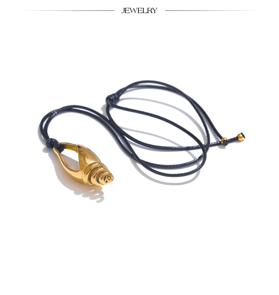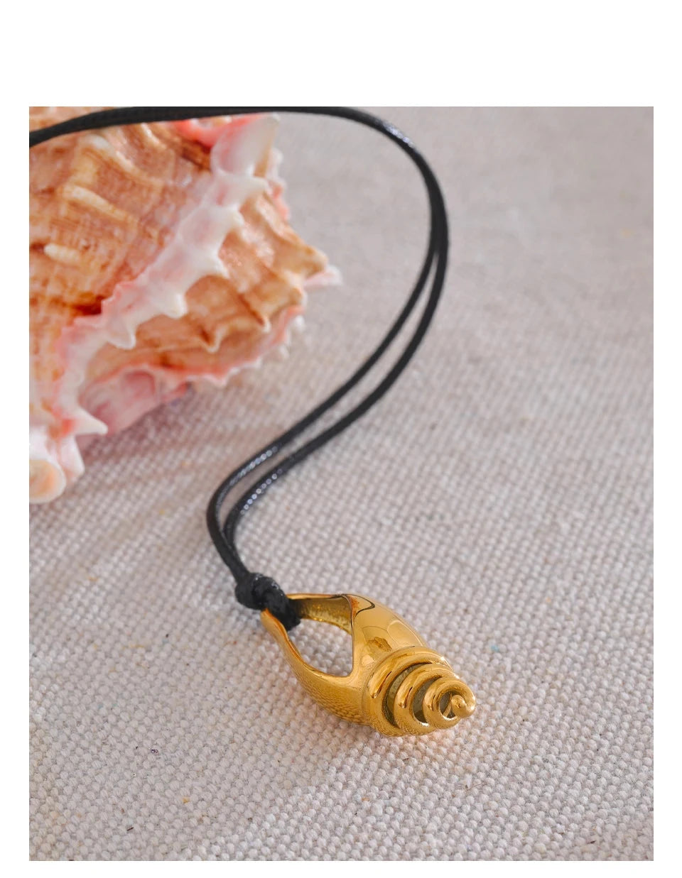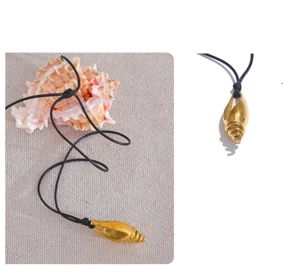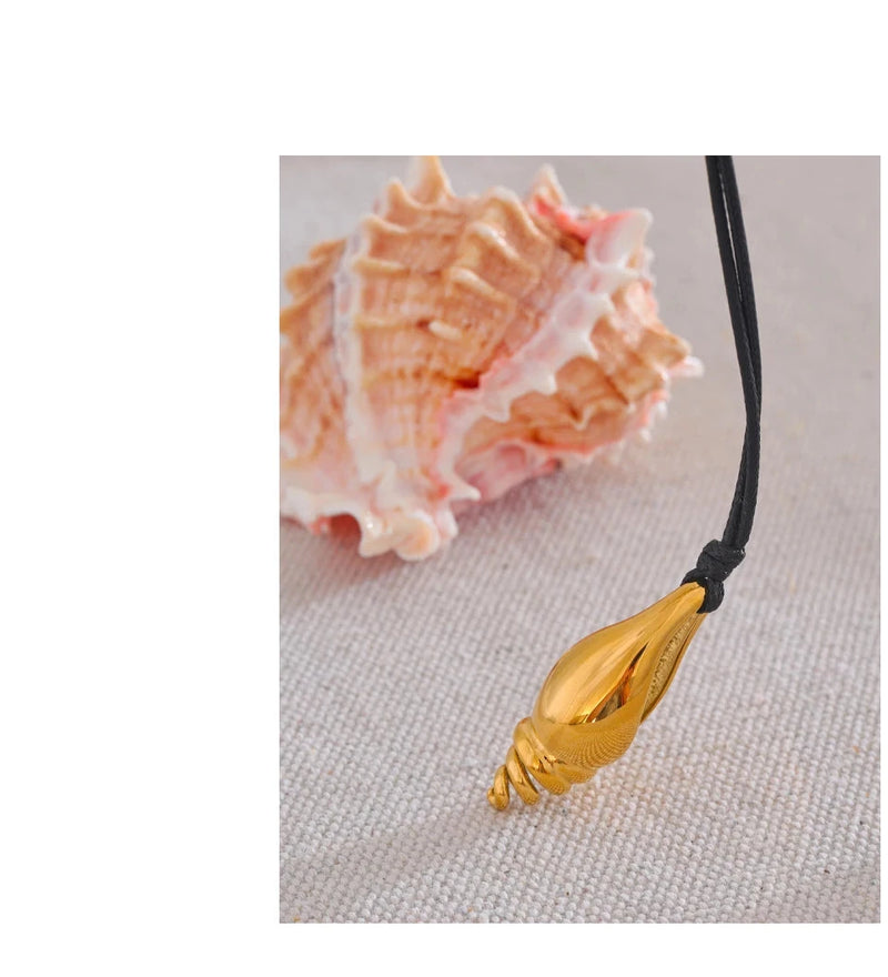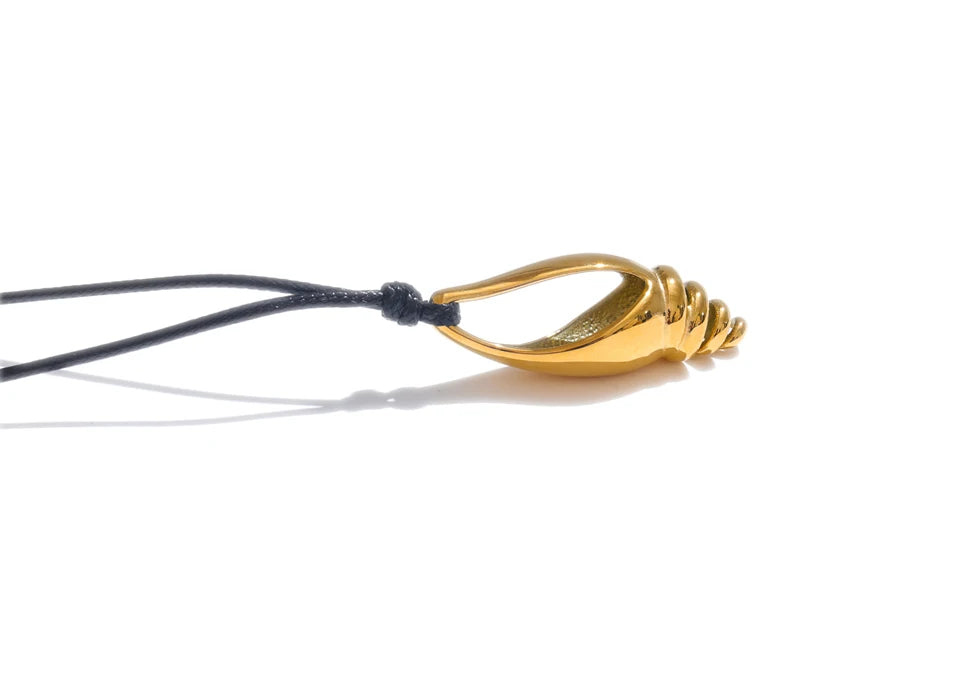 Bellartini Gold Conch Shell Leather Pendant Necklace