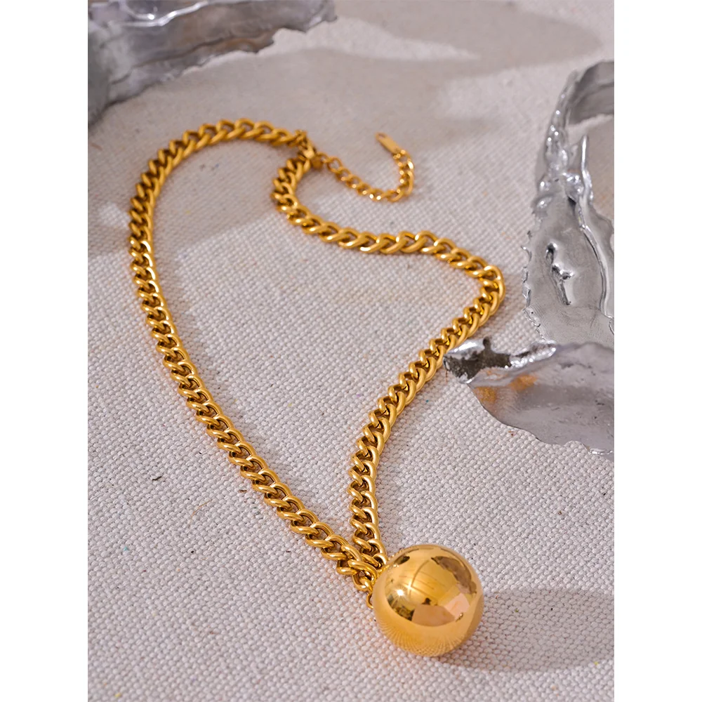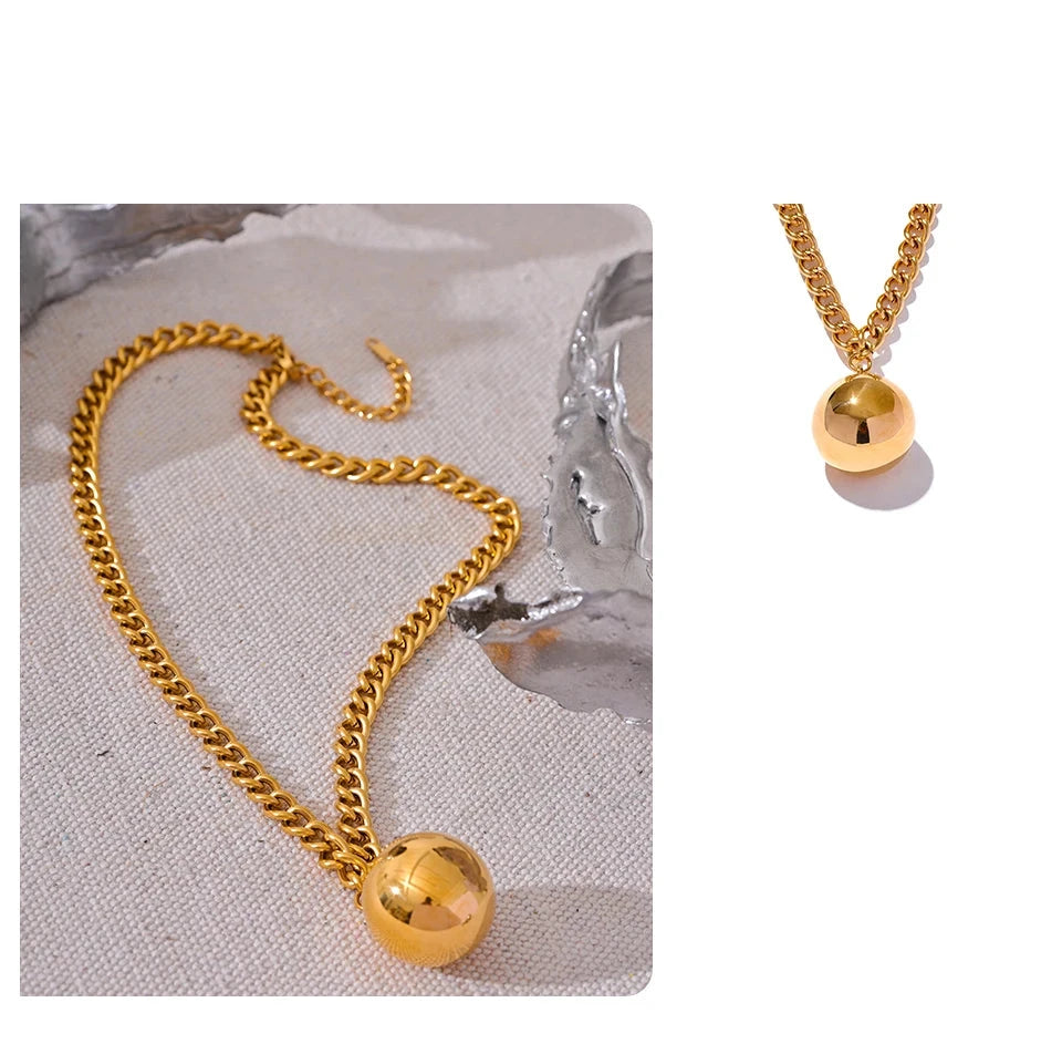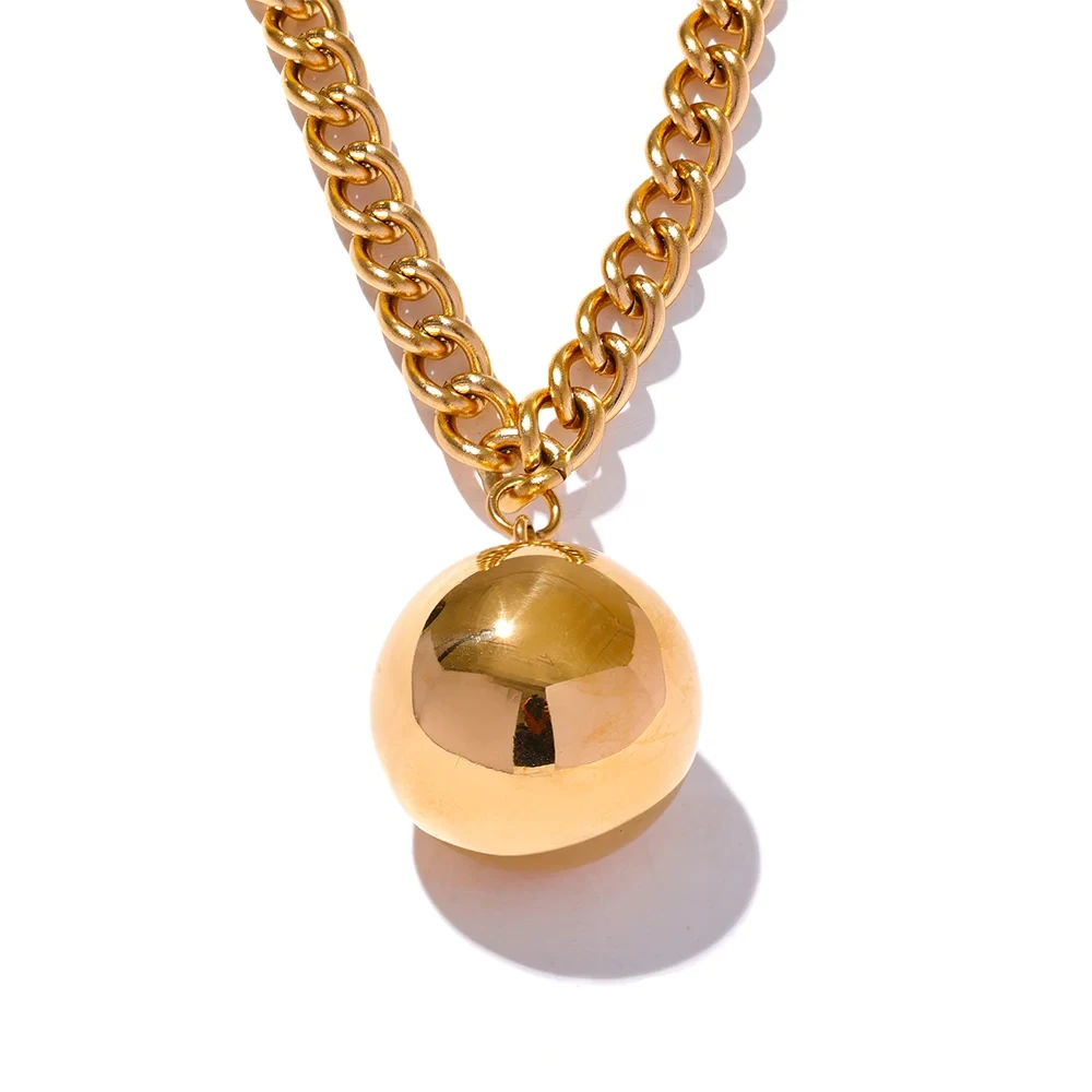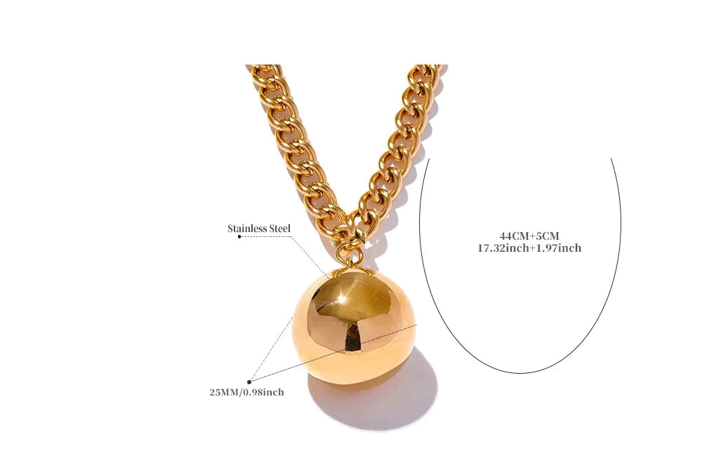 Bellartini Gold Bead Ball Smooth Pendant Necklace 25mm WP Jewelry