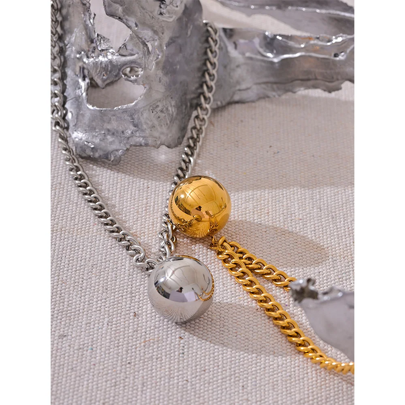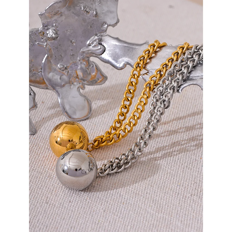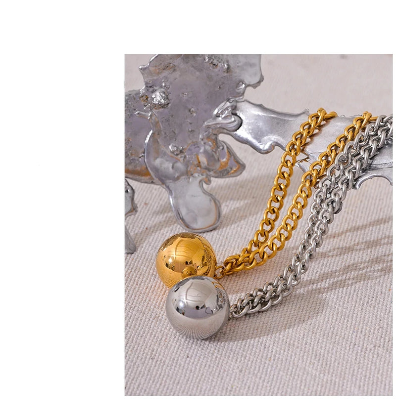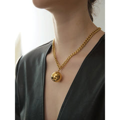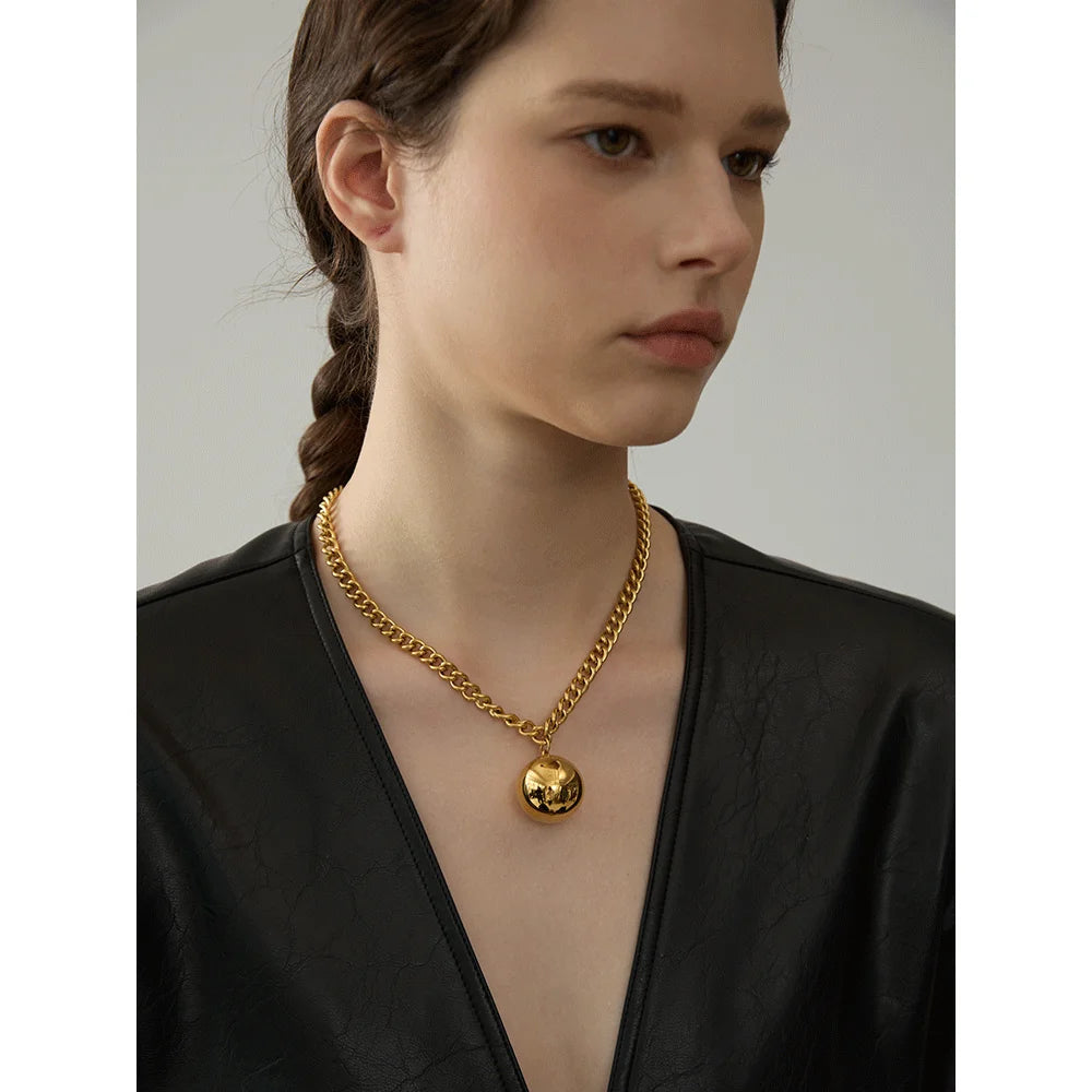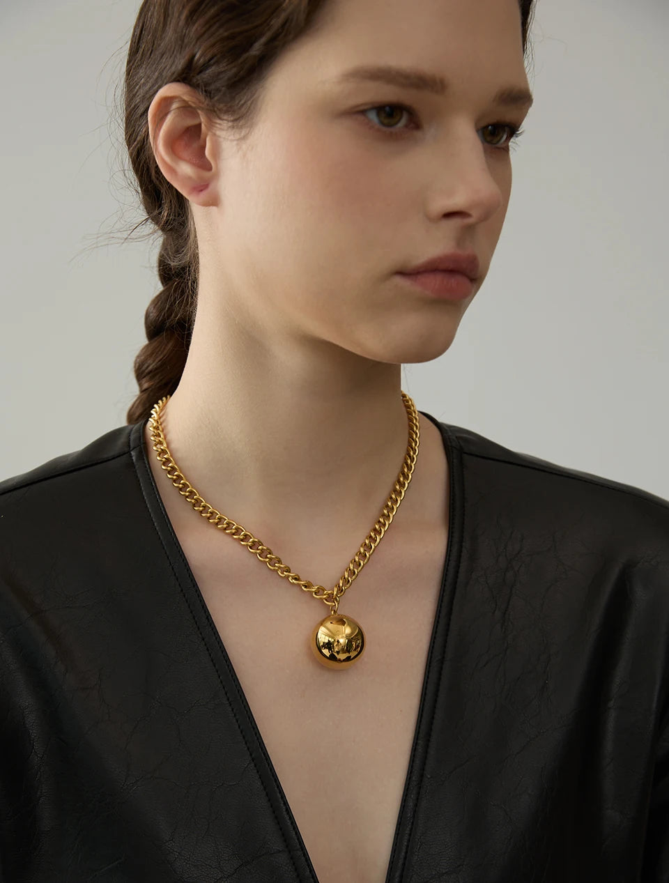 Bellartini Gold Bead Ball Smooth Pendant Necklace 25mm WP Jewelry