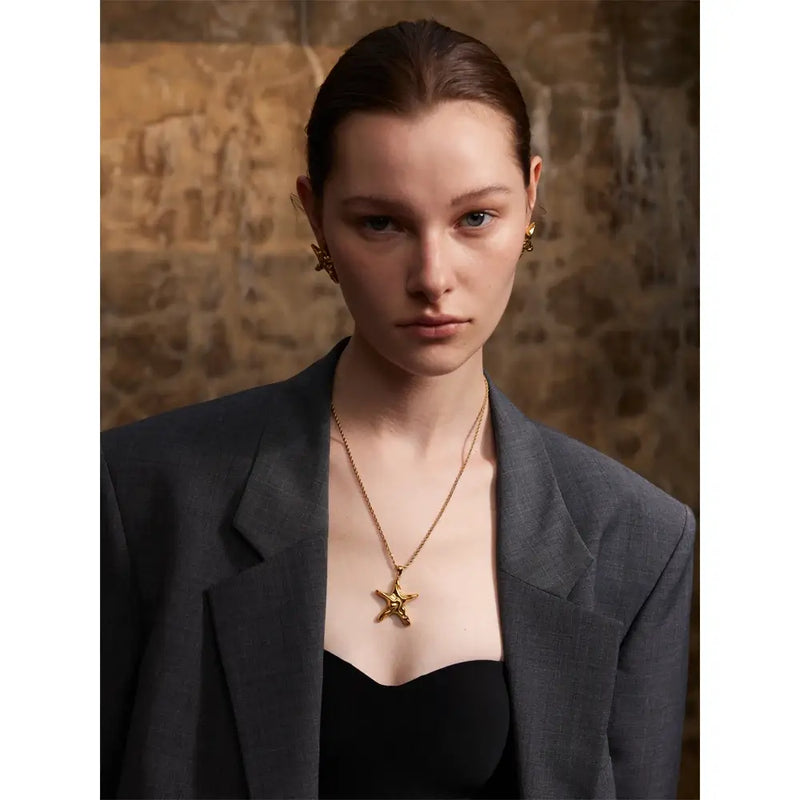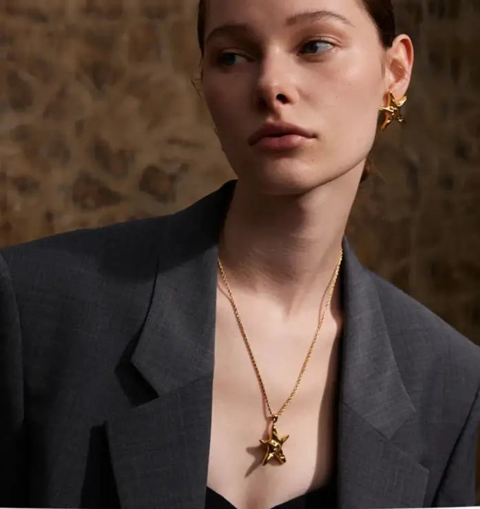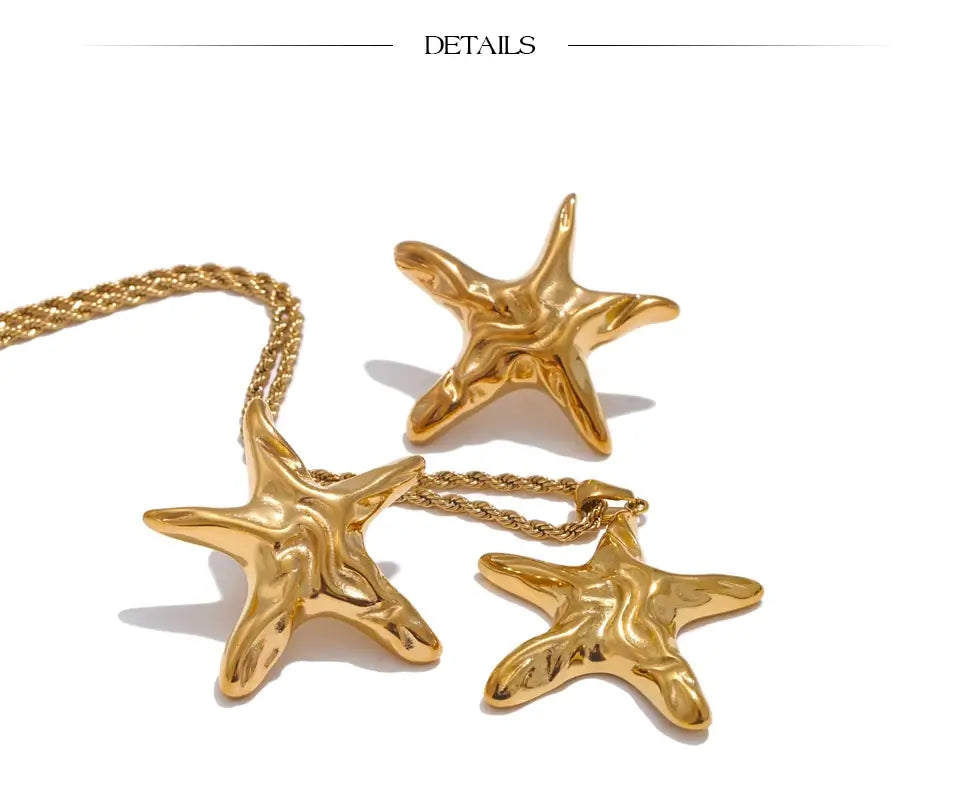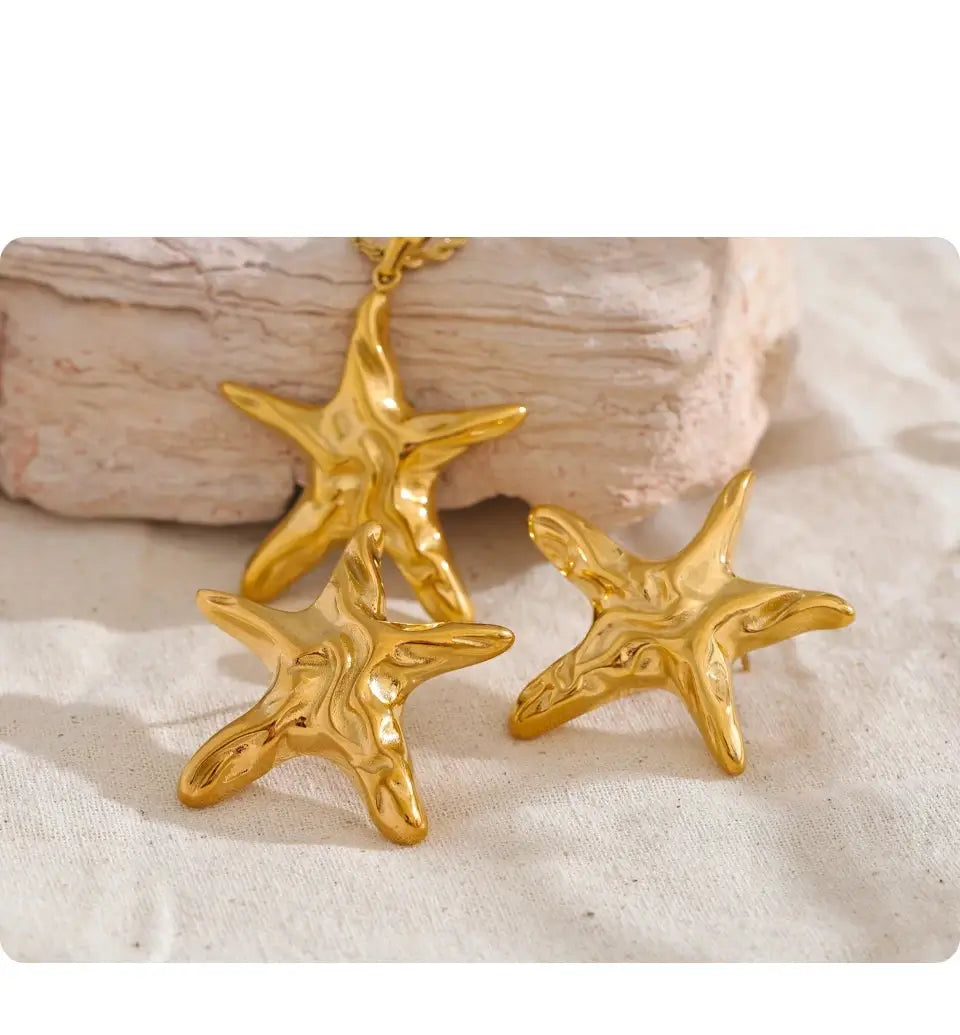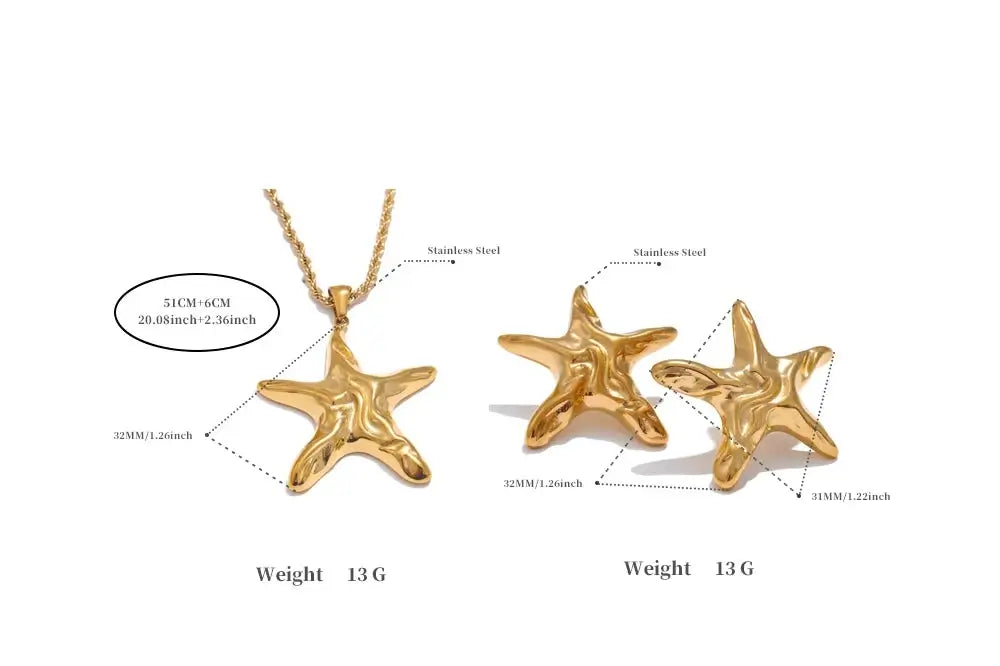Bellartini 18K Gold Set Necklace Stud Earrings Beach Fashion Casting