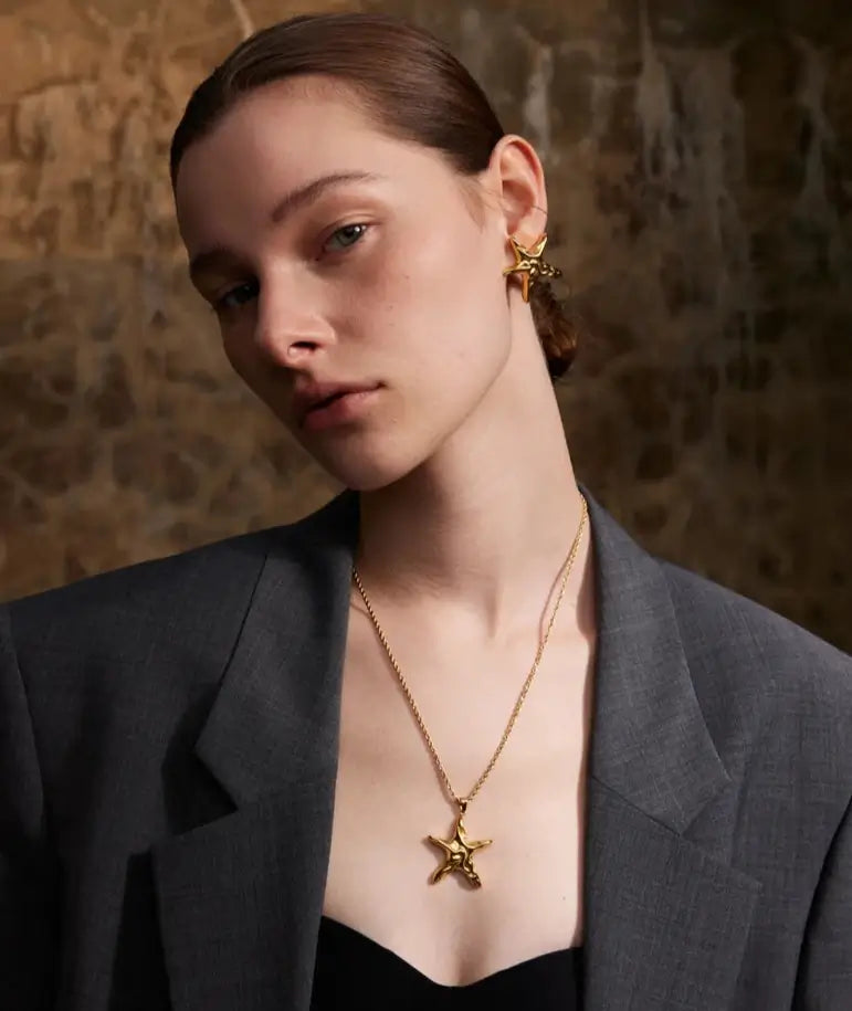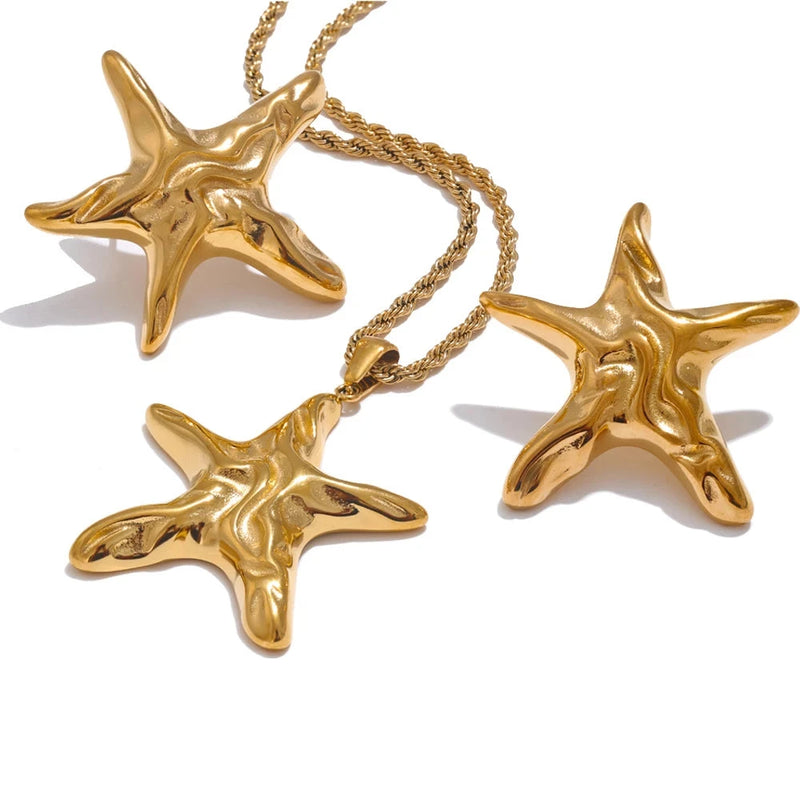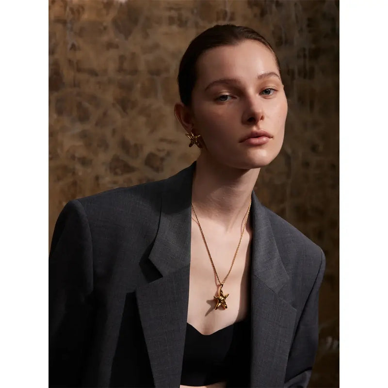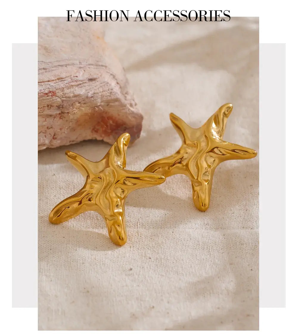 Bellartini 18K Gold Set Necklace Stud Earrings Beach Fashion Casting