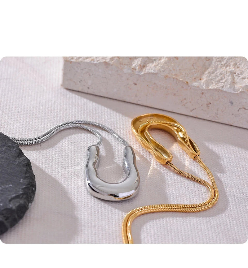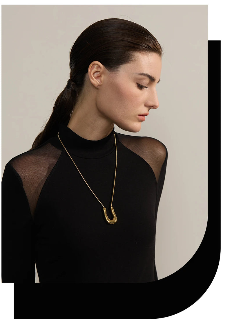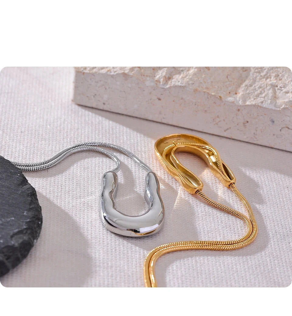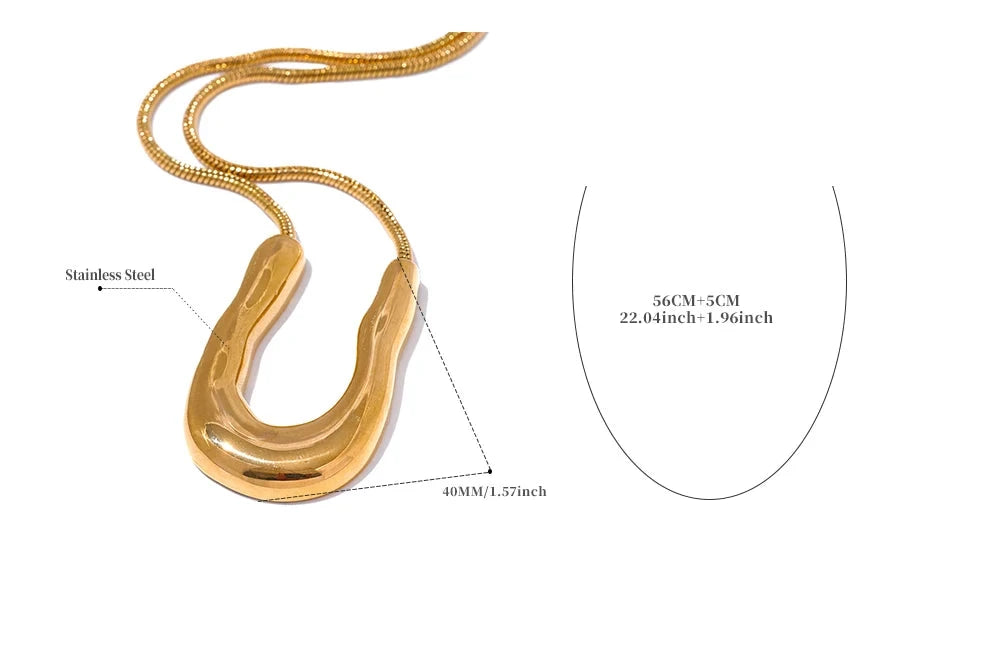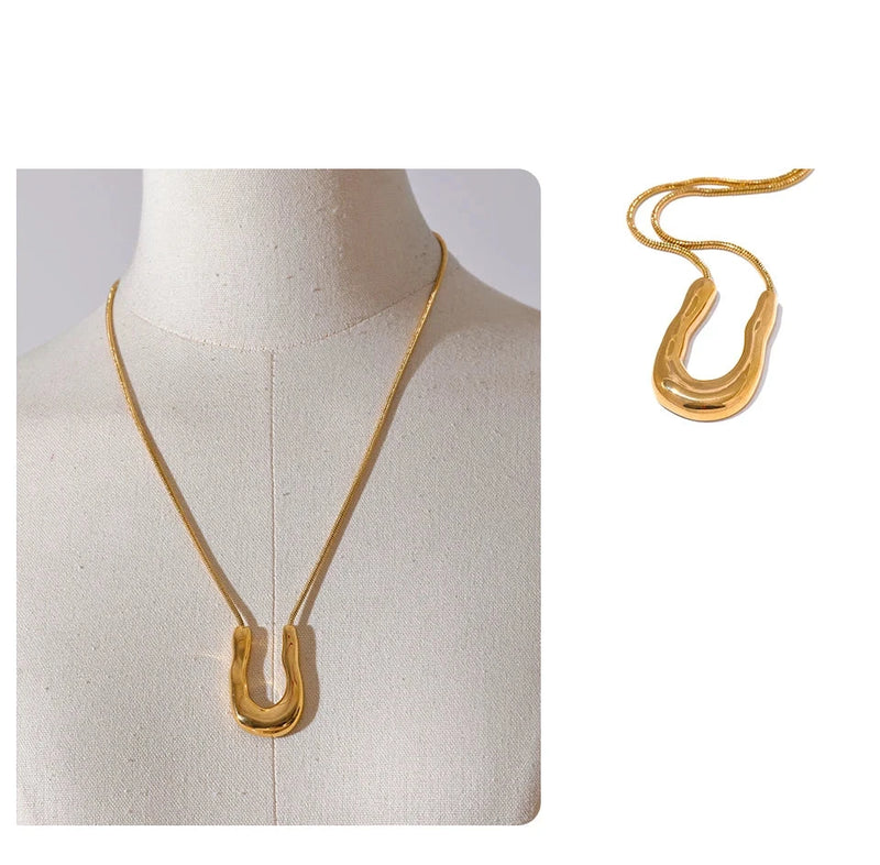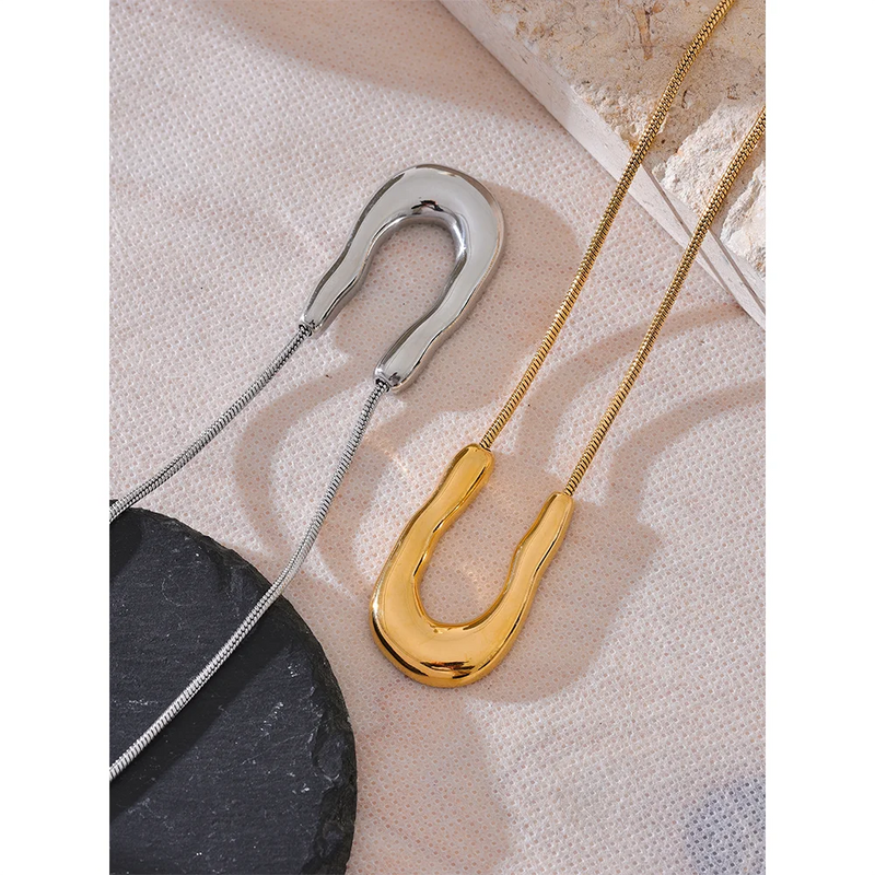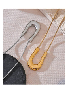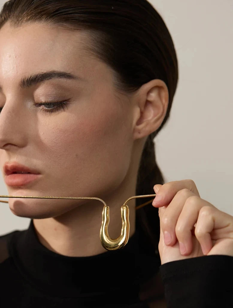 Bellartini 18K Gold U-Shape Metal Necklace Pendant Collar Neck WP