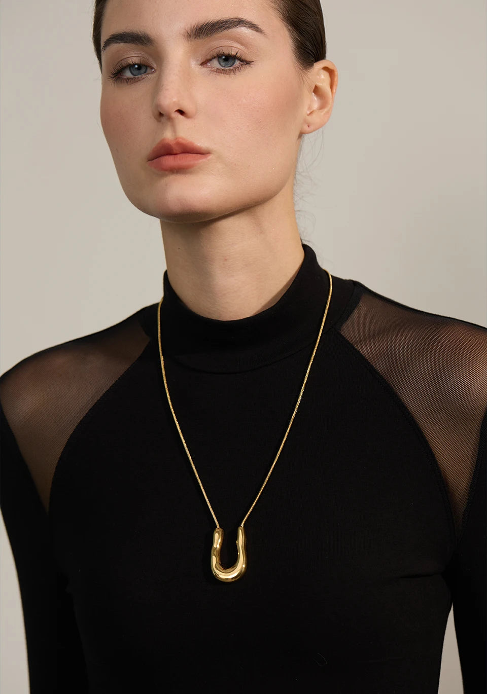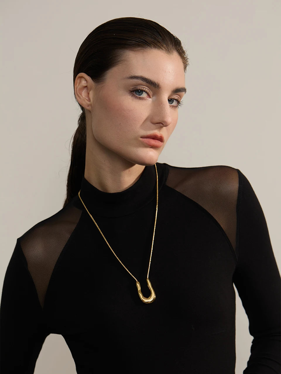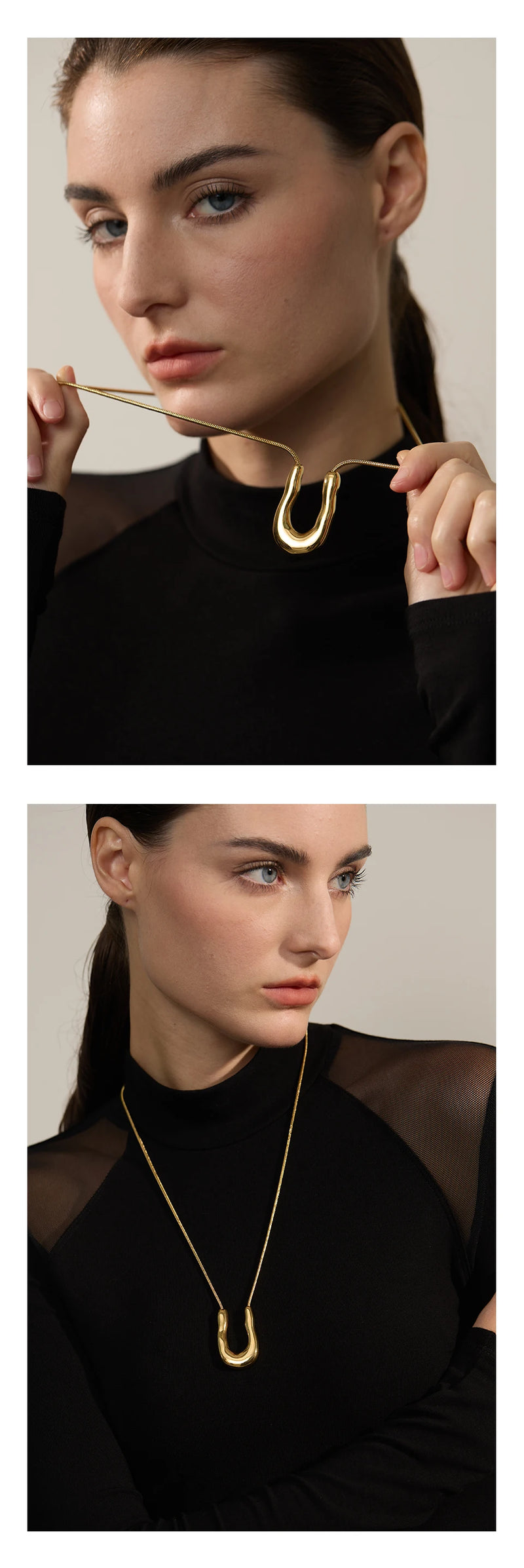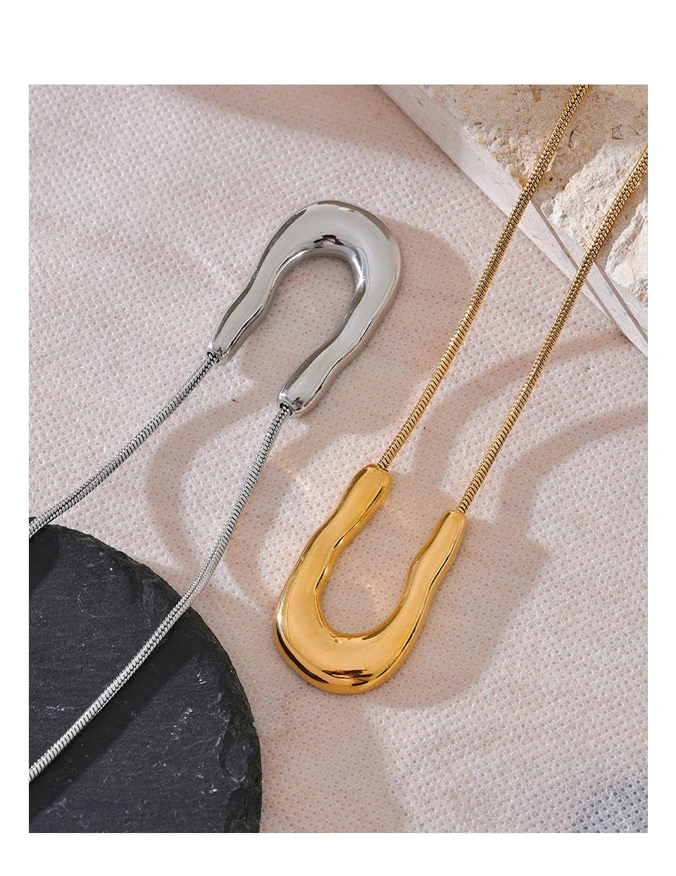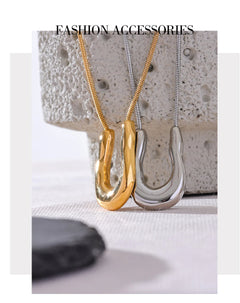 Bellartini 18K Gold U-Shape Metal Necklace Pendant Collar Neck WP