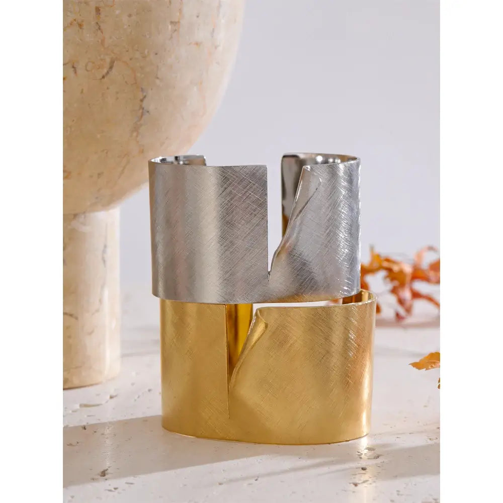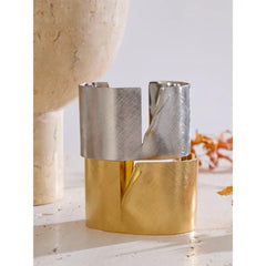 Bellartini Palermo 60mm Wire Drawing Polished Metal Cuff Wide Bracelet Bangle Minimalist