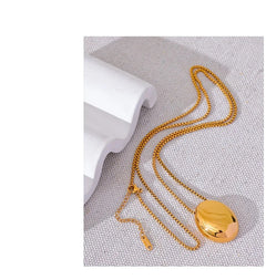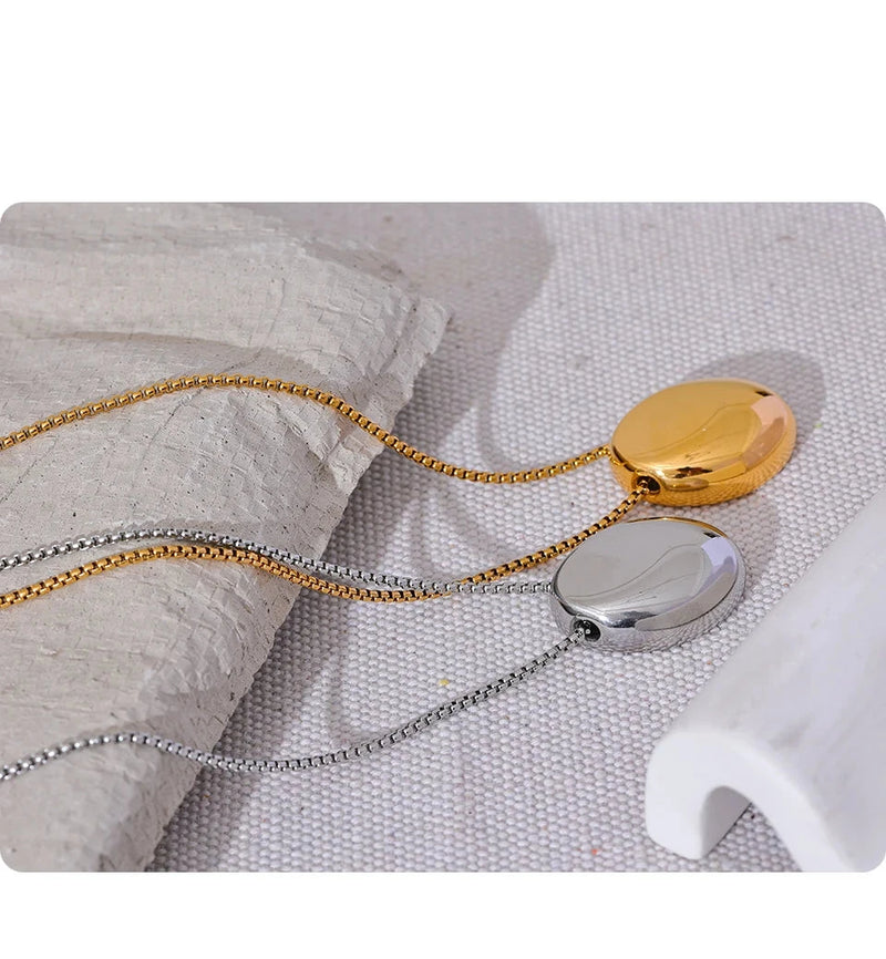 Bellartini Gold 70cm Minimalist Long Sweater Chain Oval Pendant Necklace WP
