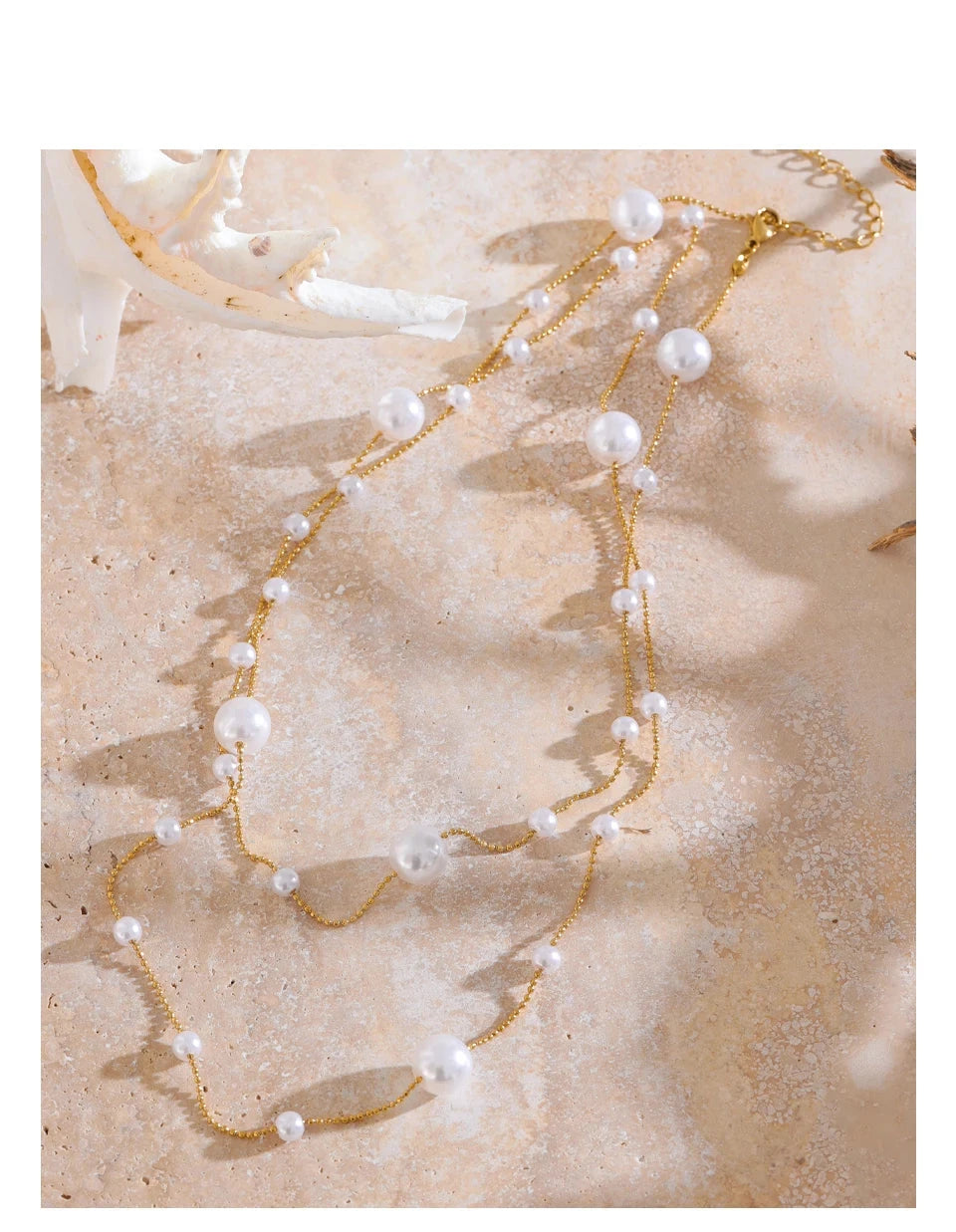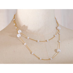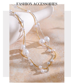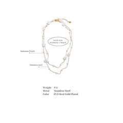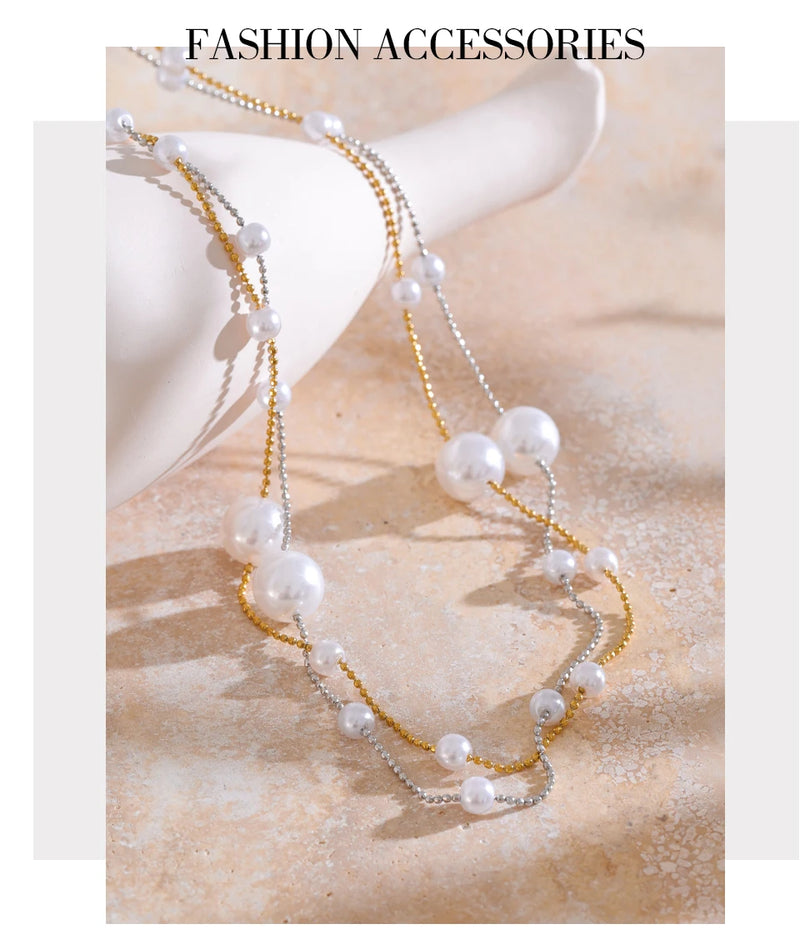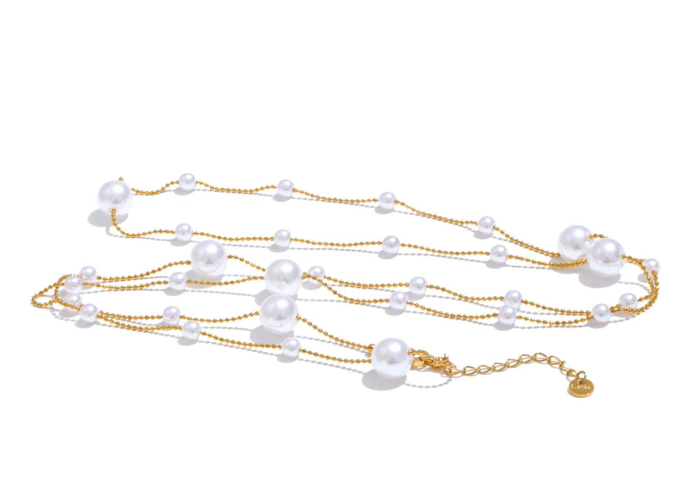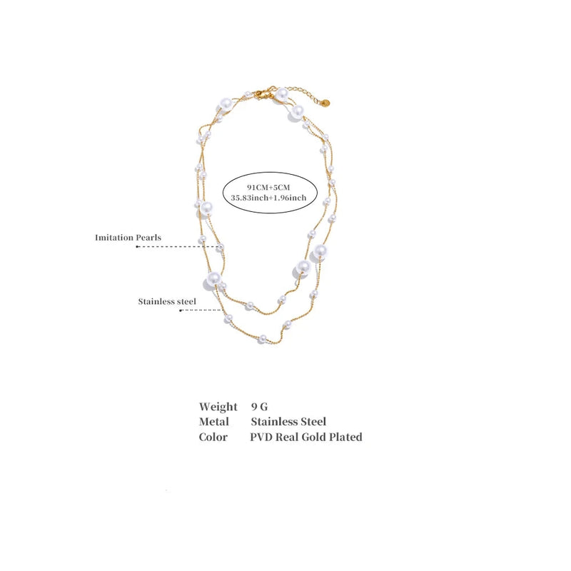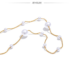 Bellartini 18K Gold 90+5 cm Elegant Simulated Pearl Beads Long Daily Sweater Chain Necklace WP Chic