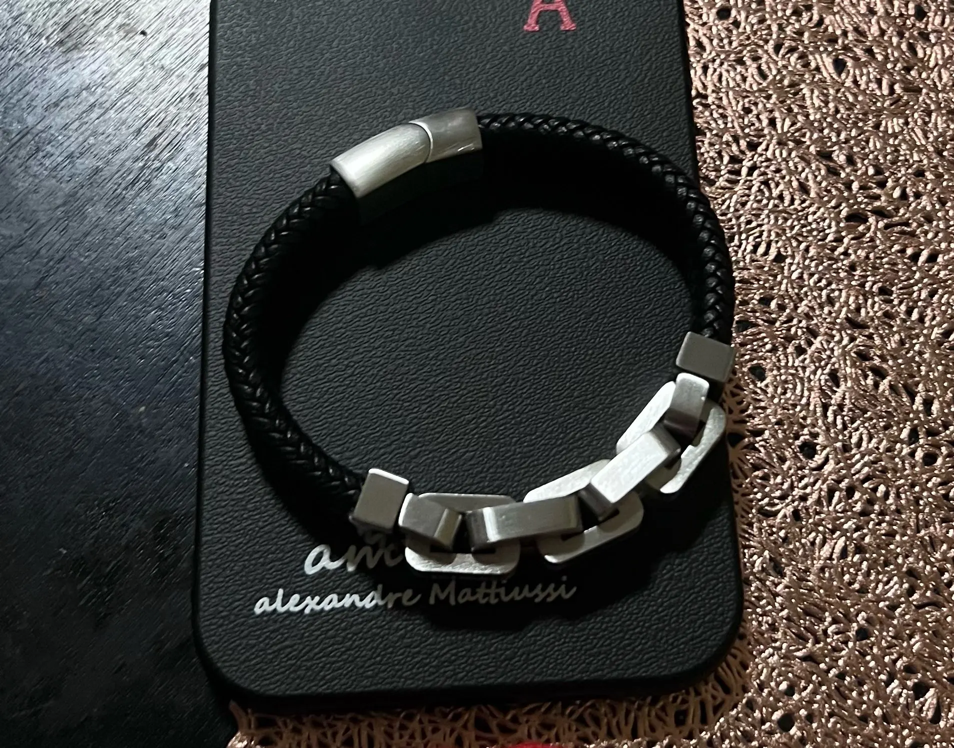 Bellartini 18K Gold Leather Handmade Men Bracelet Bangle WP