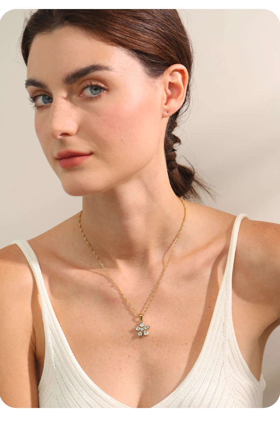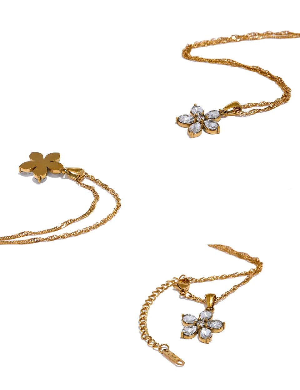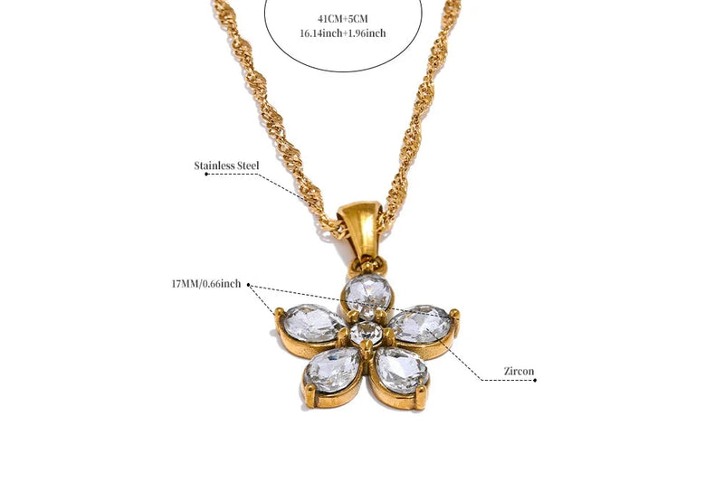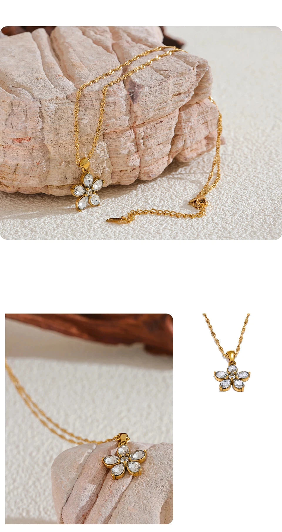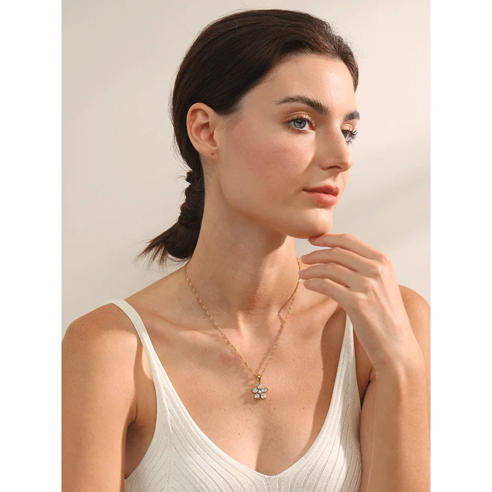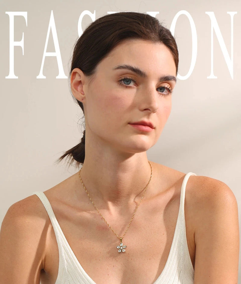 Bellartini Gold Bling Cubic Flower Pendant Necklace Sweet Fashion Trendy Stylish WP