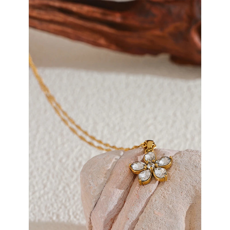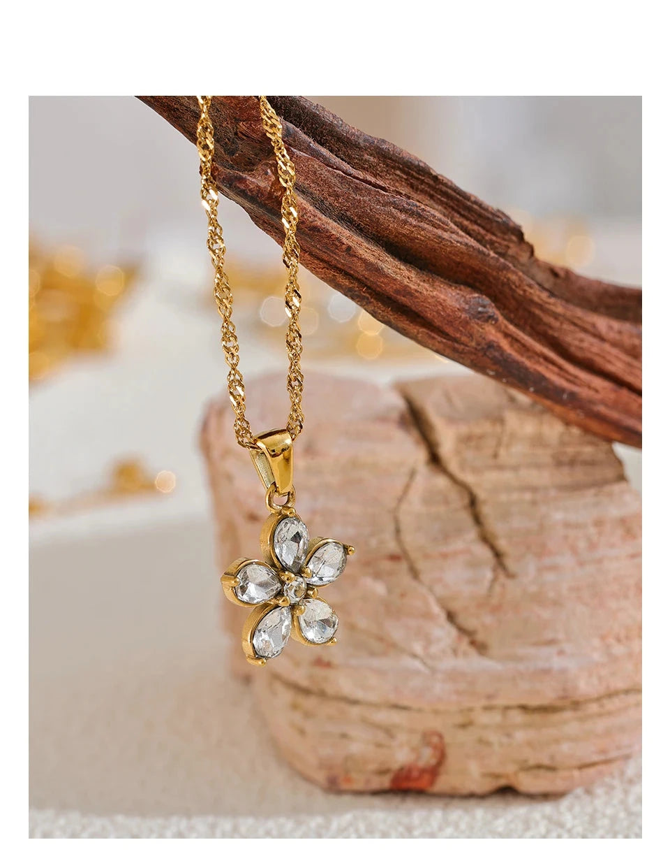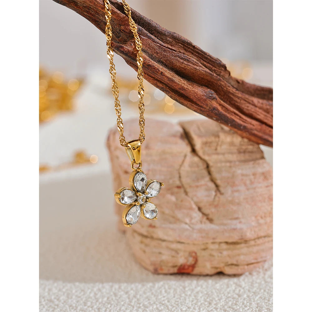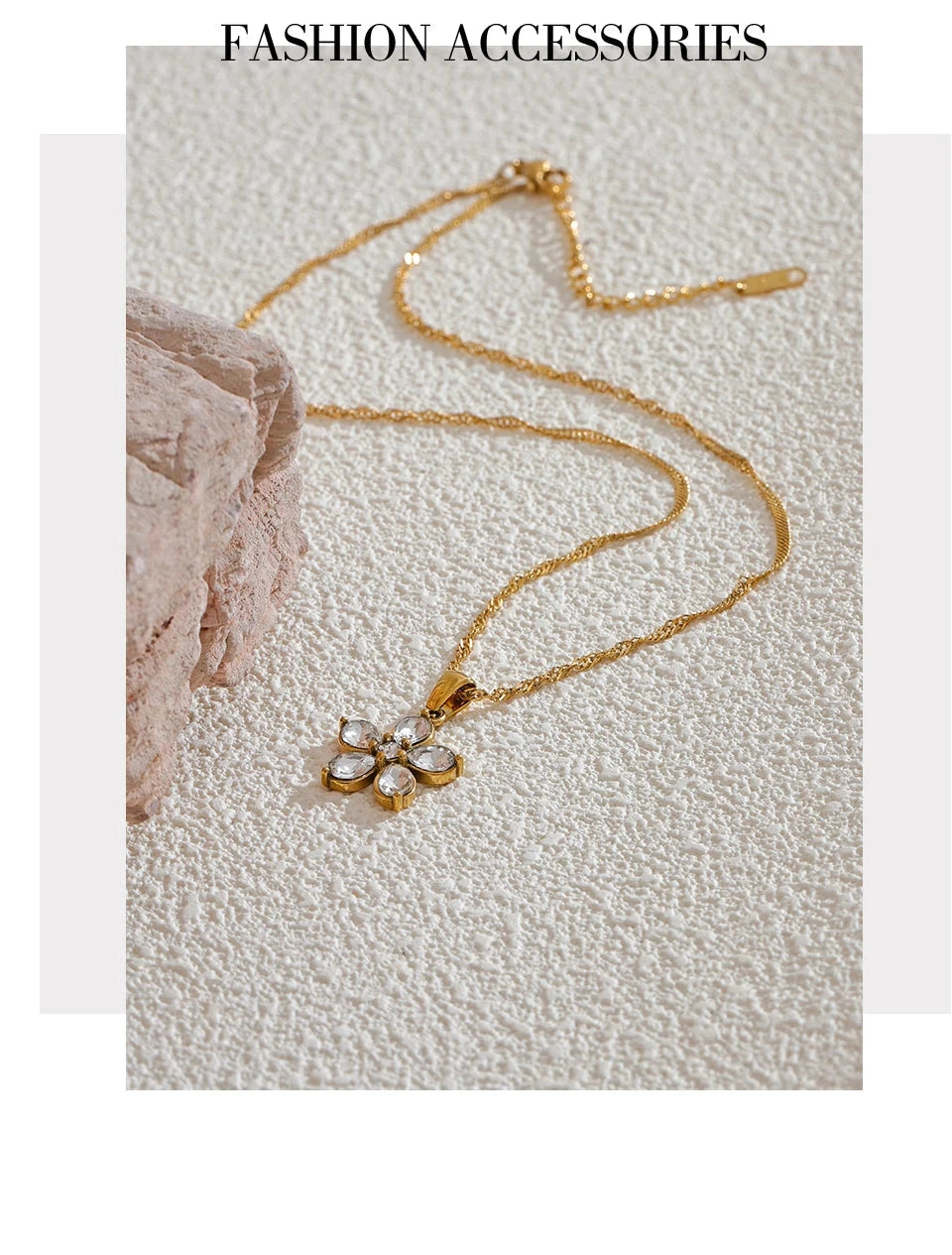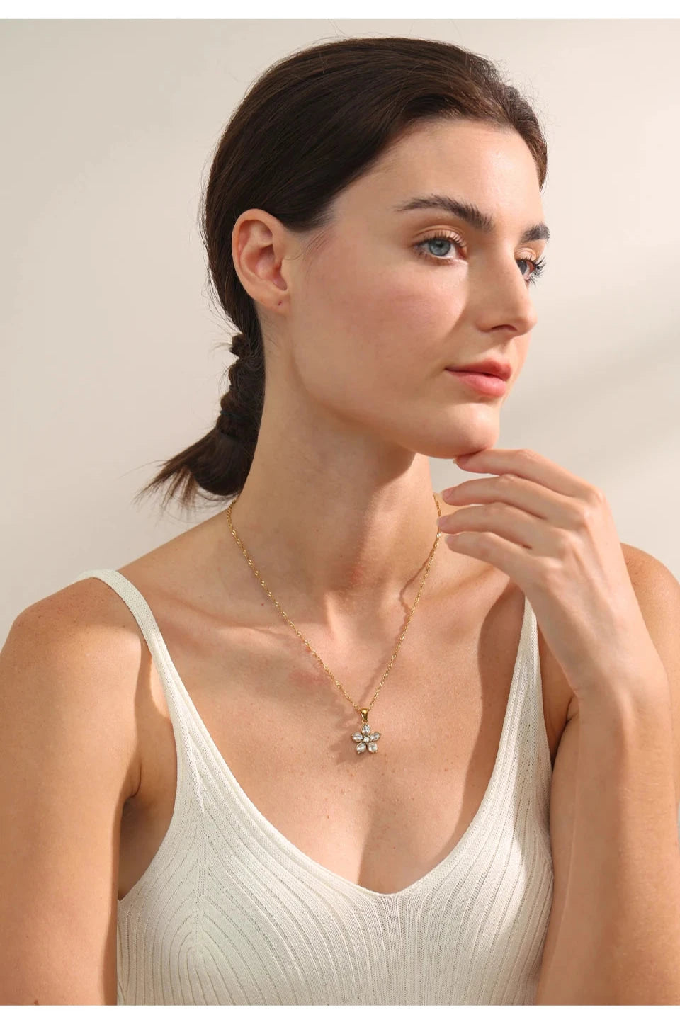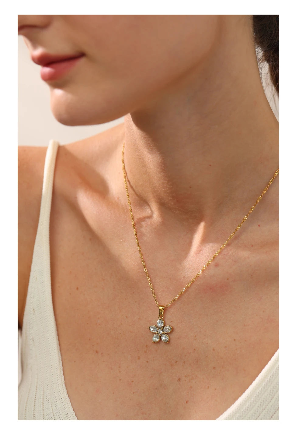 Bellartini Gold Bling Cubic Flower Pendant Necklace Sweet Fashion Trendy Stylish WP