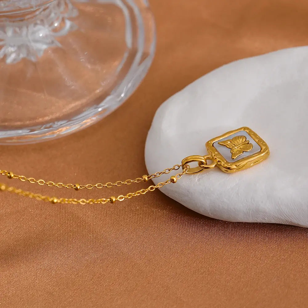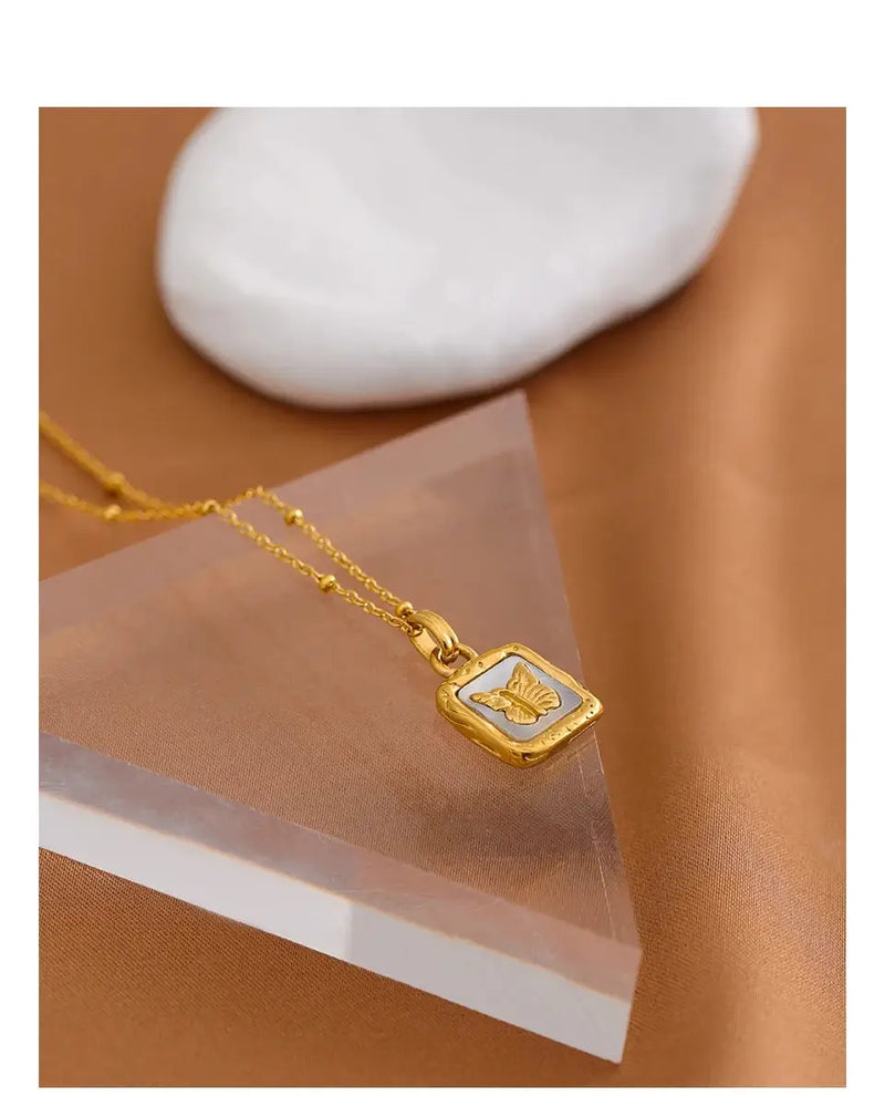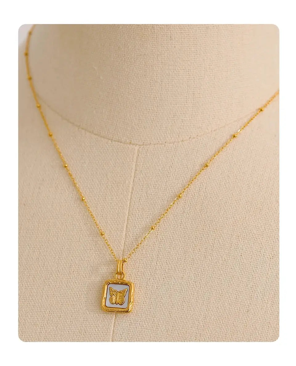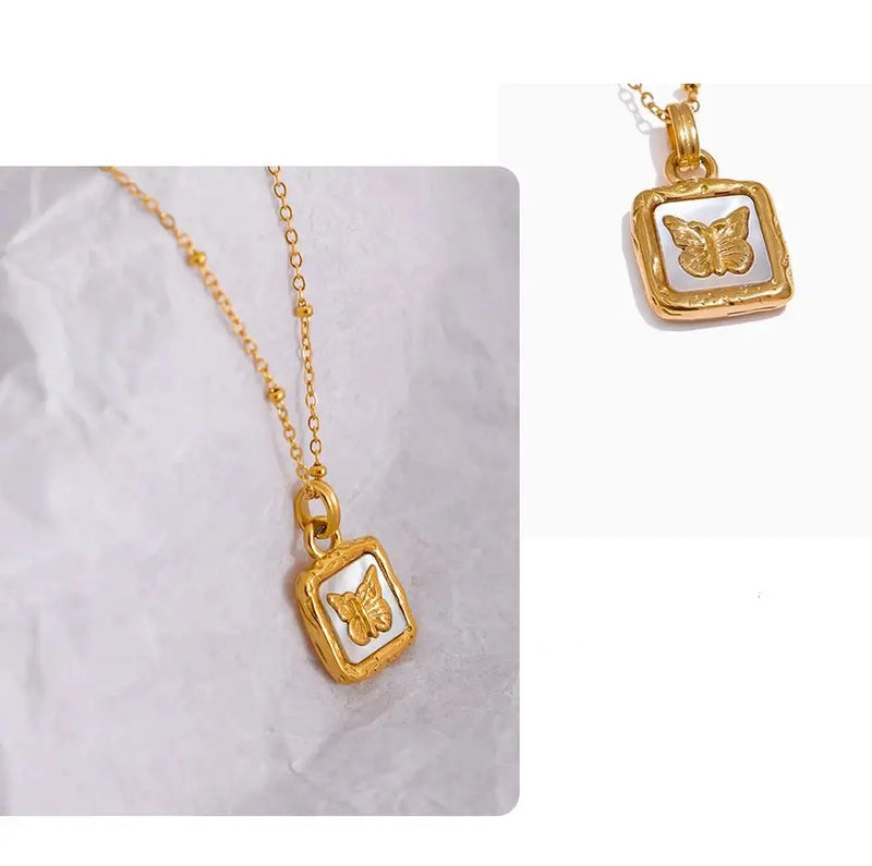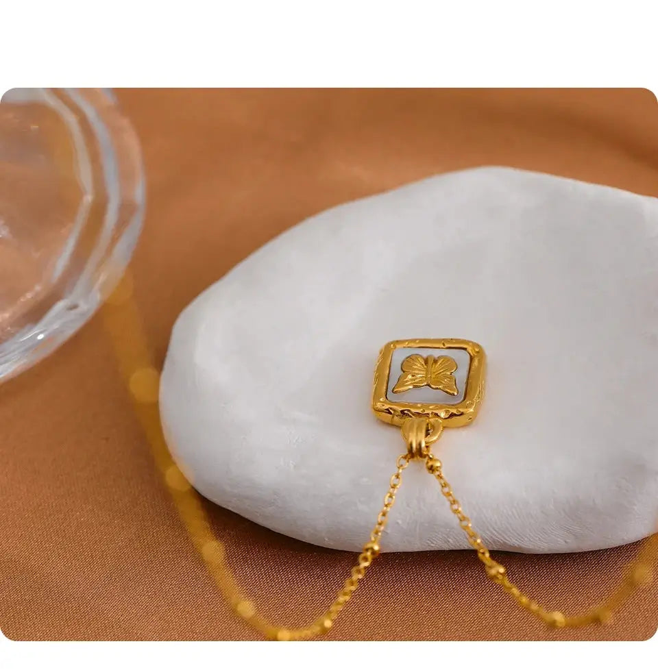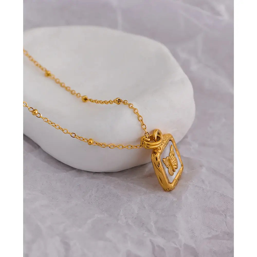 Bellartini Gold Butterfly Shell Pendant Collar Square Trendy Fashion Necklace