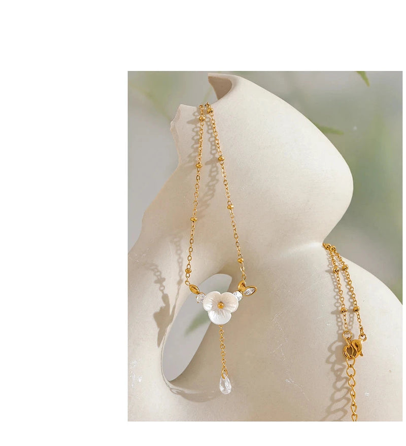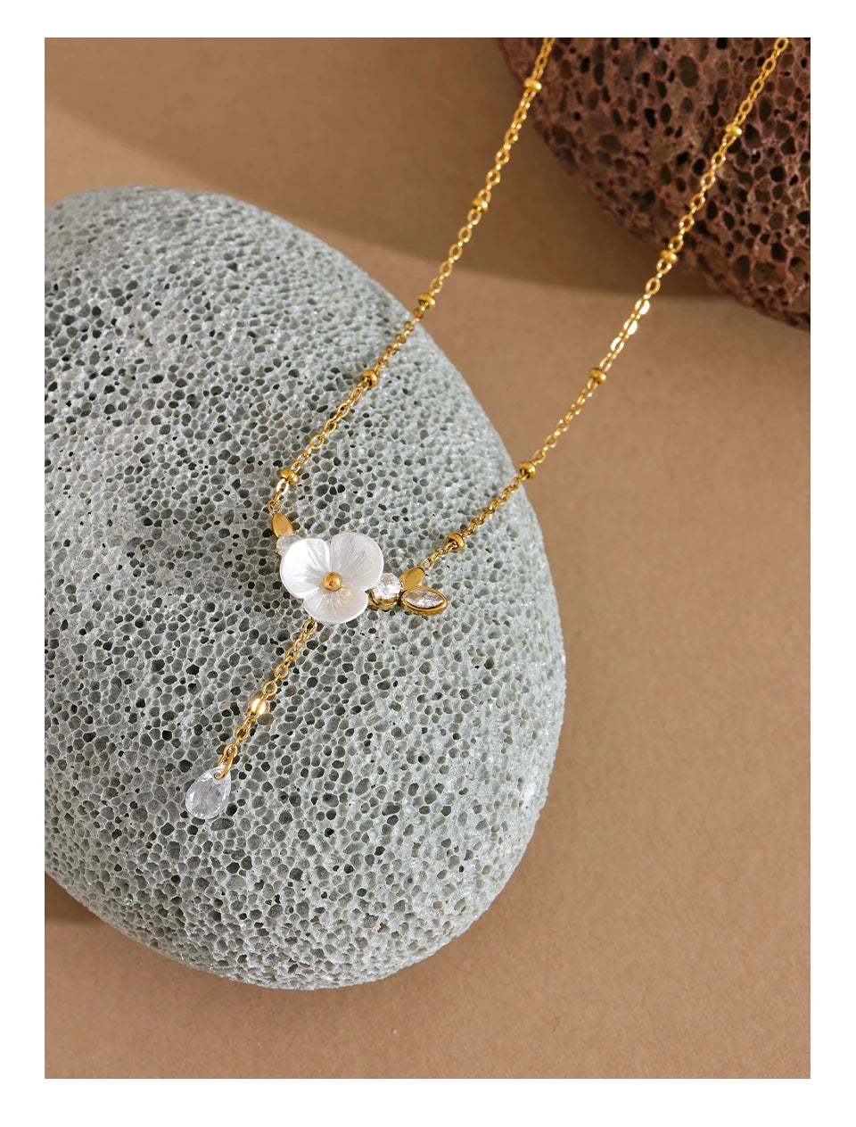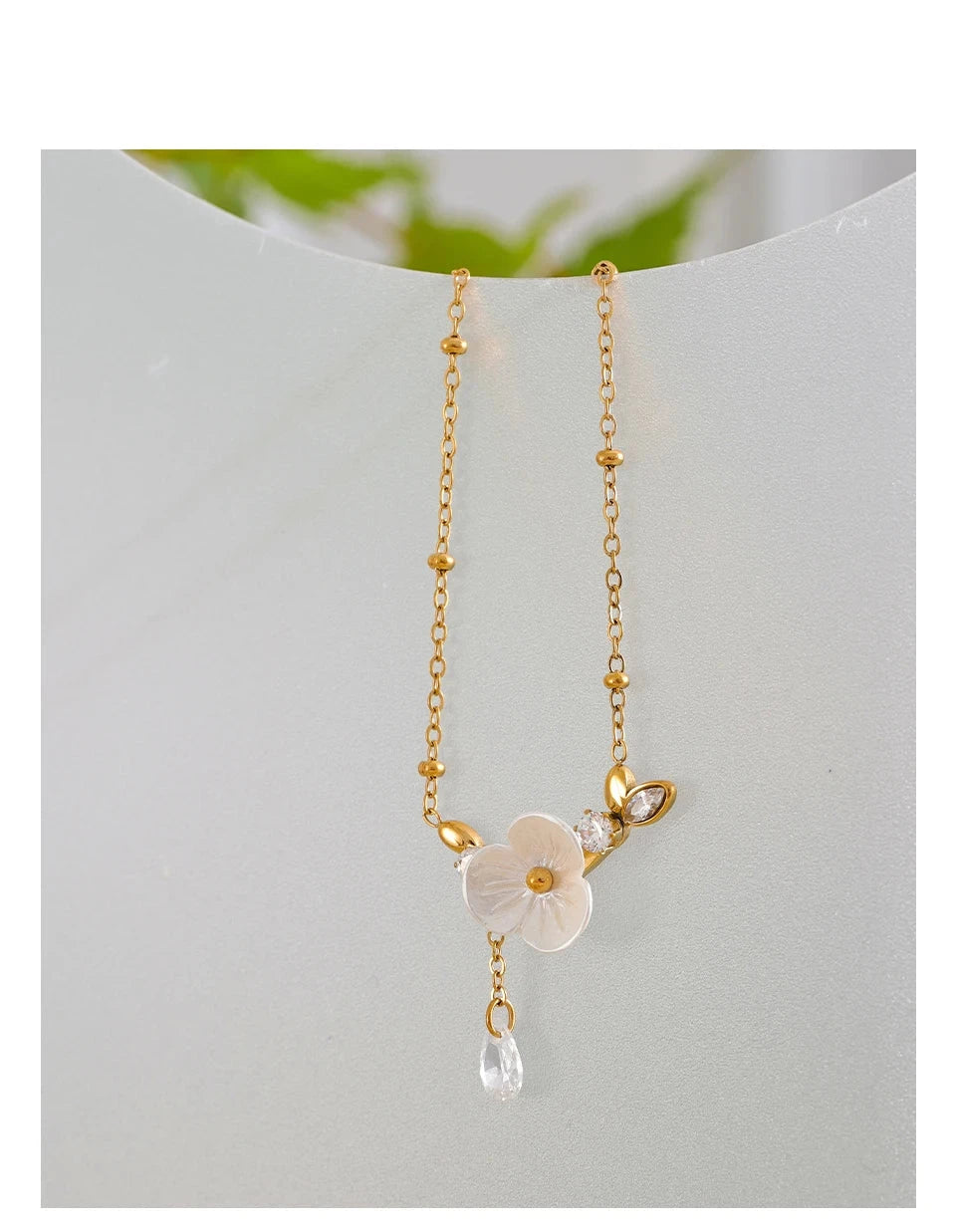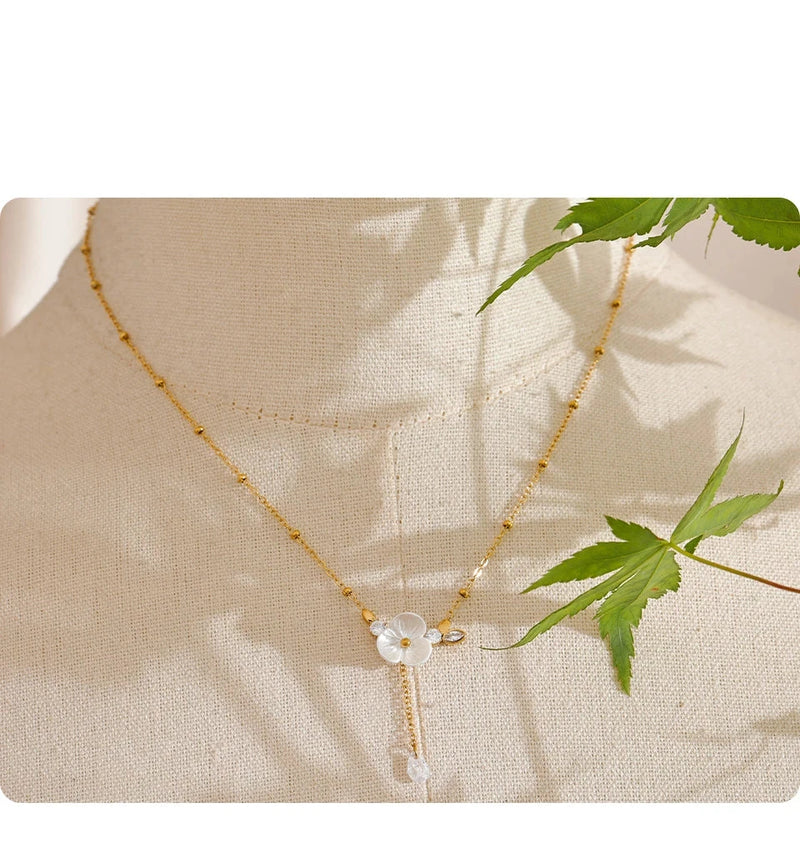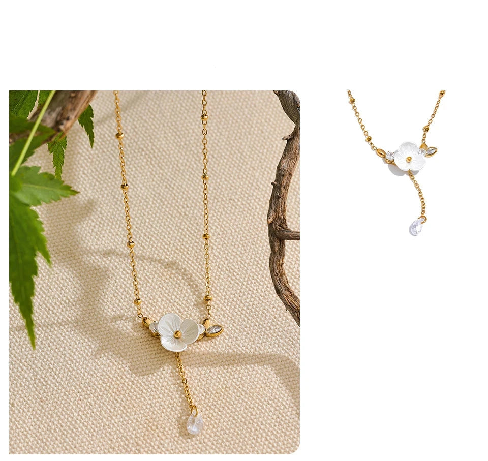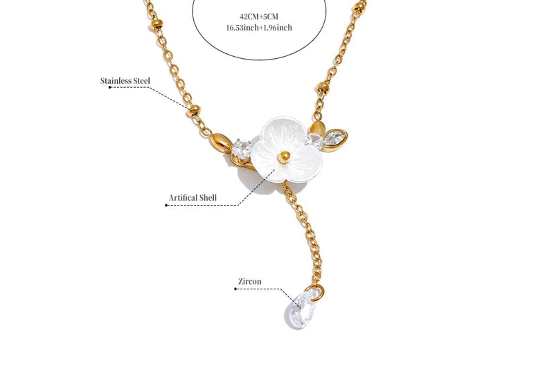 Bellartini Gold Chic Elegant Shell Flower Chain Zircon Pendant Necklace
