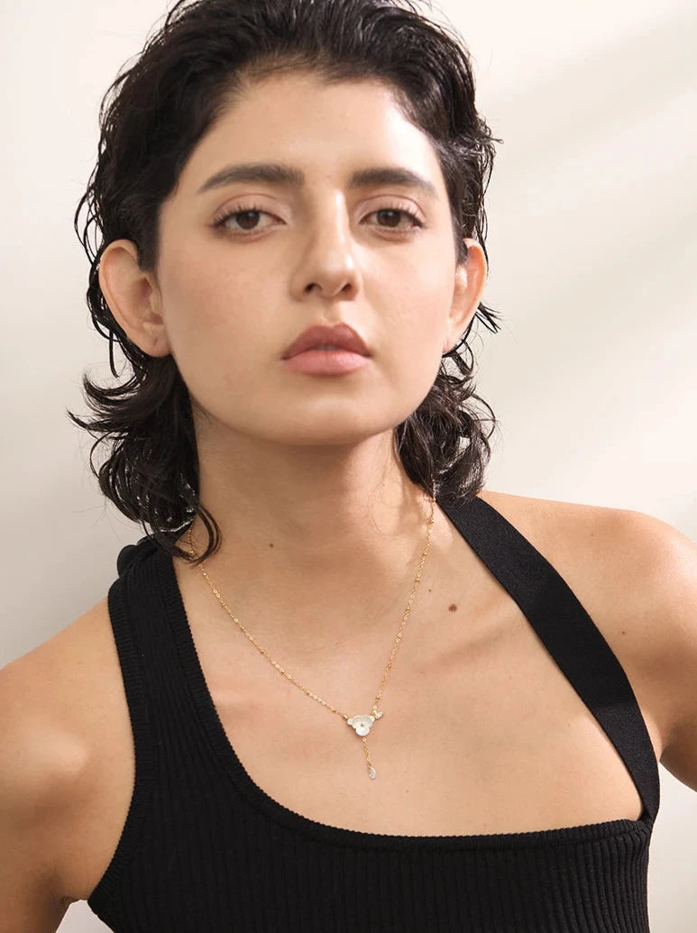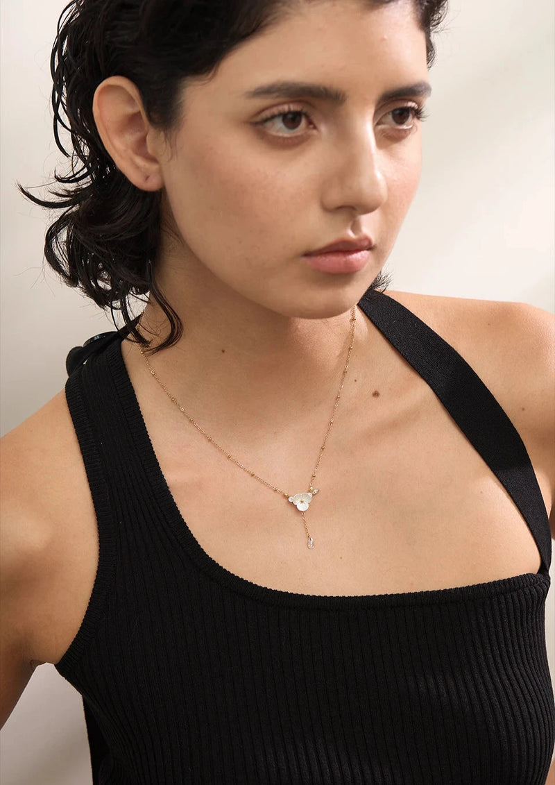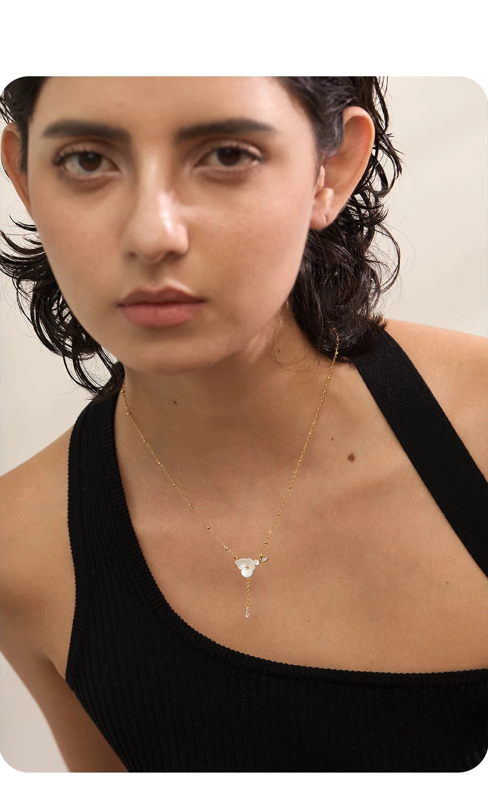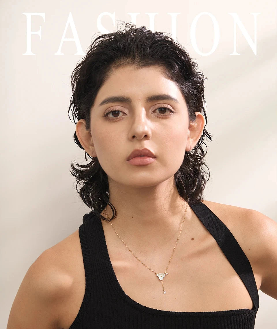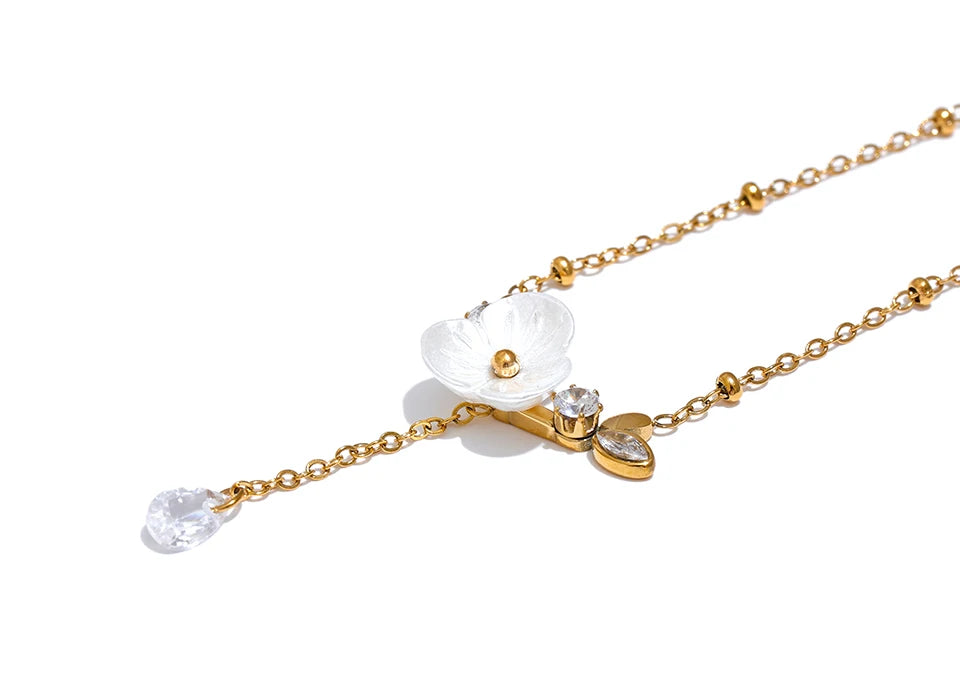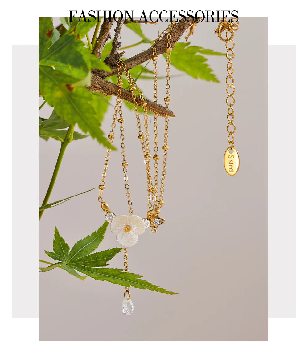 Bellartini Gold Chic Elegant Shell Flower Chain Zircon Pendant Necklace