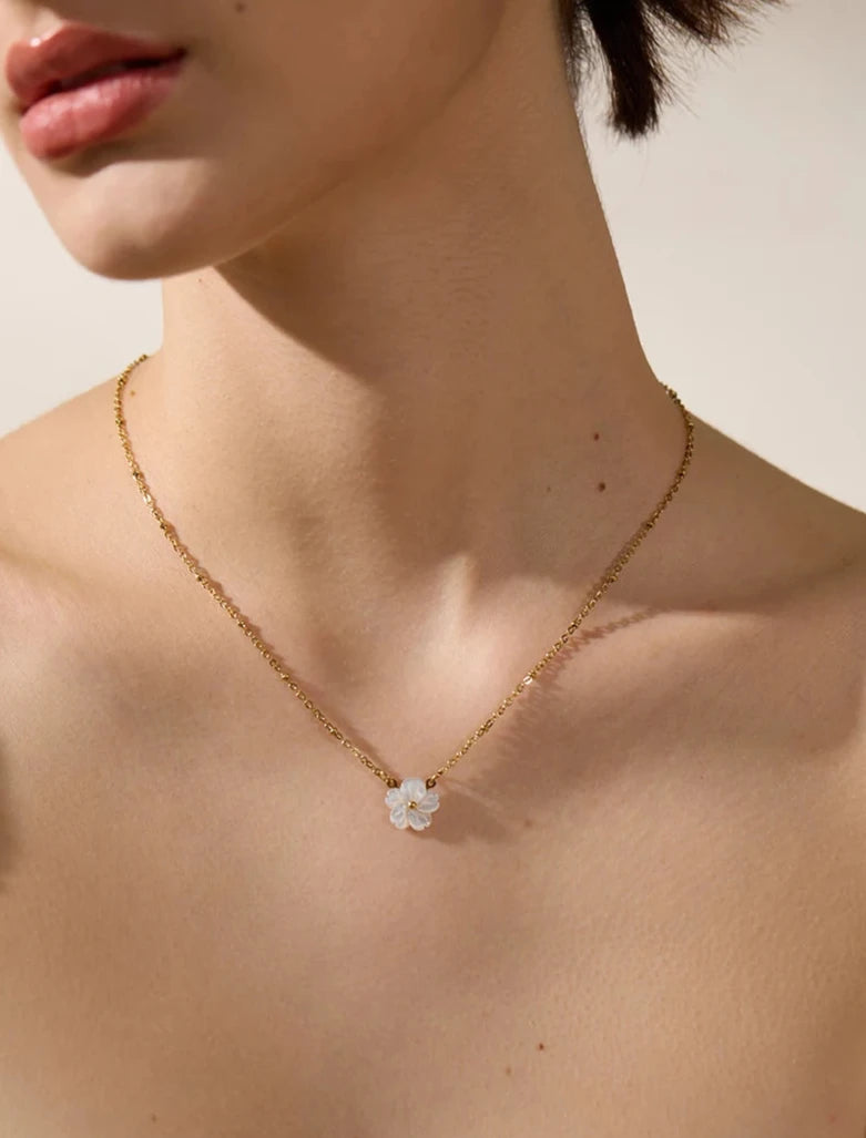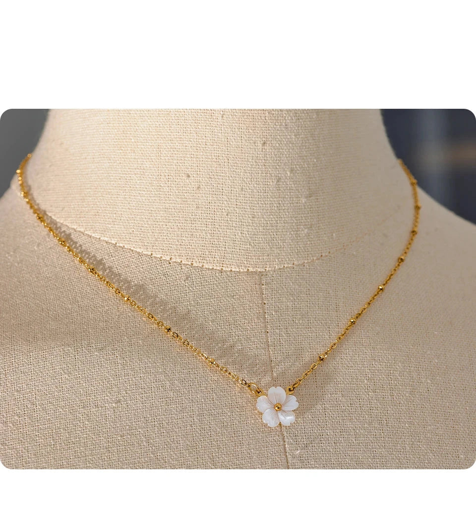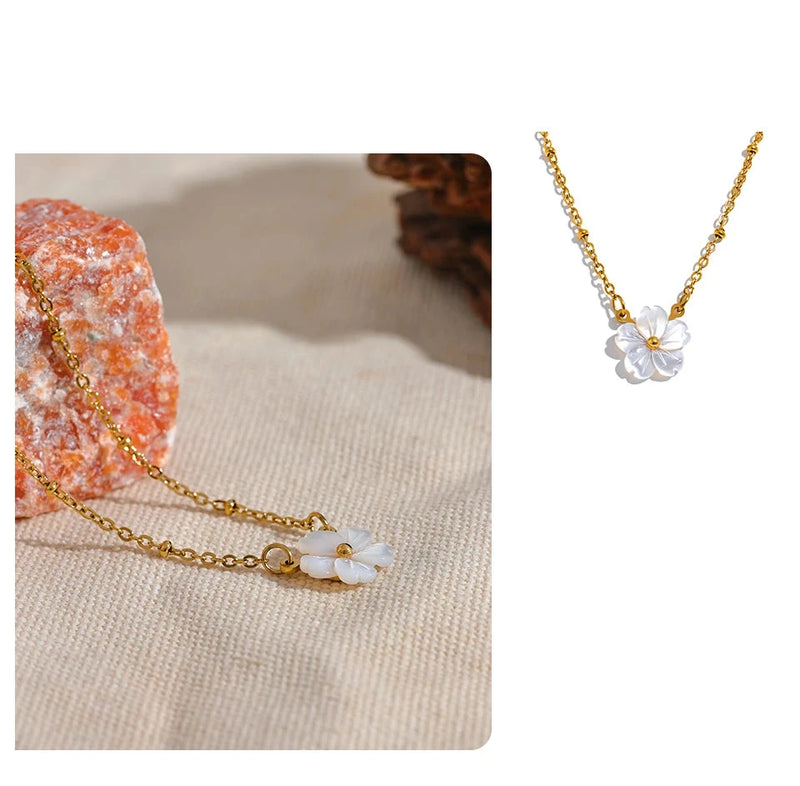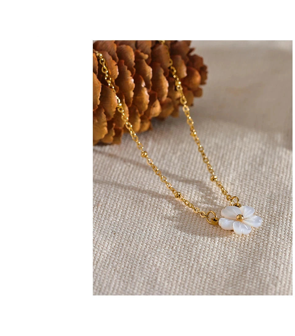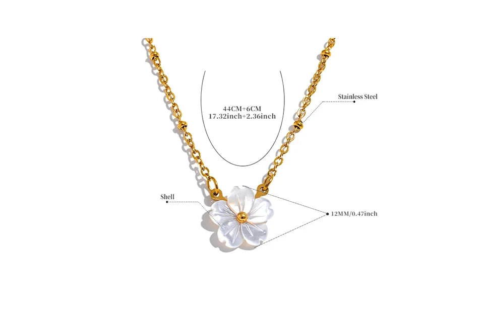 Bellartini Gold Chic Fashion Natural Shell Flower Pendant Necklace Exquisite Chain Color
