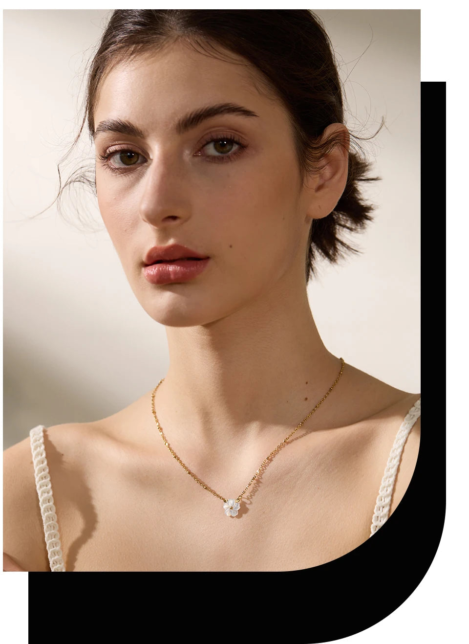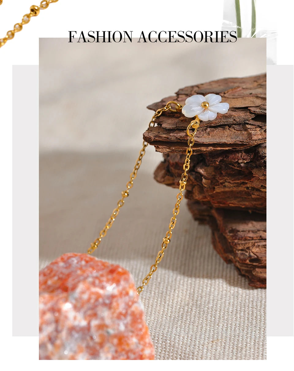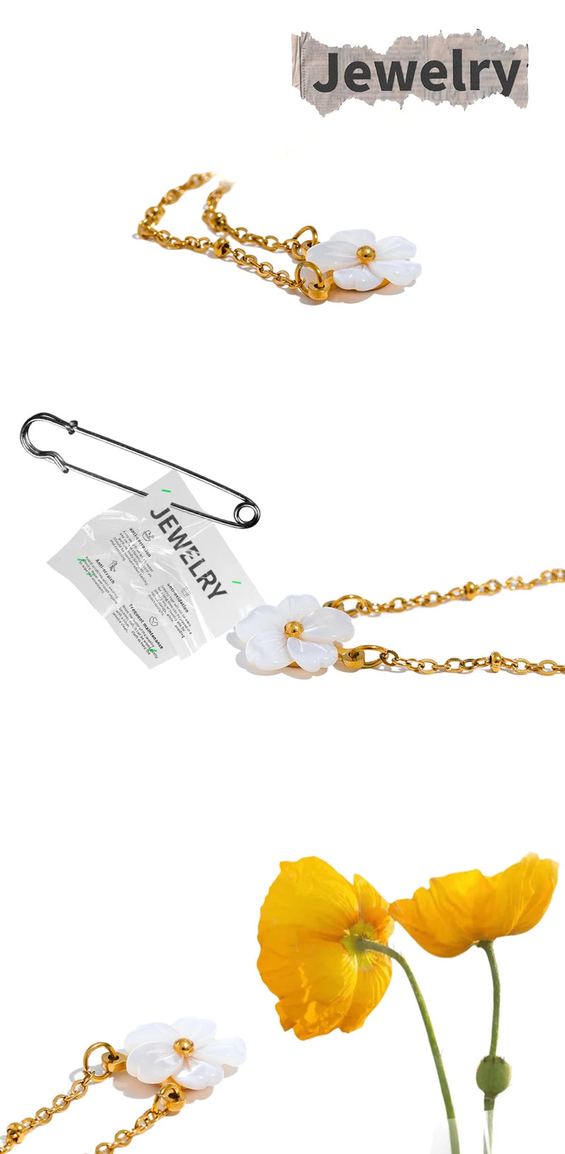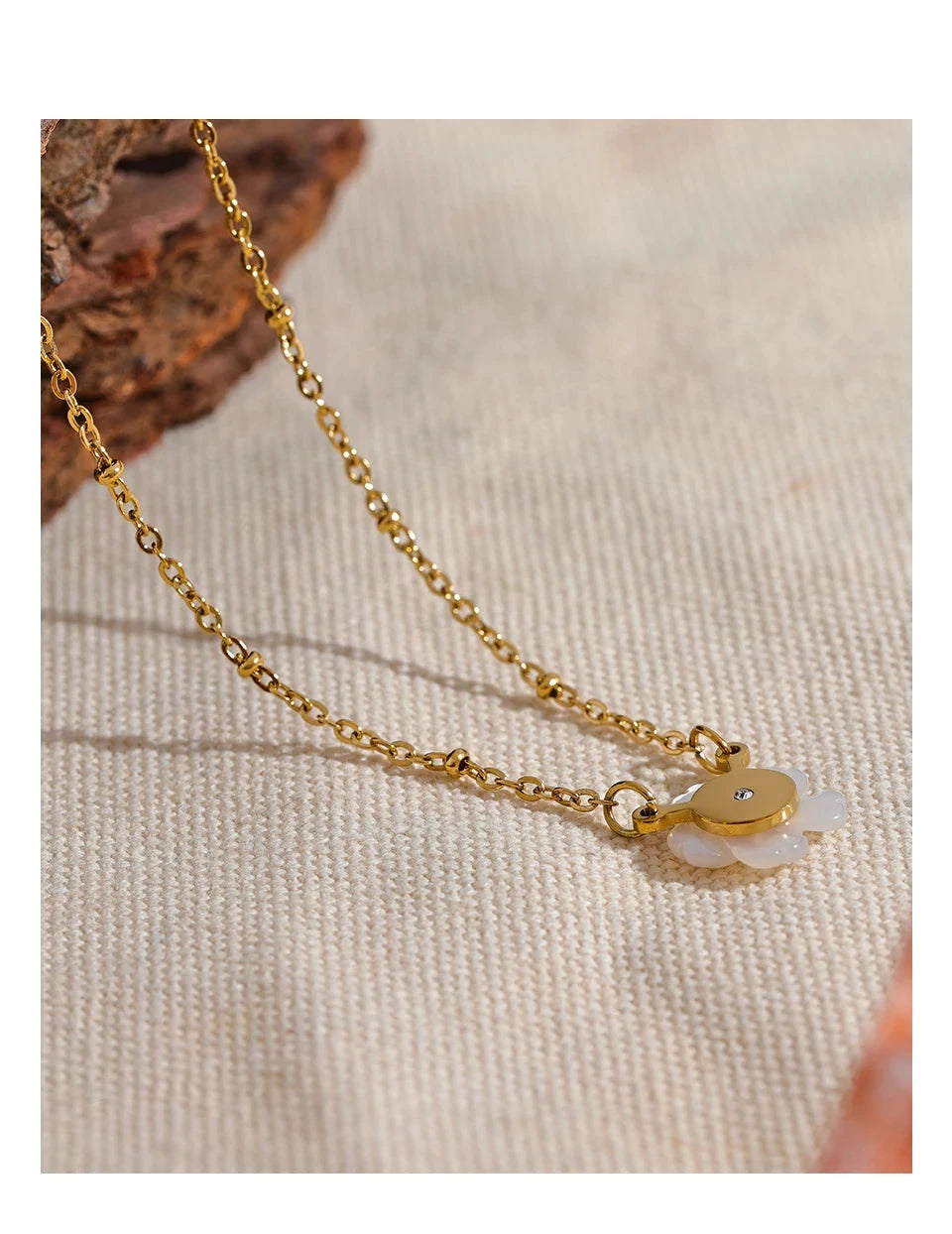 Bellartini Gold Chic Fashion Natural Shell Flower Pendant Necklace Exquisite Chain Color