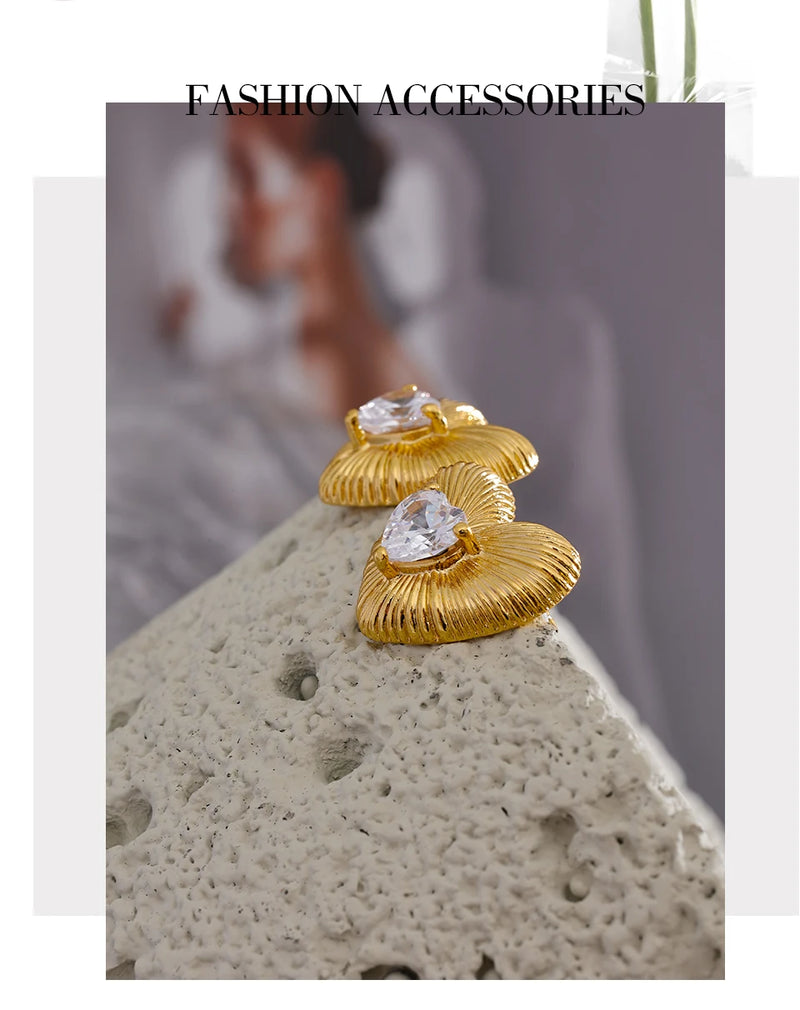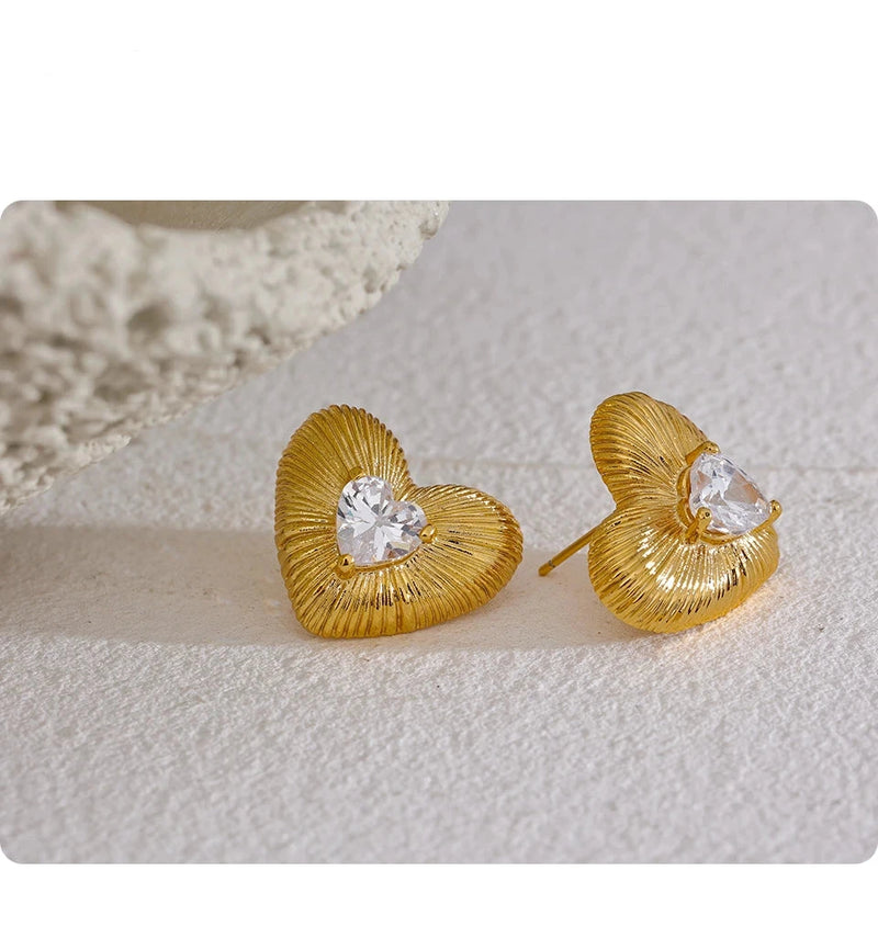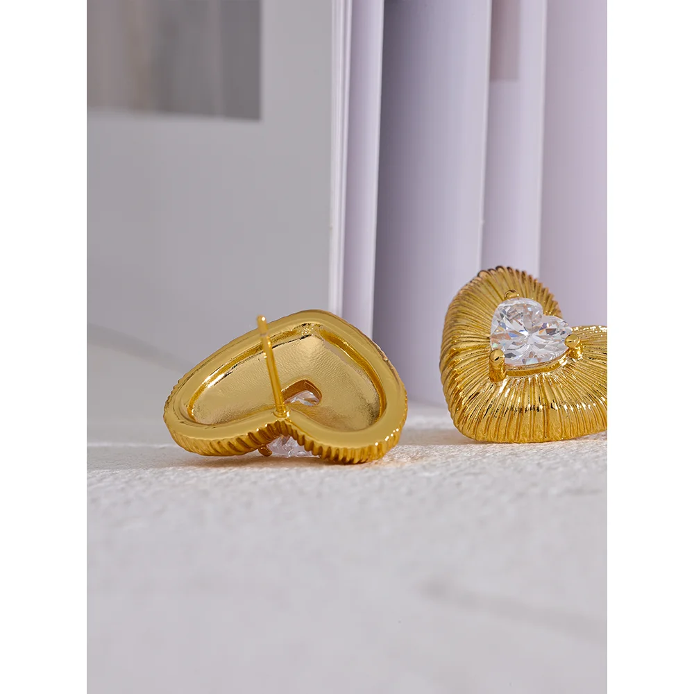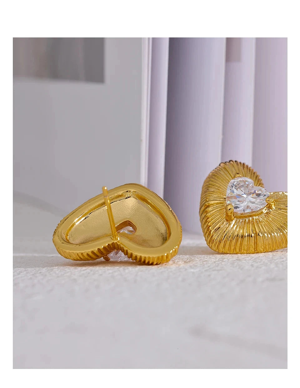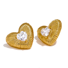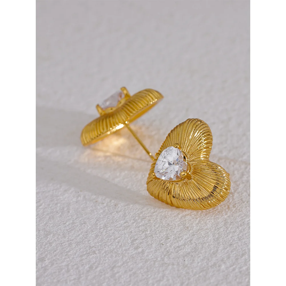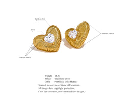Bellartini Gold Cubic Zirconia Heart Stud Earrings