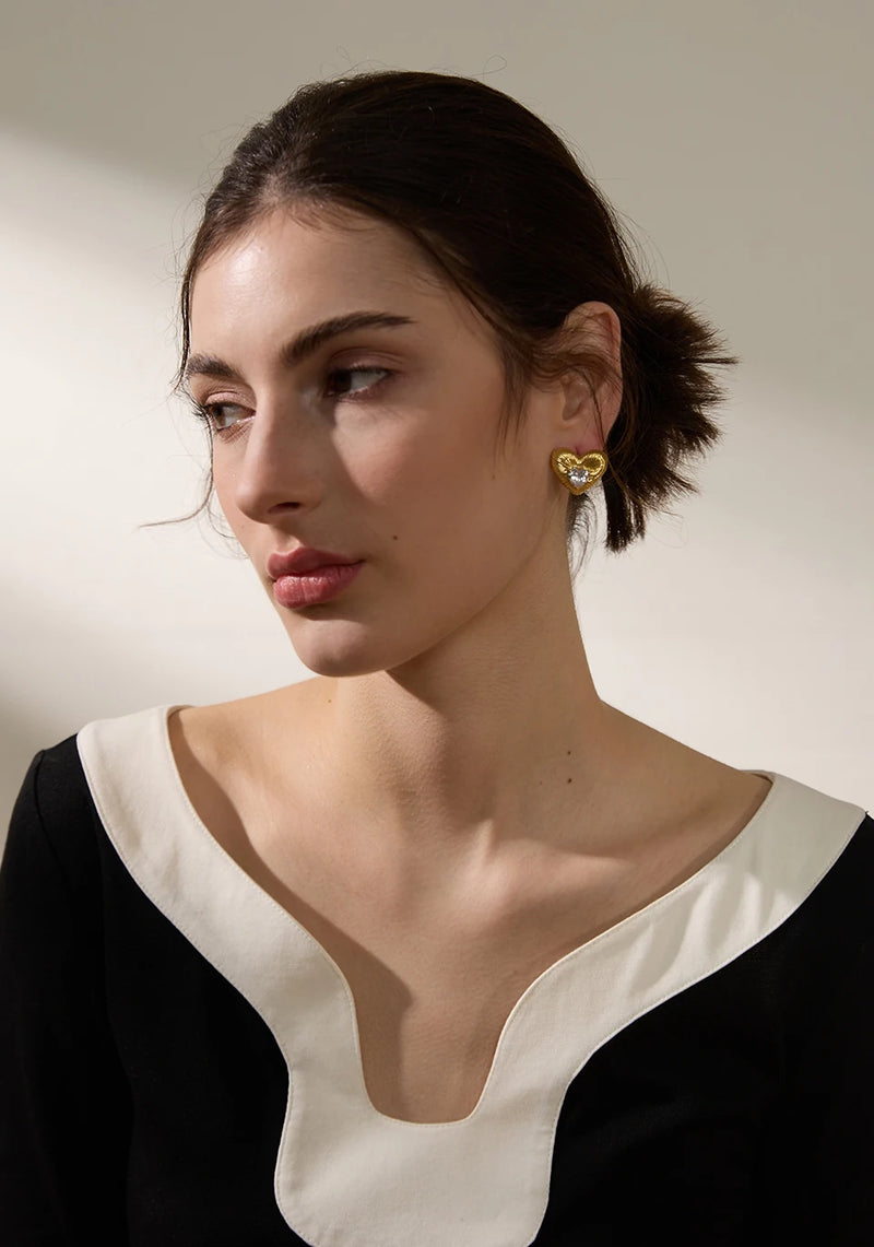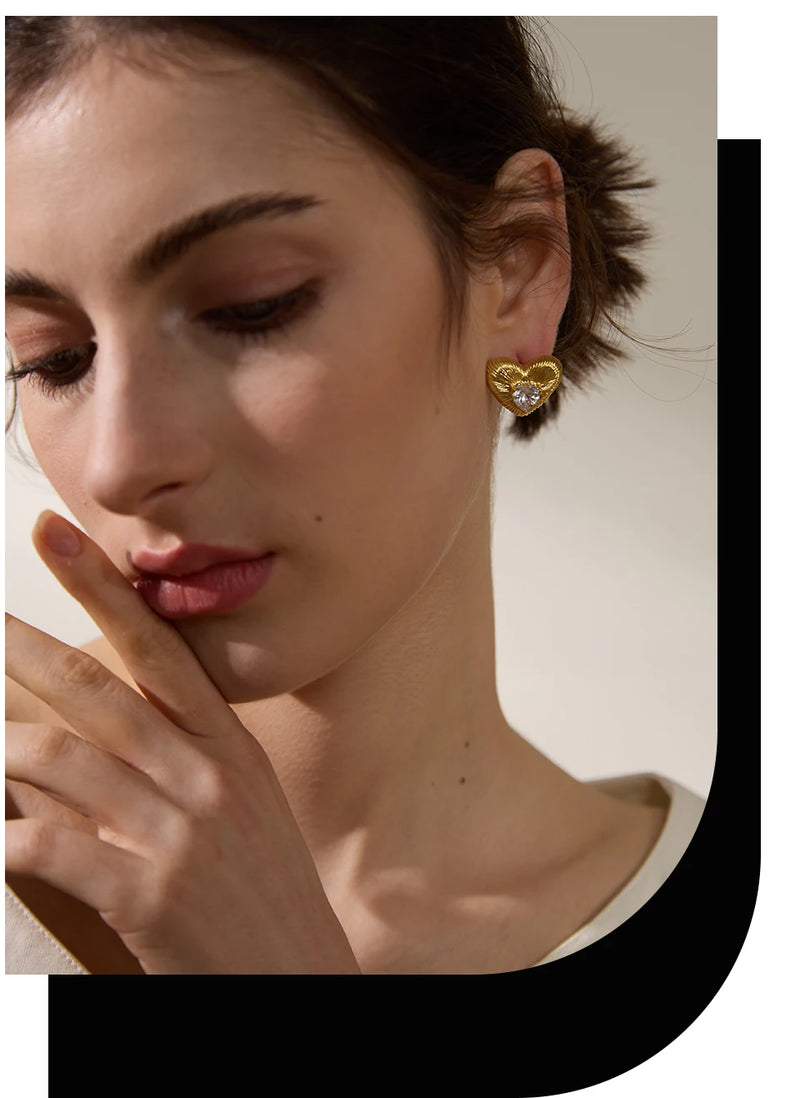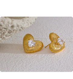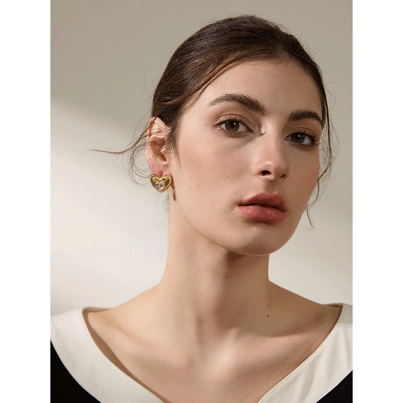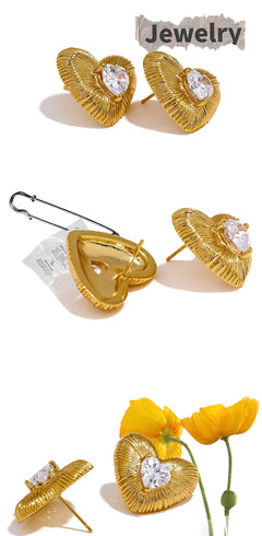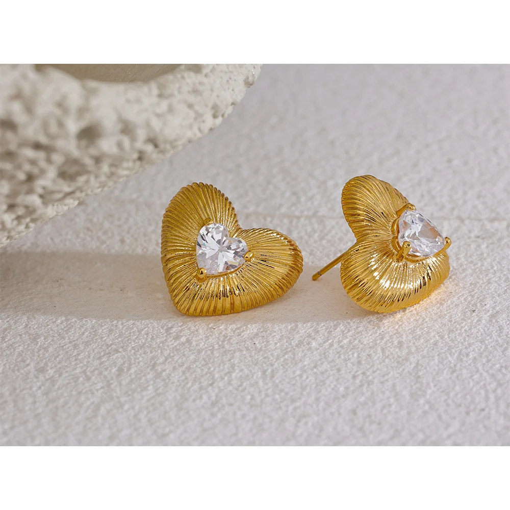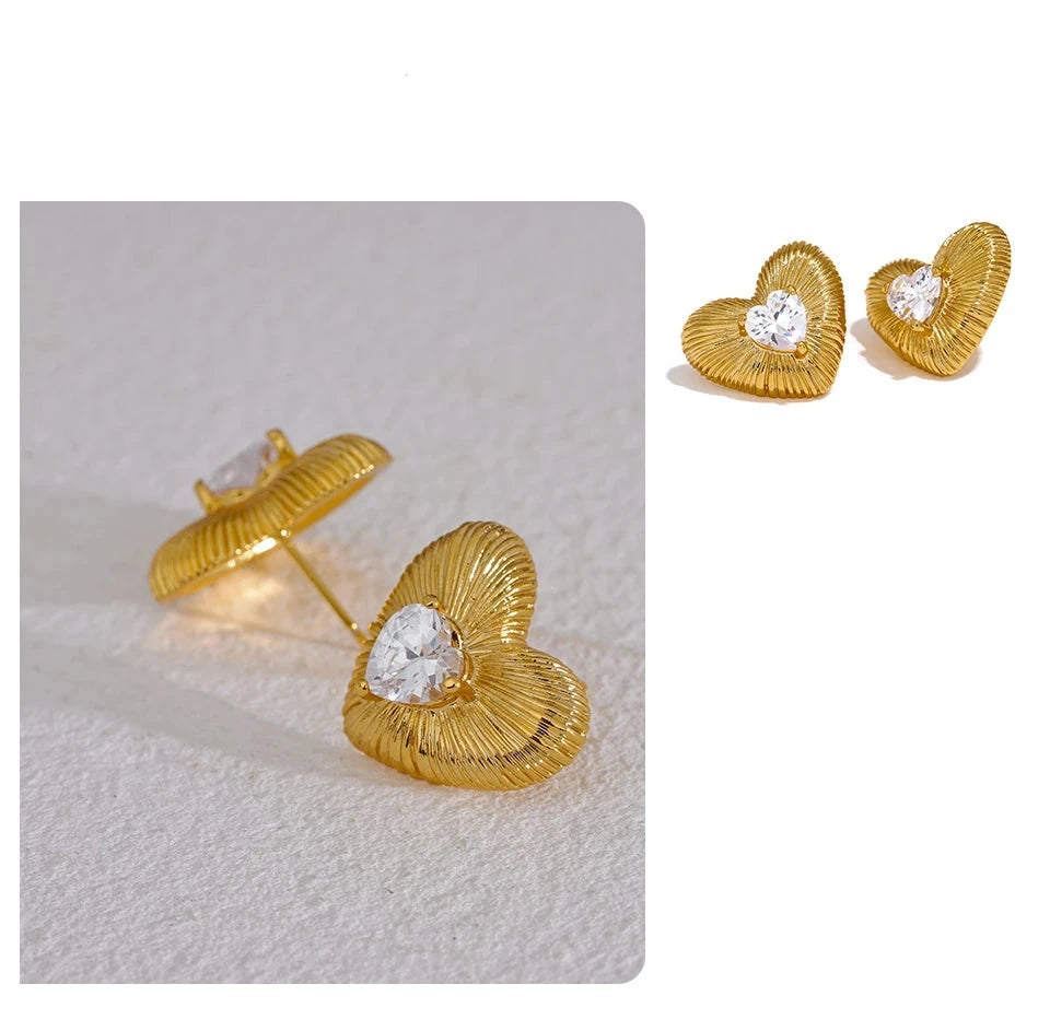 Bellartini Gold Cubic Zirconia Heart Stud Earrings