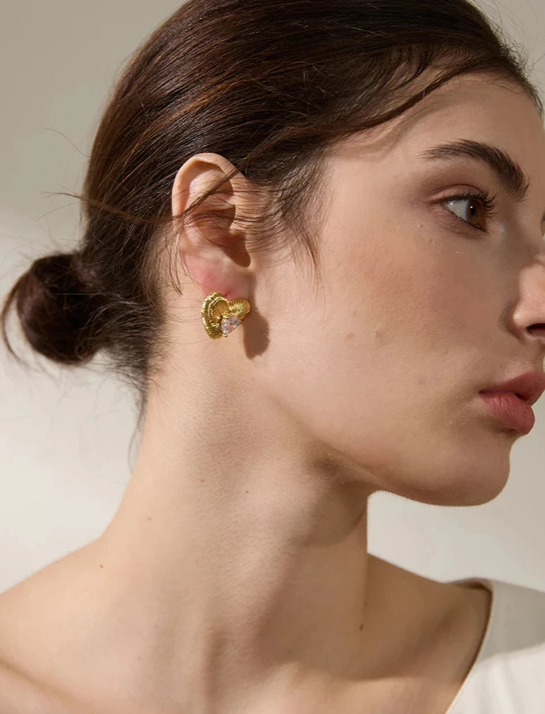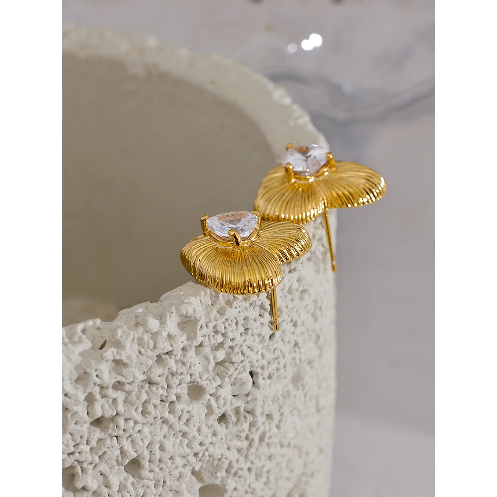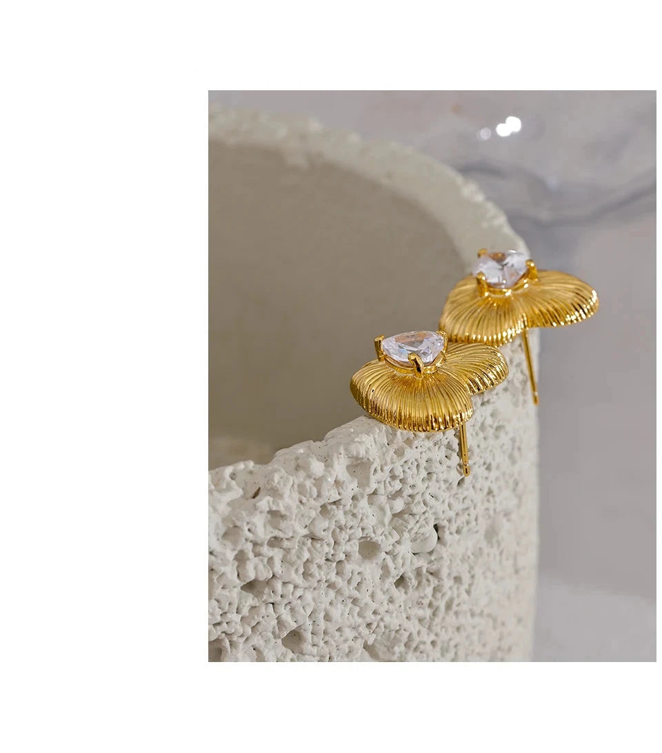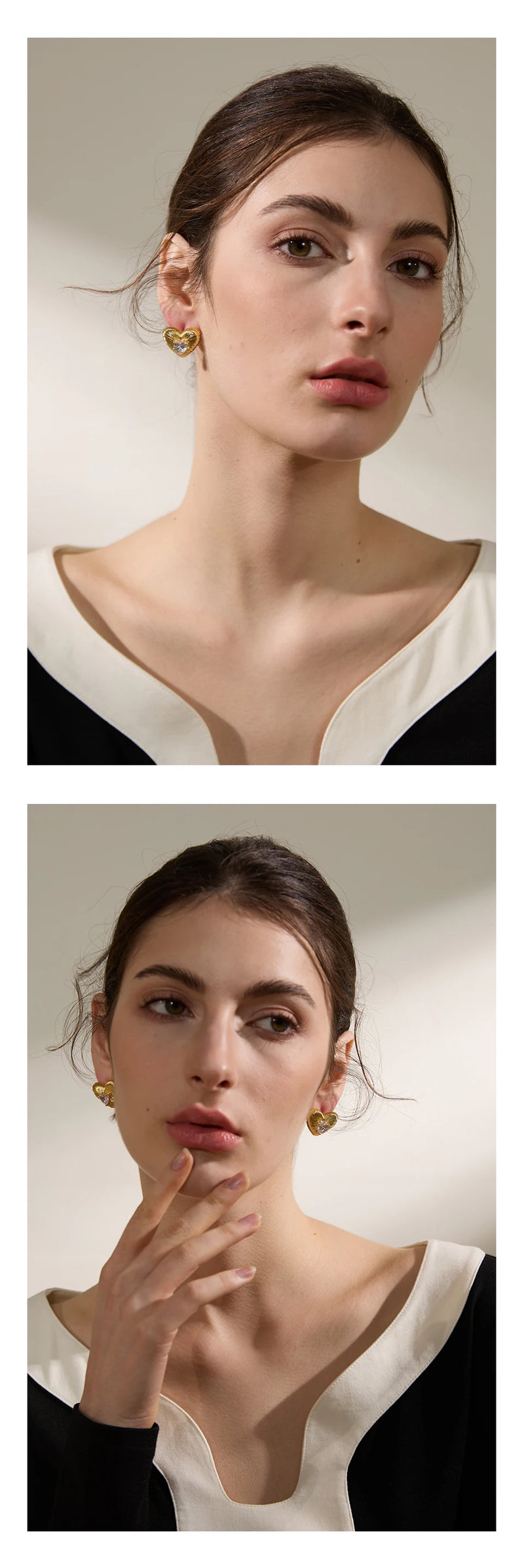 Bellartini Gold Cubic Zirconia Heart Stud Earrings