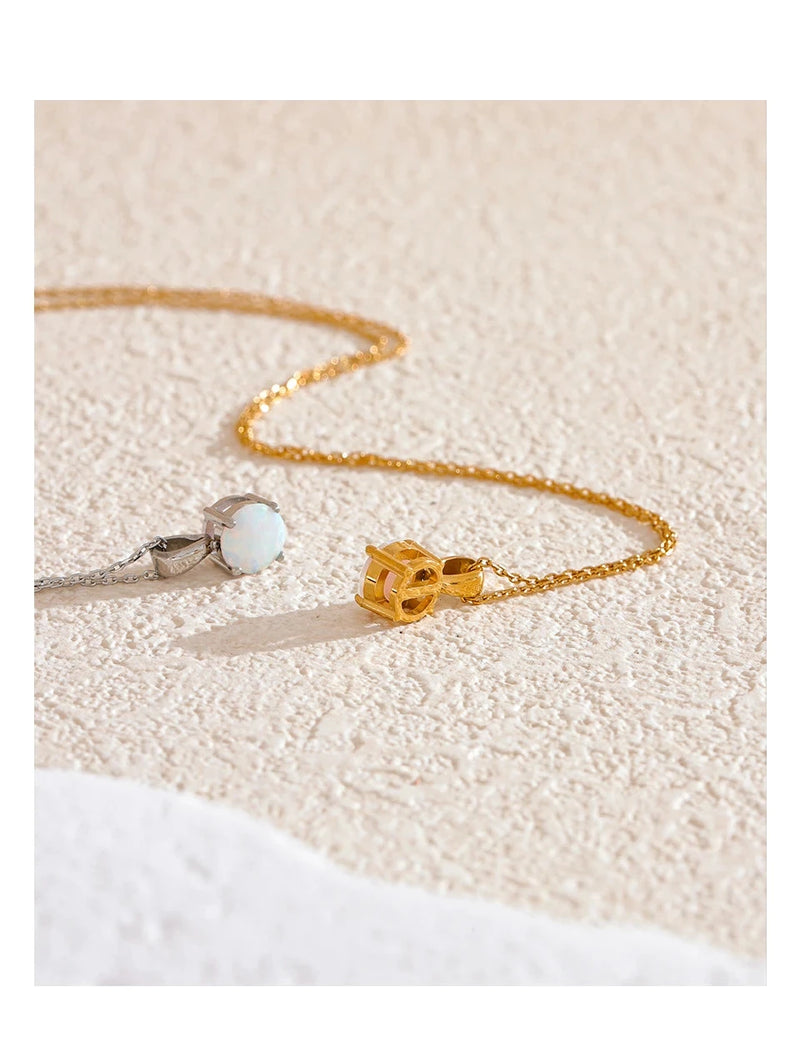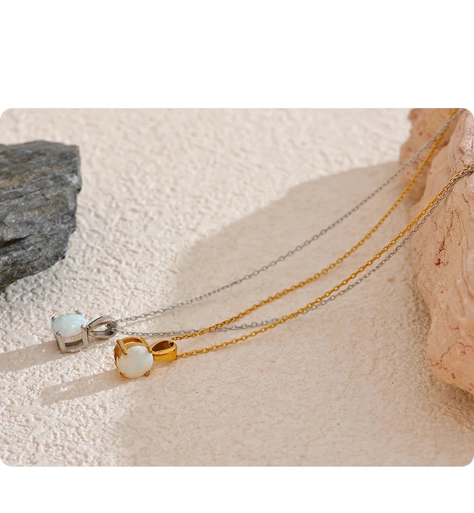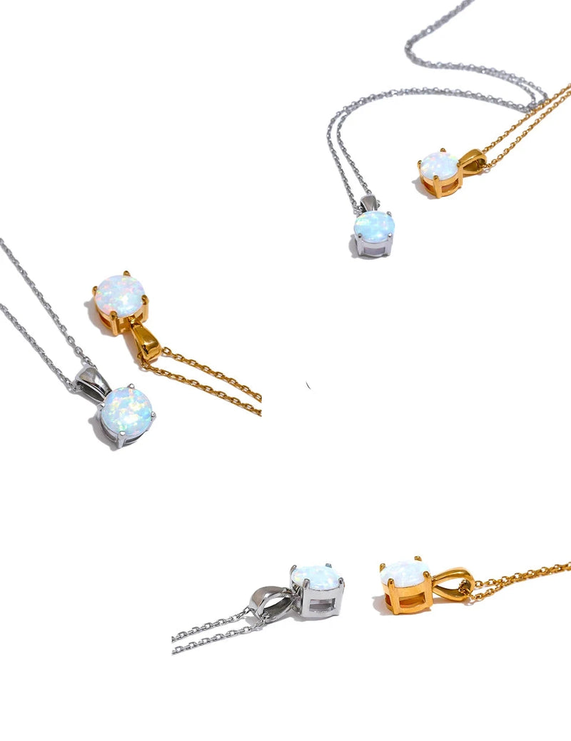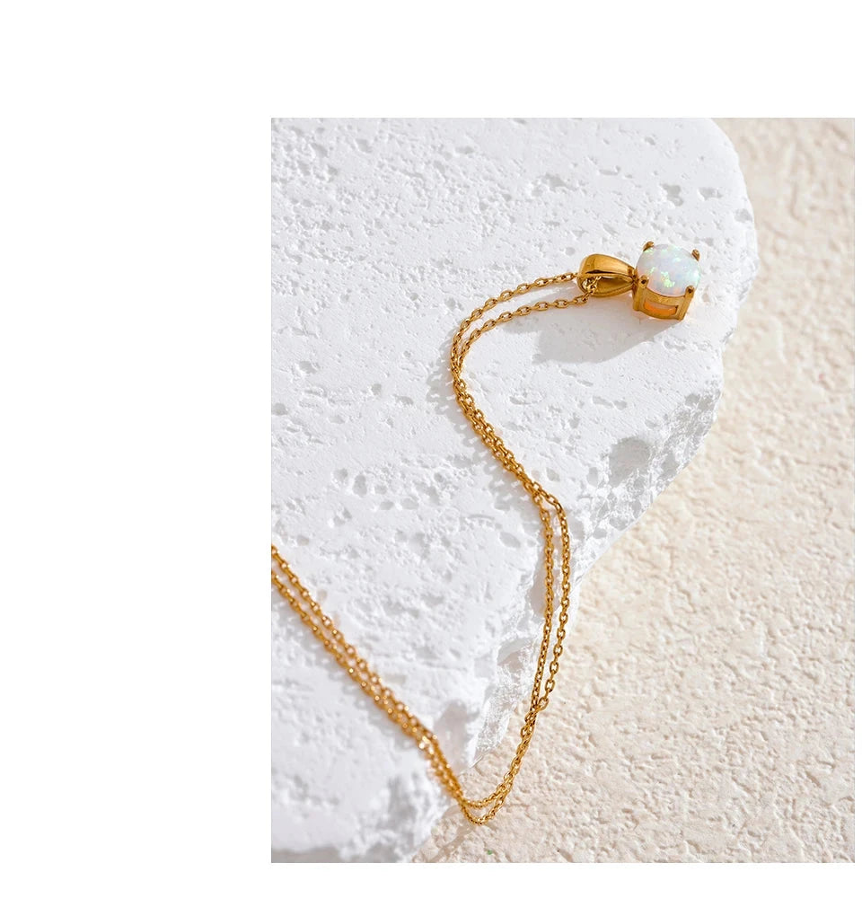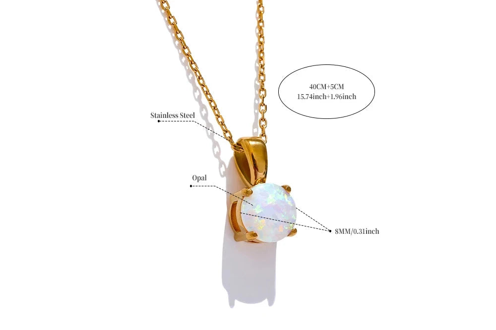 Bellartini Gold Exquisite Round Opal Pendant Necklace