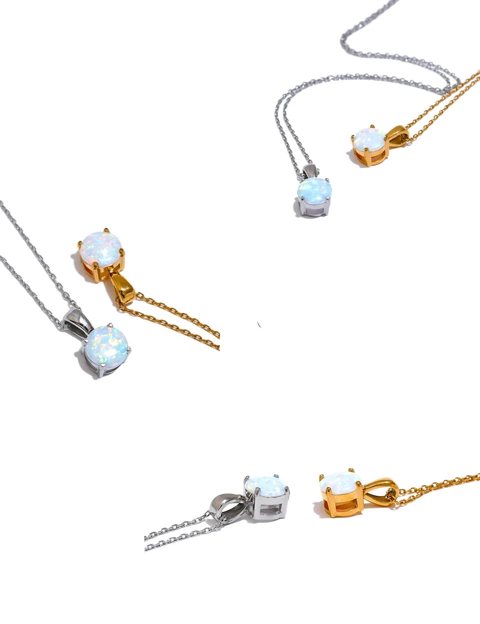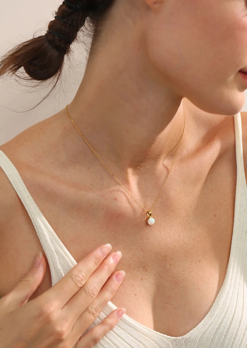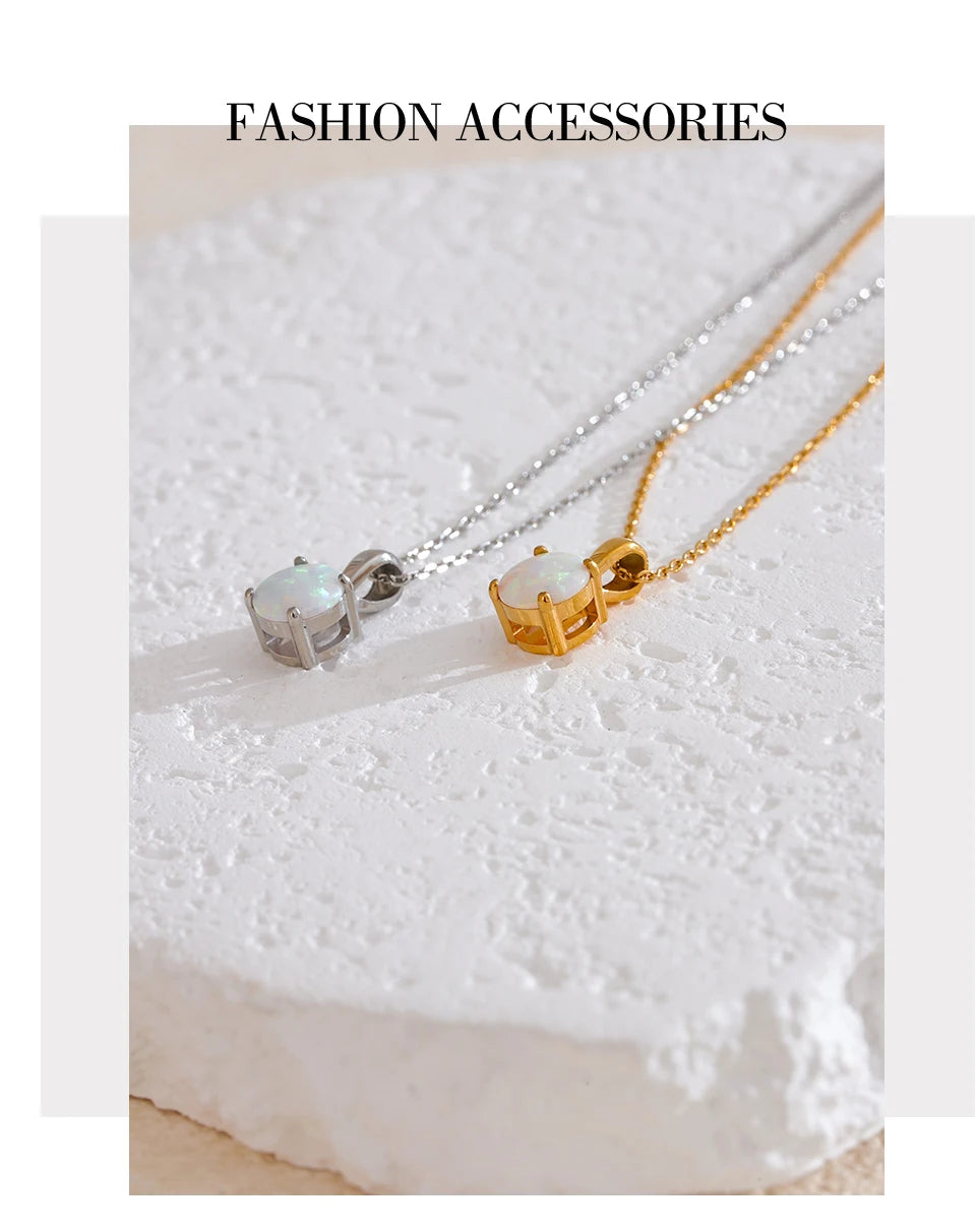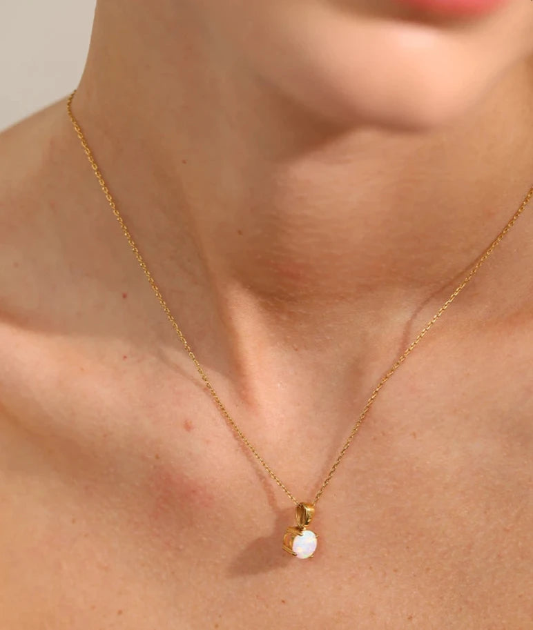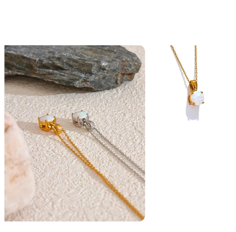 Bellartini Gold Exquisite Round Opal Pendant Necklace