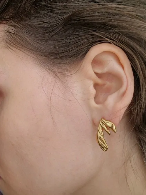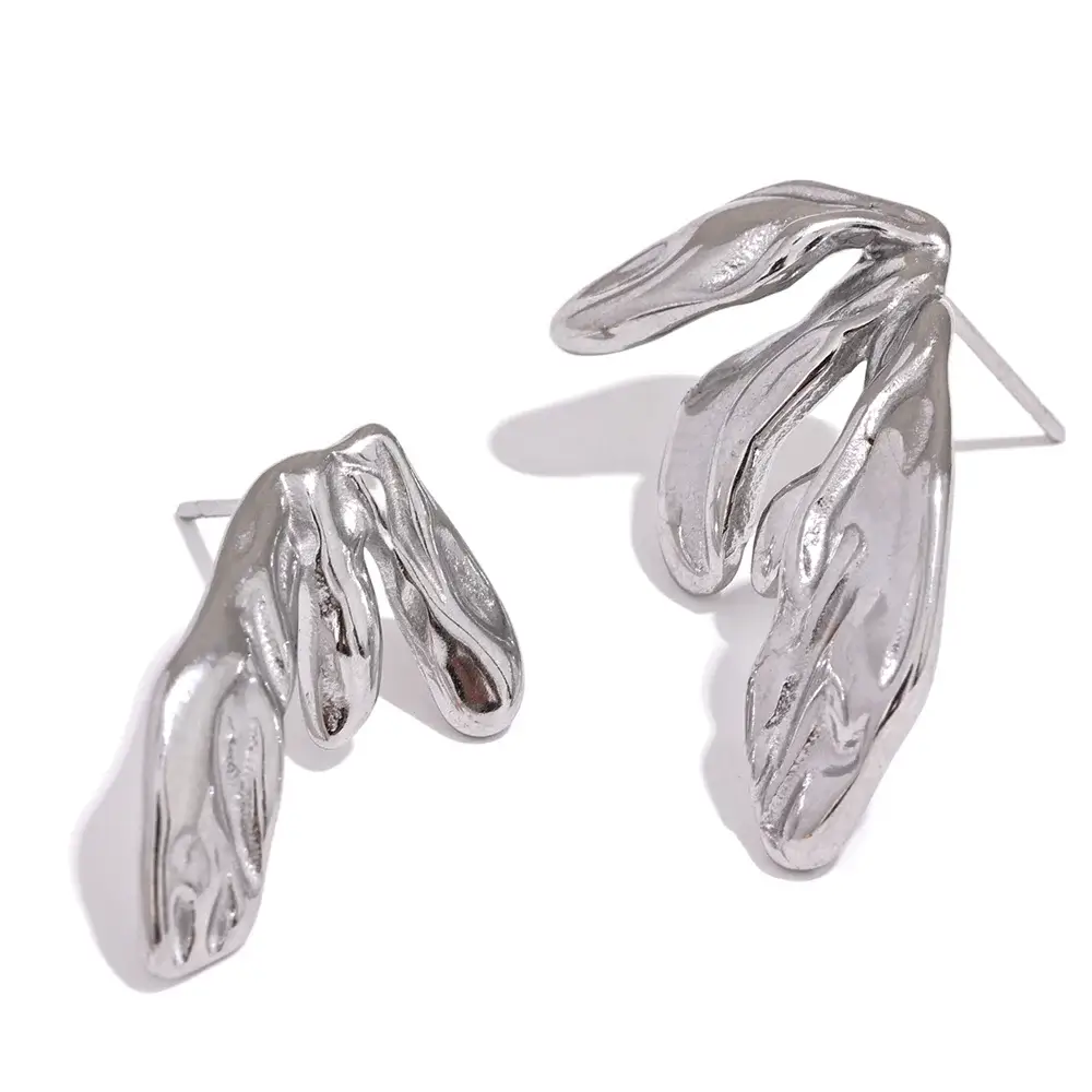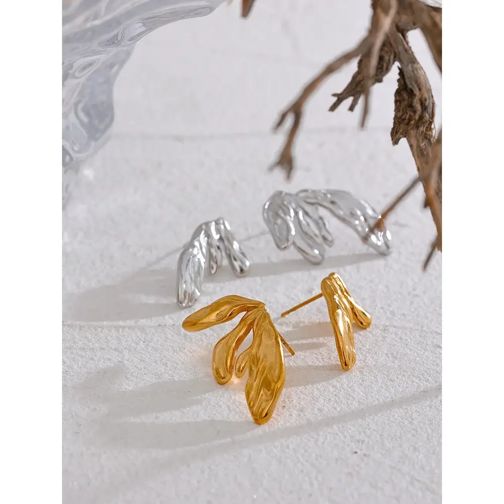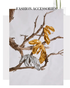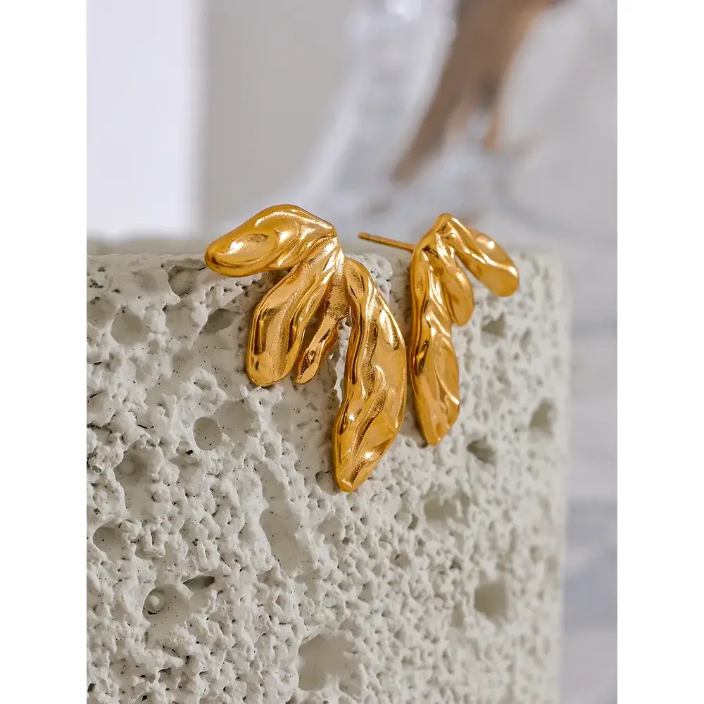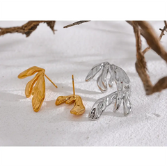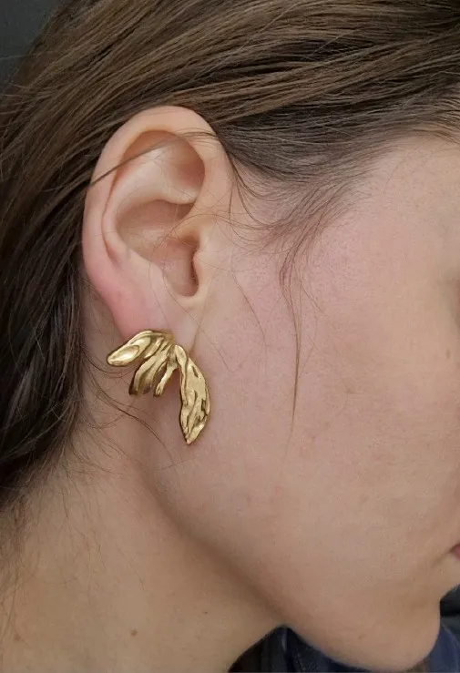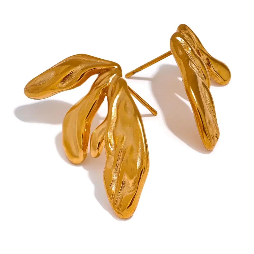 Bellartini Milan Gold Fashion Flower Leaf Asymmetrical Earrings WP