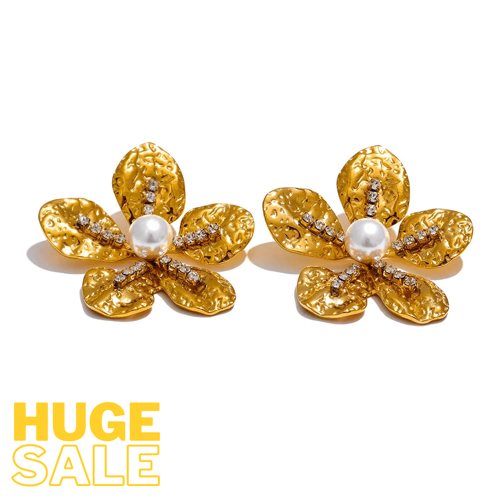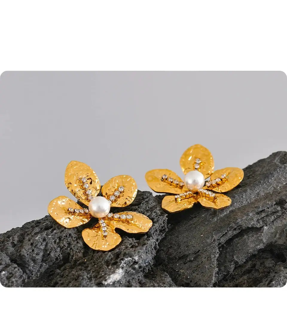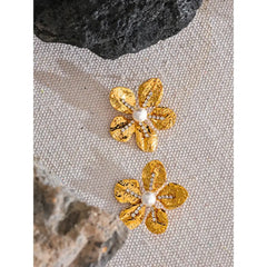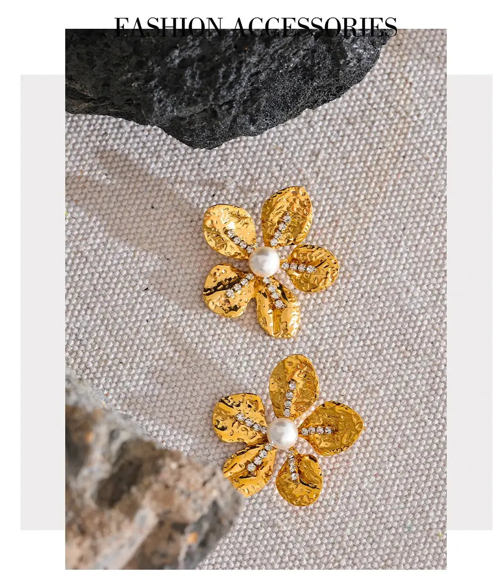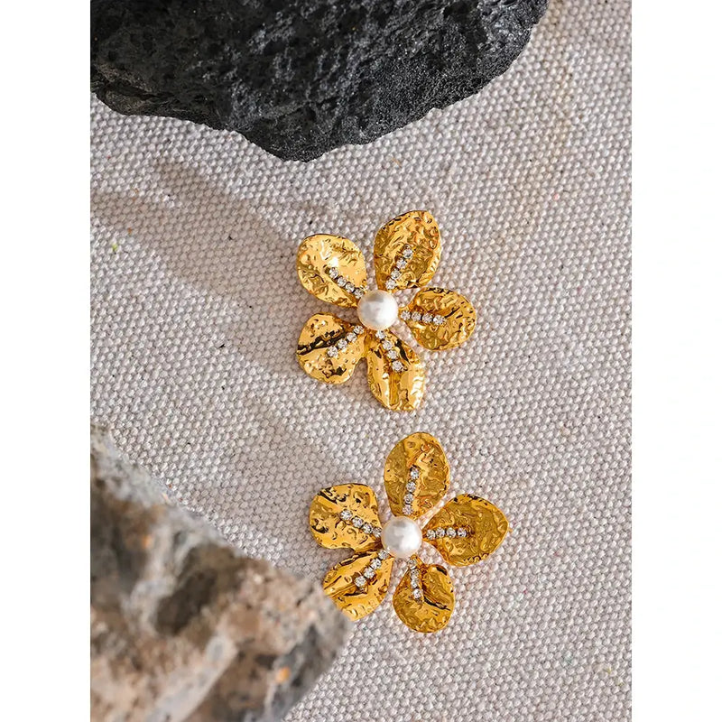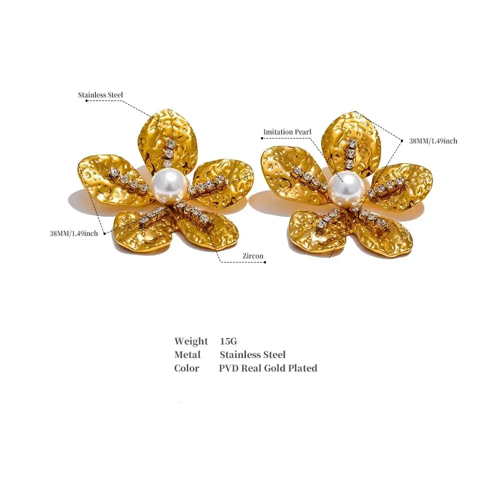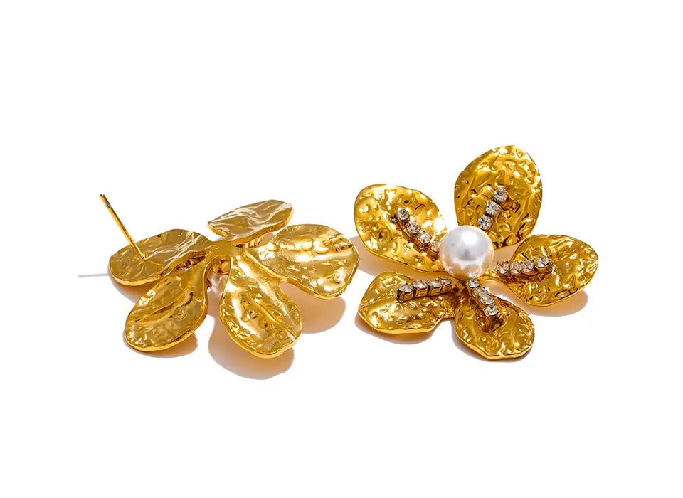 Bellartini Gold Color Flower Earrings with Cubic Zirconia Pearls WP