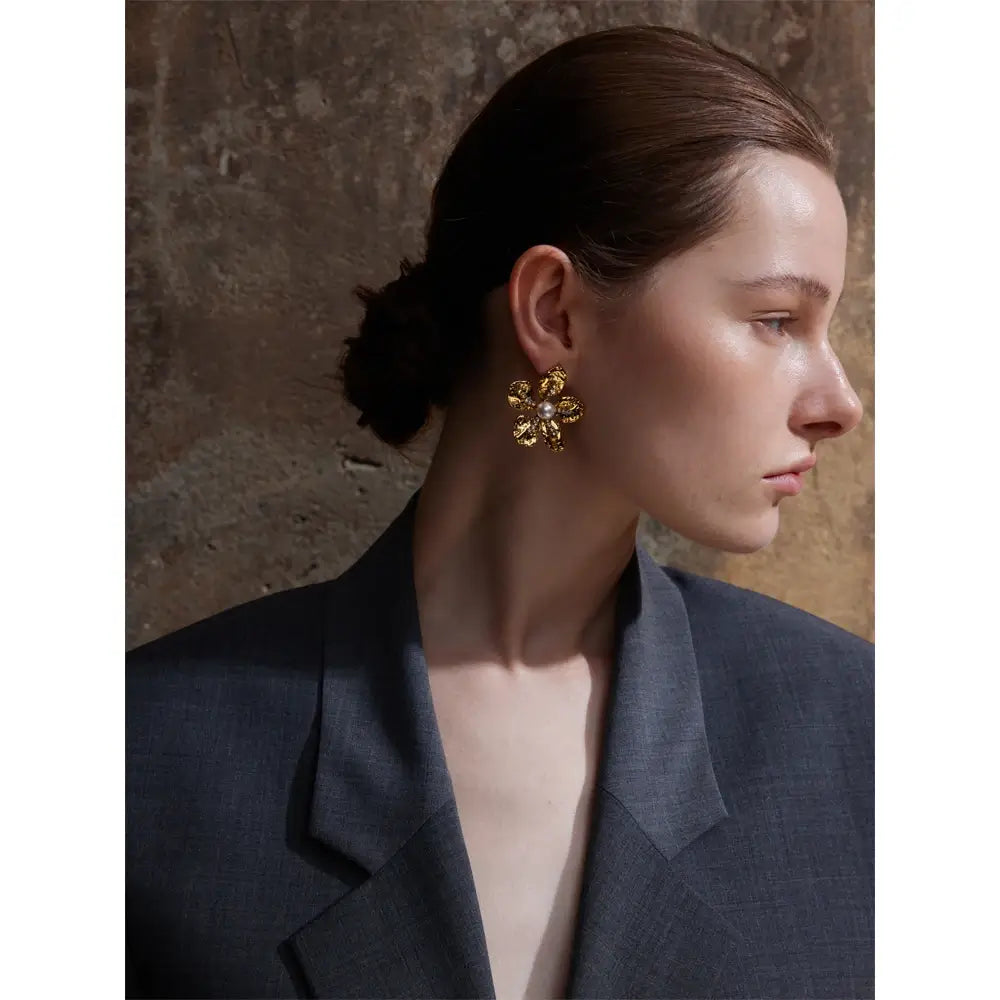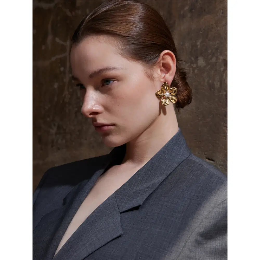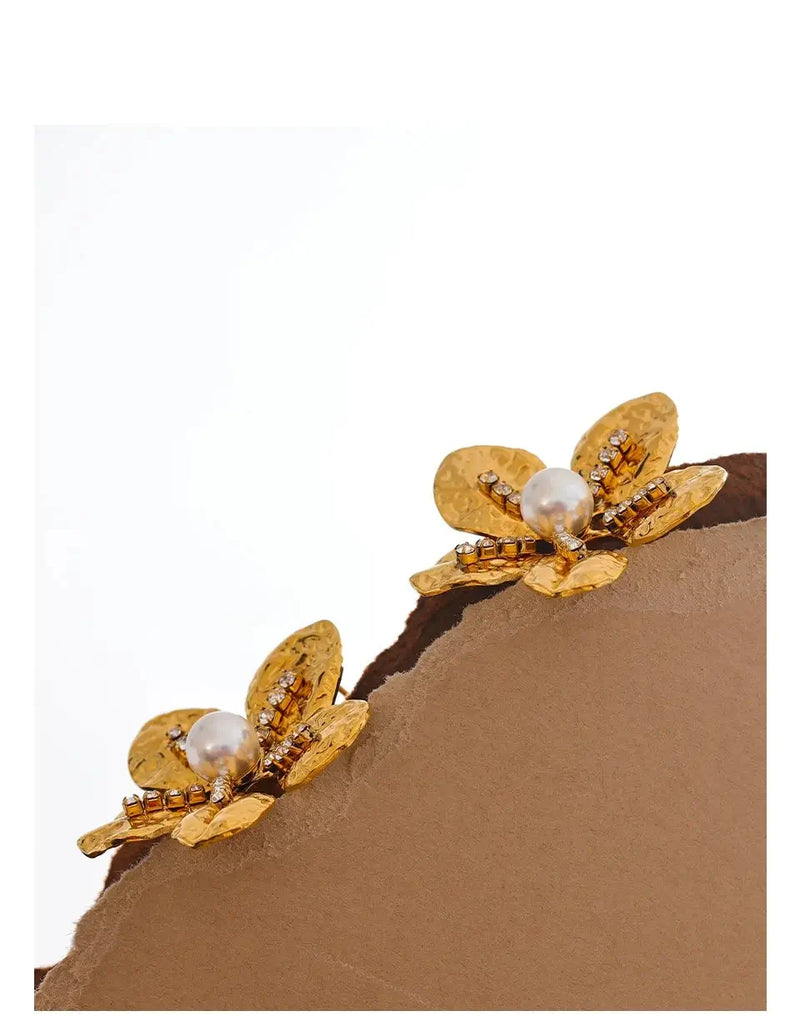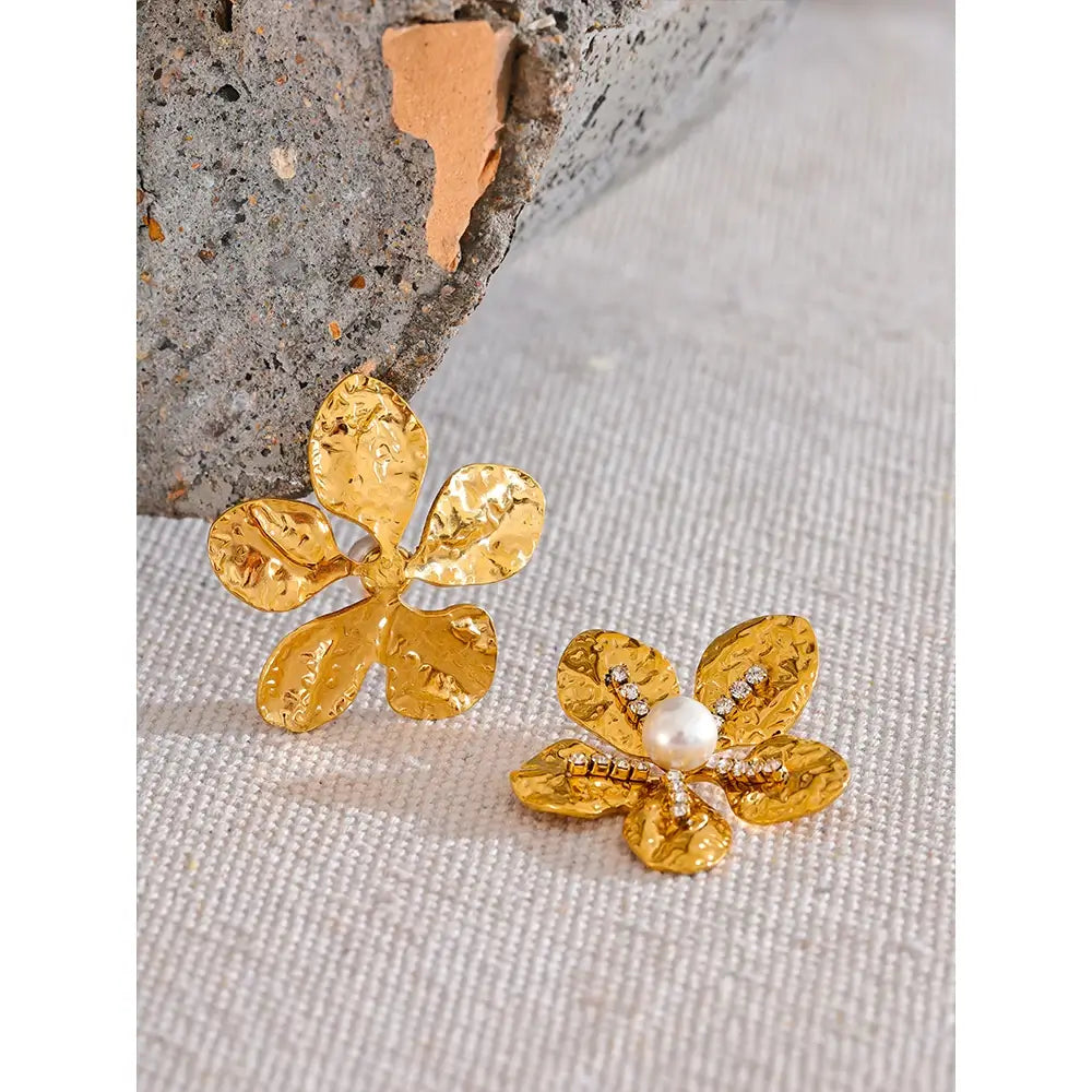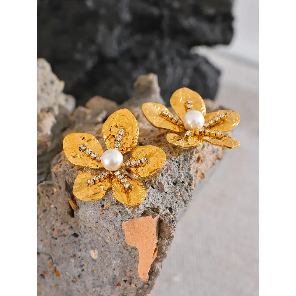 Bellartini Gold Color Flower Earrings with Cubic Zirconia Pearls WP
