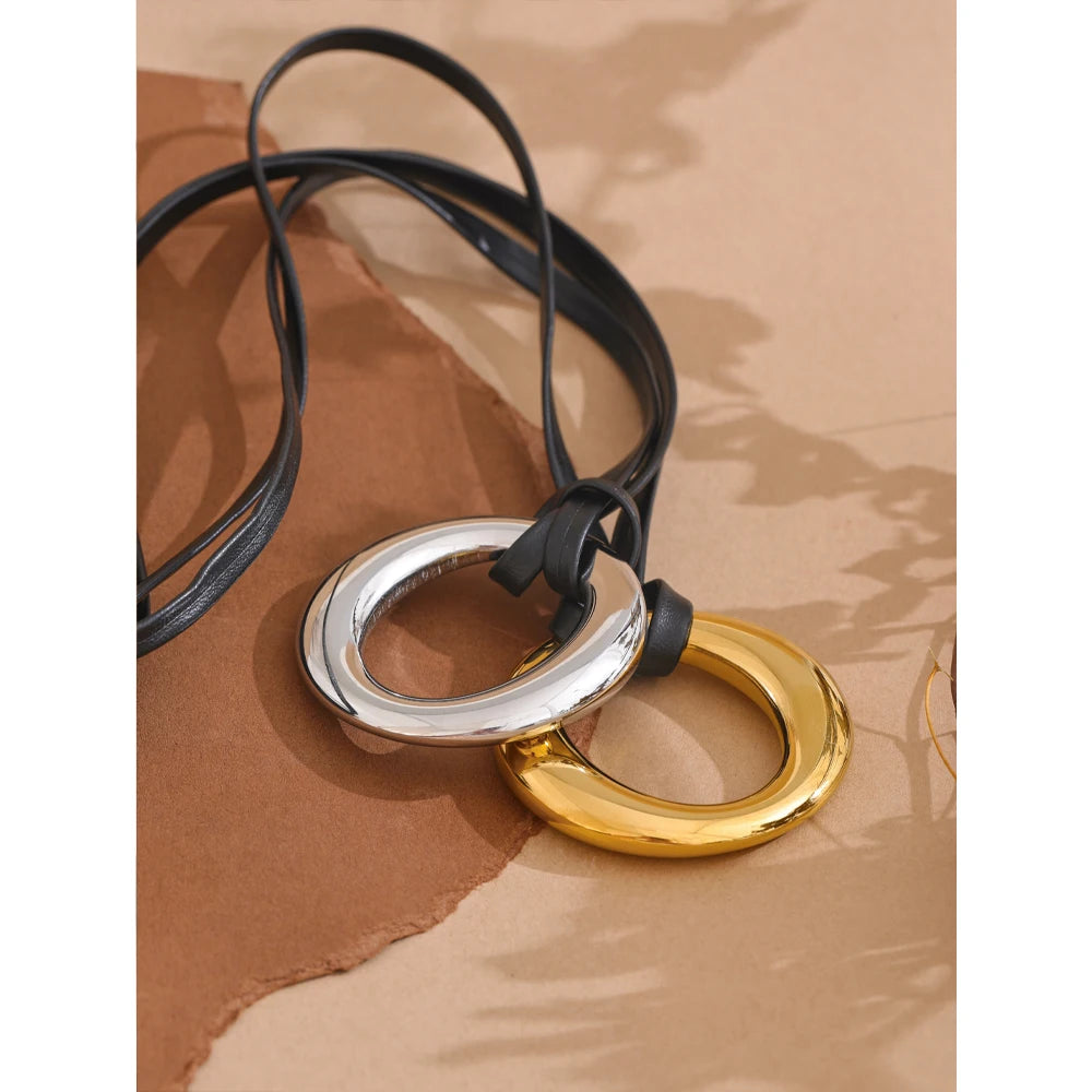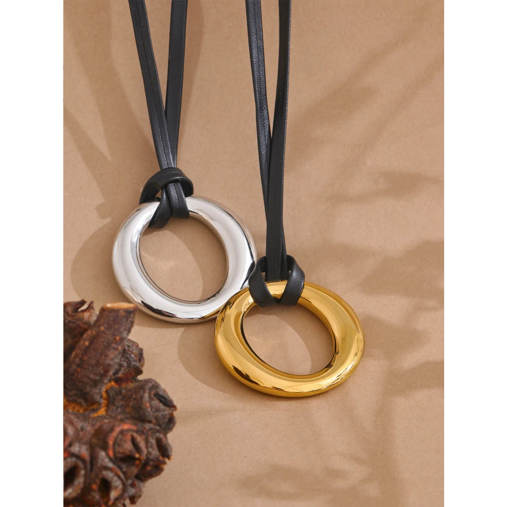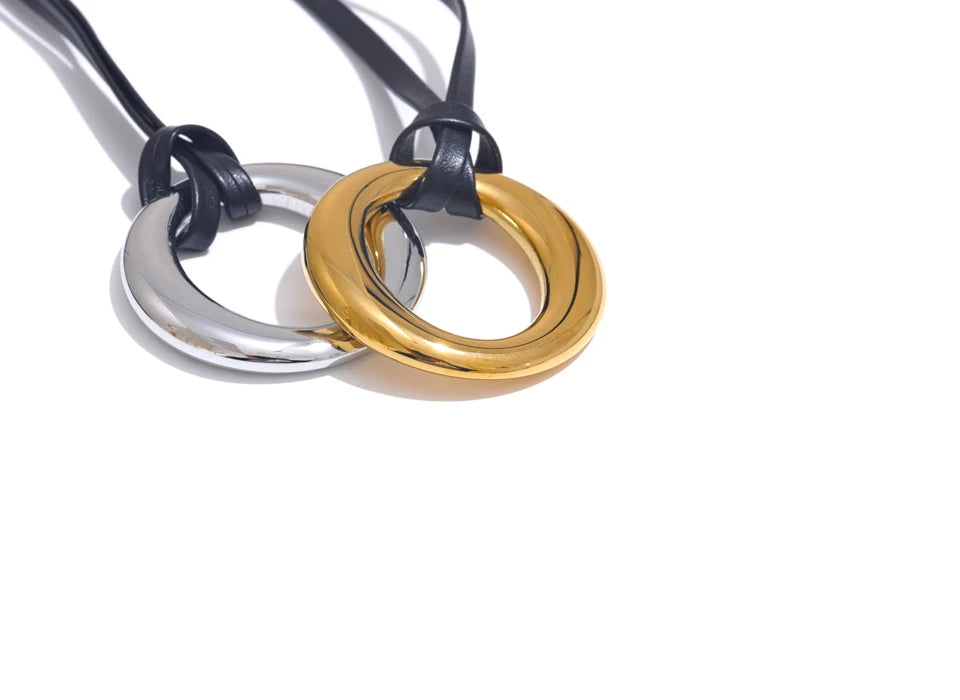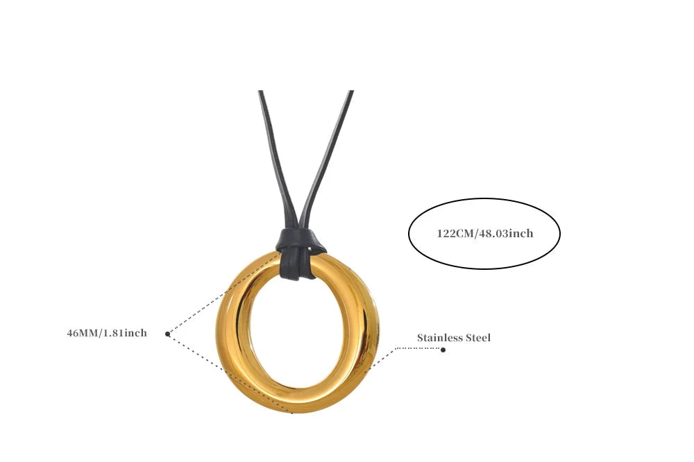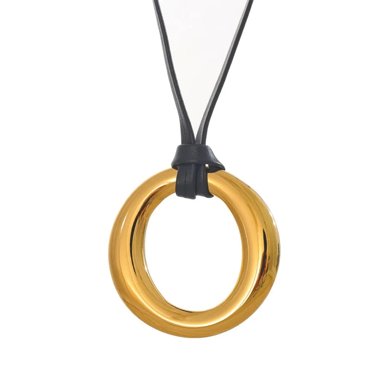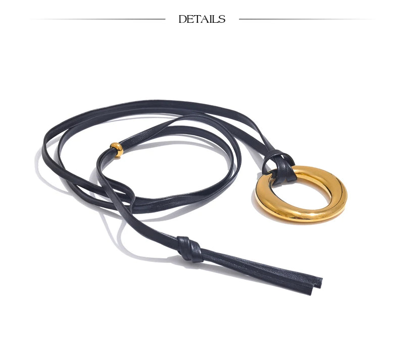 Bellartini Gold PU Leather Round Pendant Bib Necklace