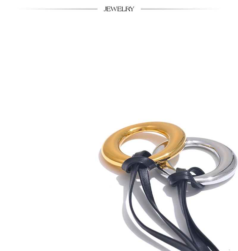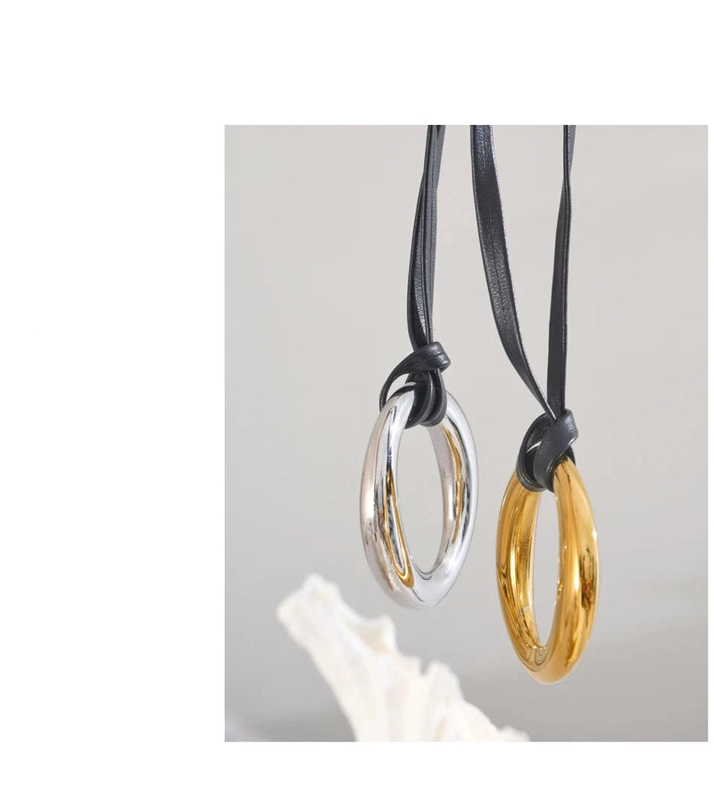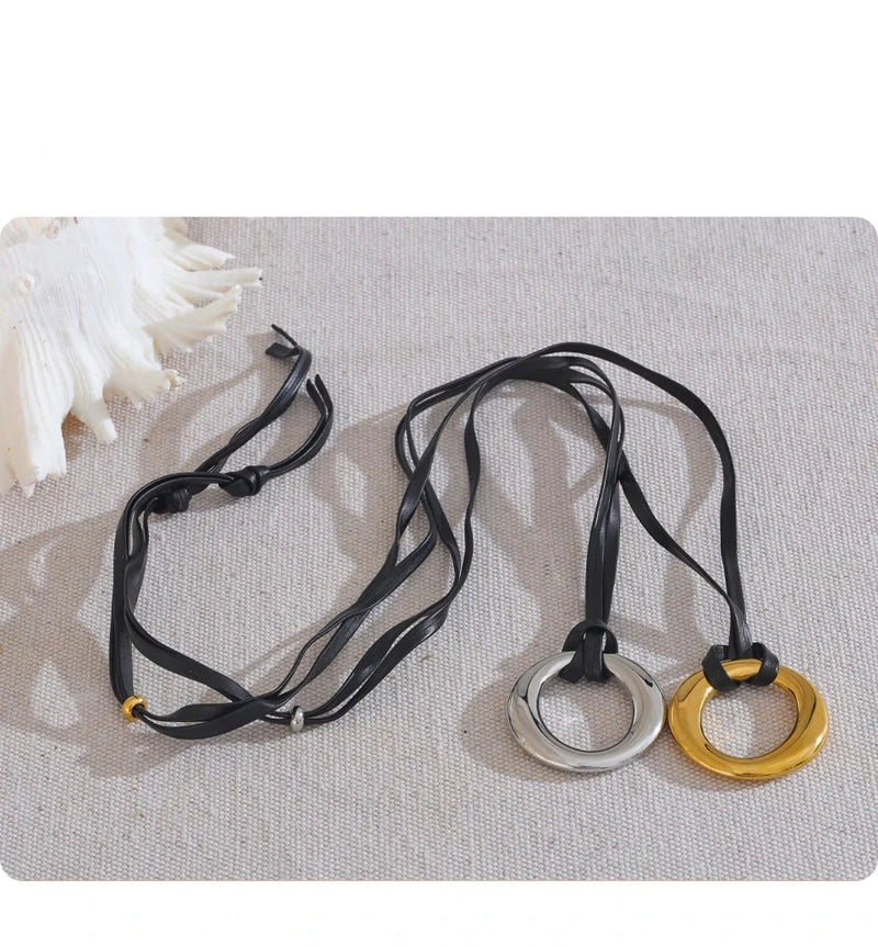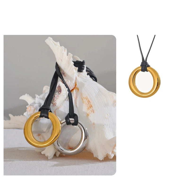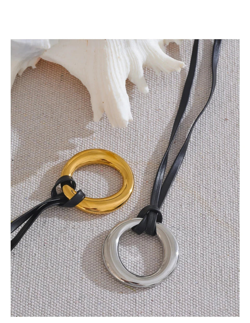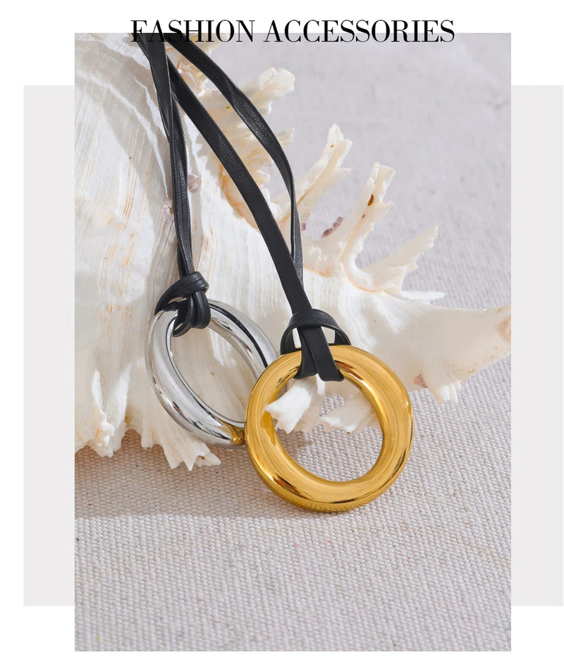 Bellartini Gold PU Leather Round Pendant Bib Necklace