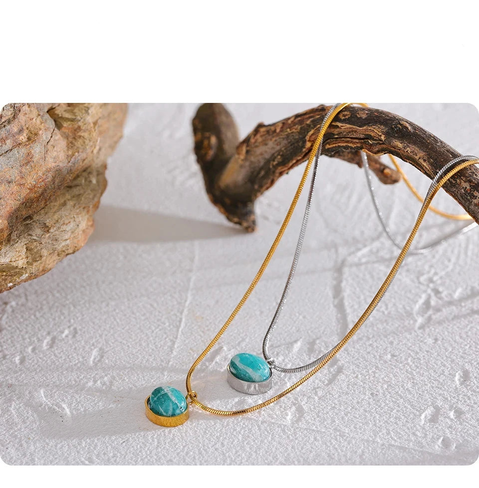 Bellartini Gold Natural Stone Freshwater Pearls Handmade Necklace WP