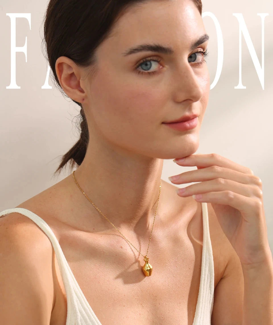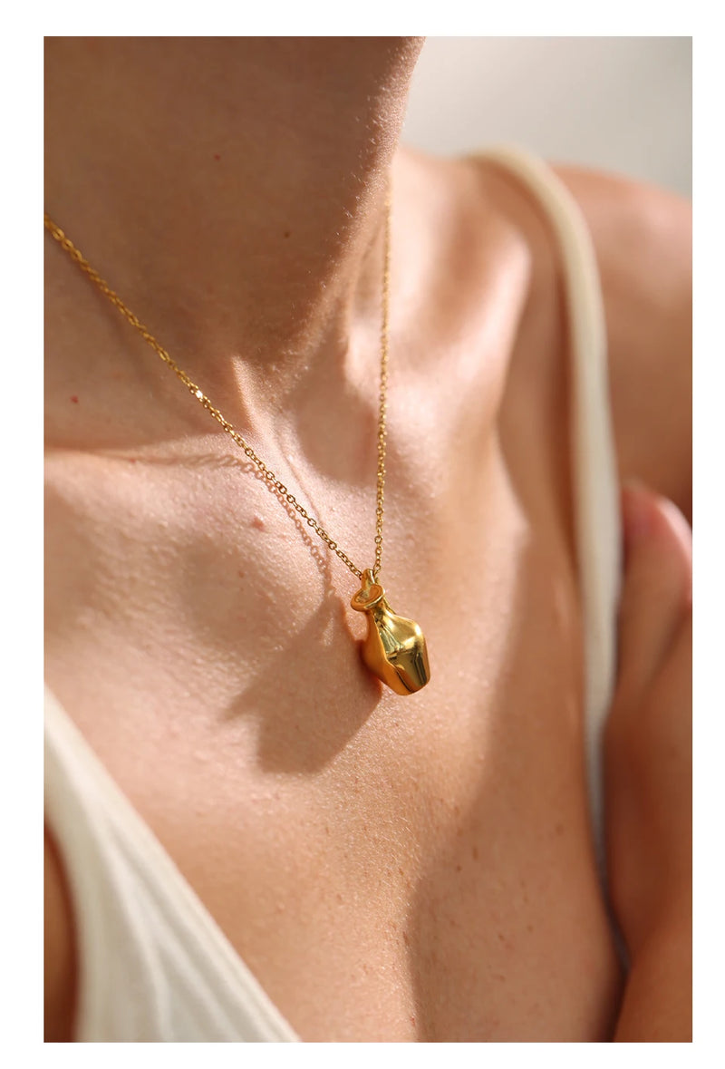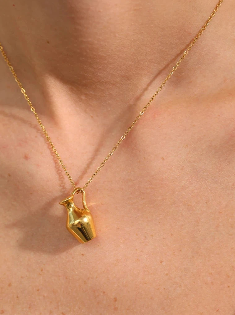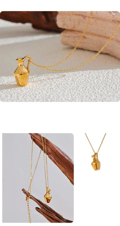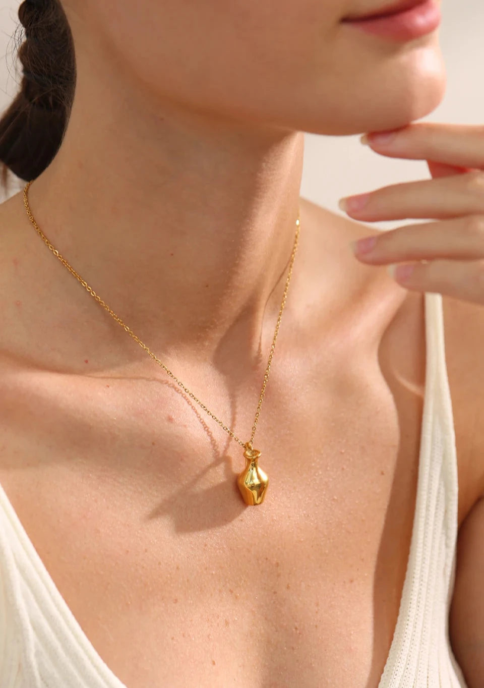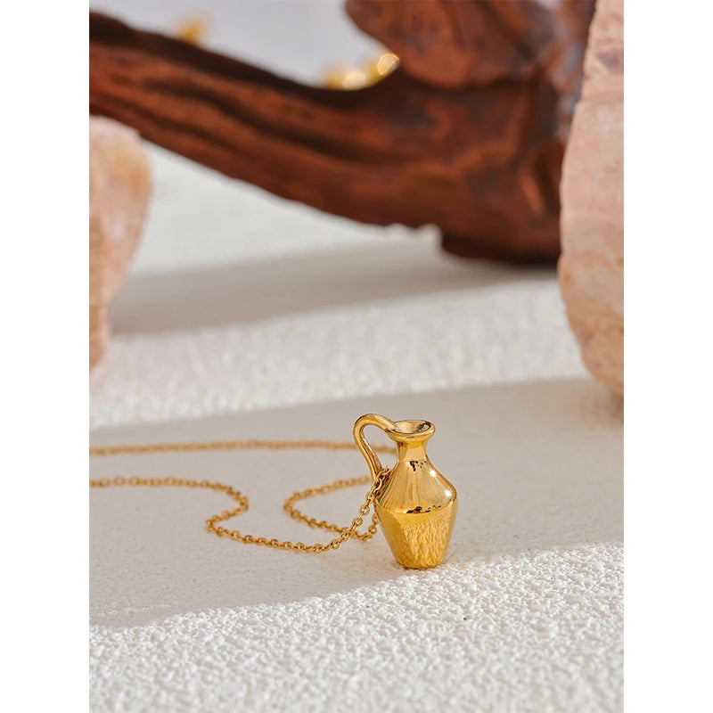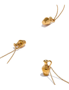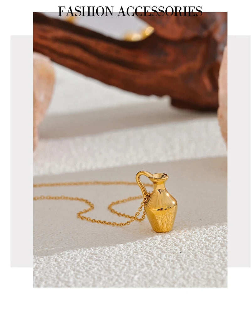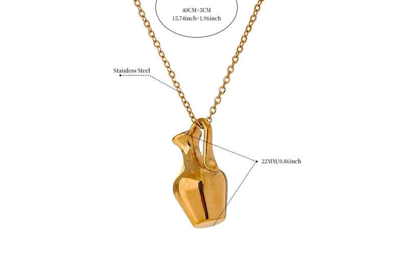 Bellartini Gold Personalized Solid Metal Vase Kettle Charm Necklace Pendant WP