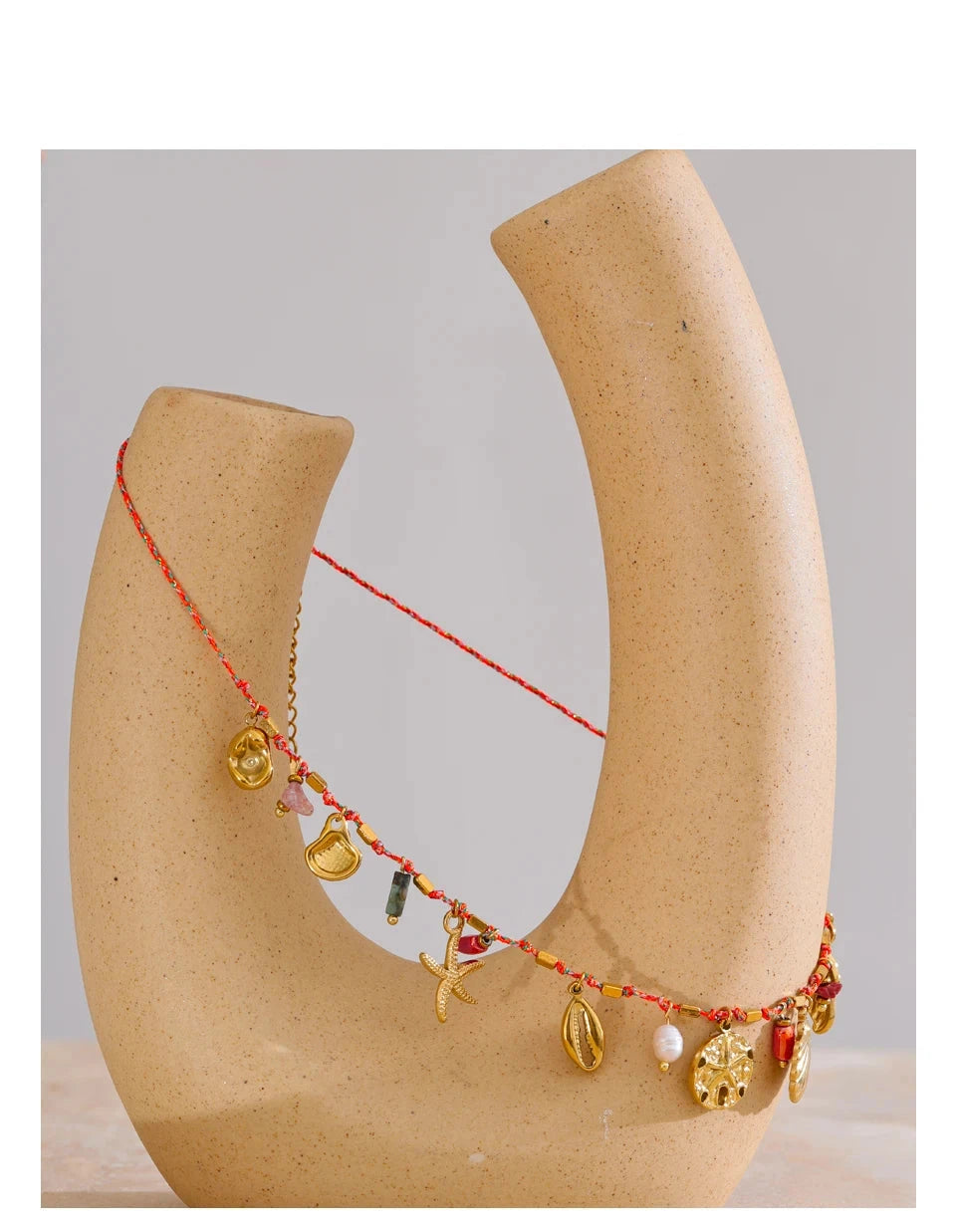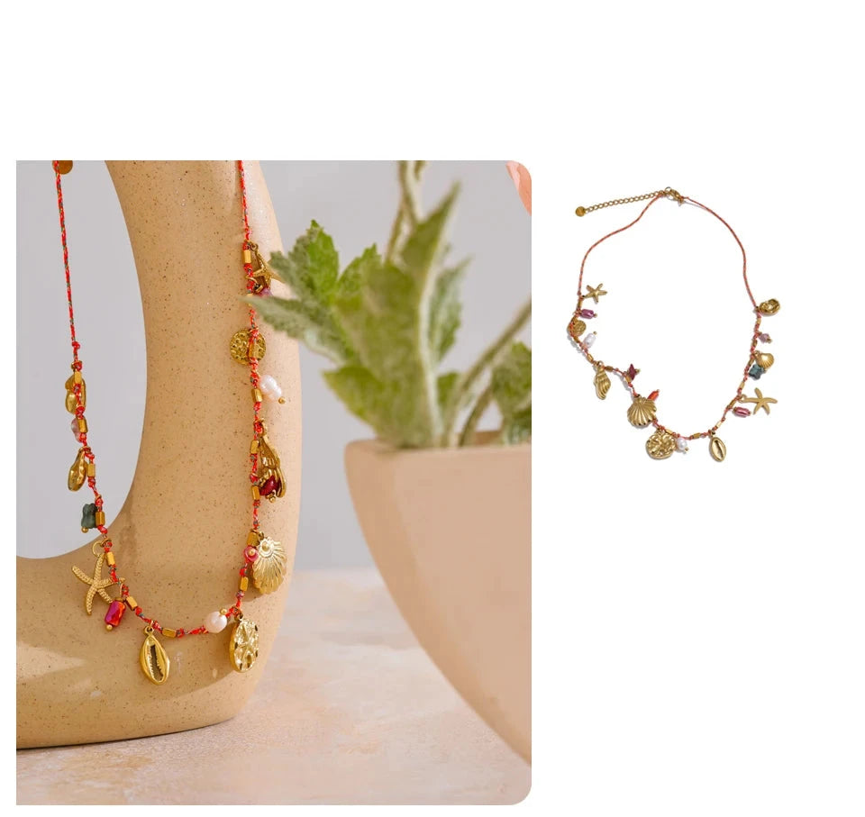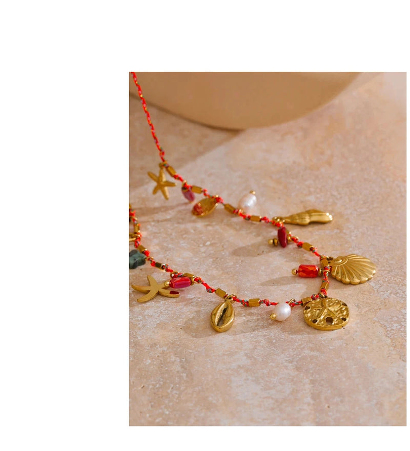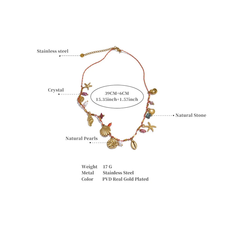 Bellartini Gold Handmade Rope Shell Star Pendant Necklace WP