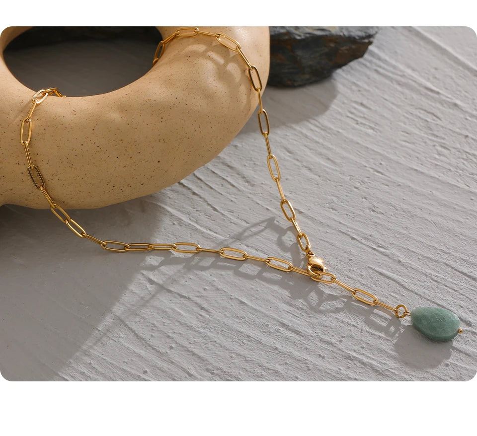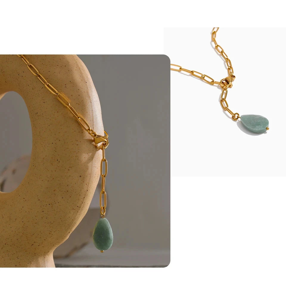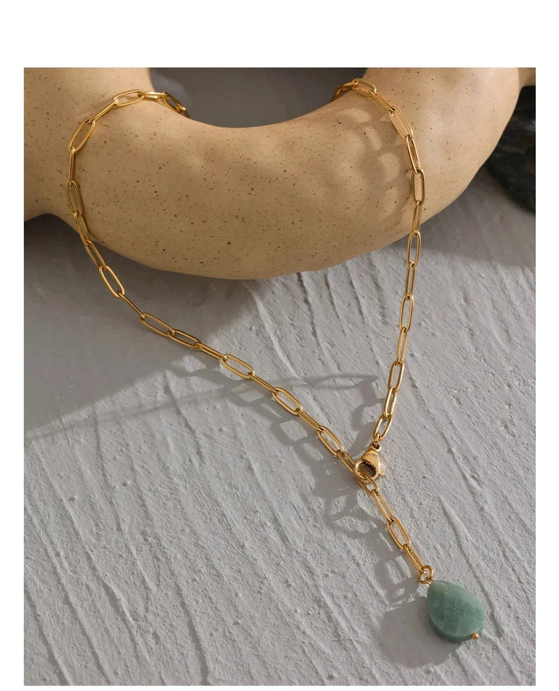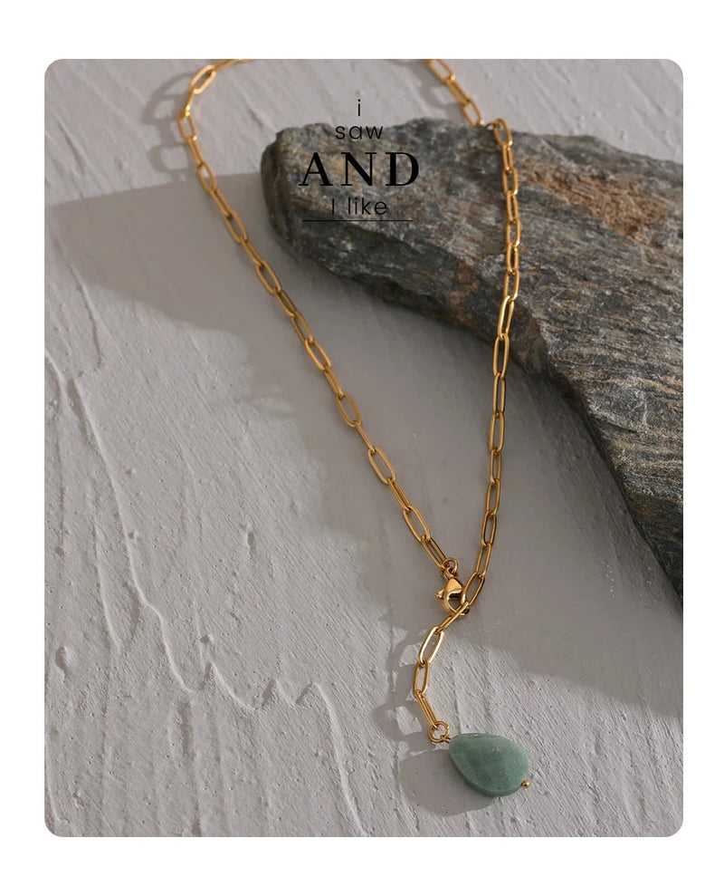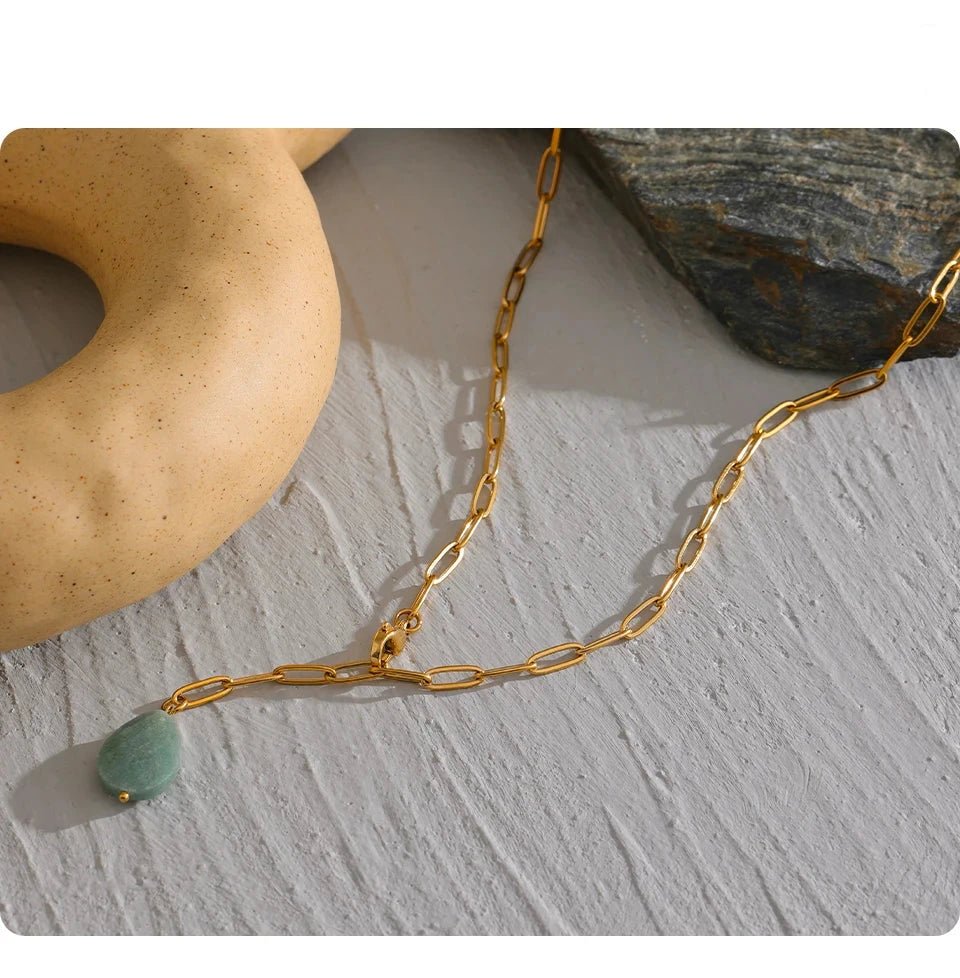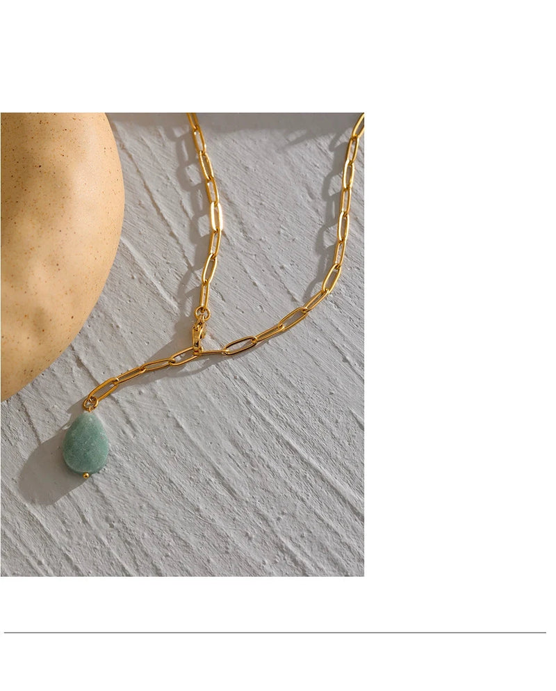 Bellartini 18k Gold Natural Stone Agate Pendant Necklace Venice