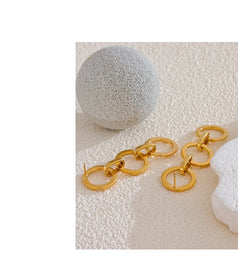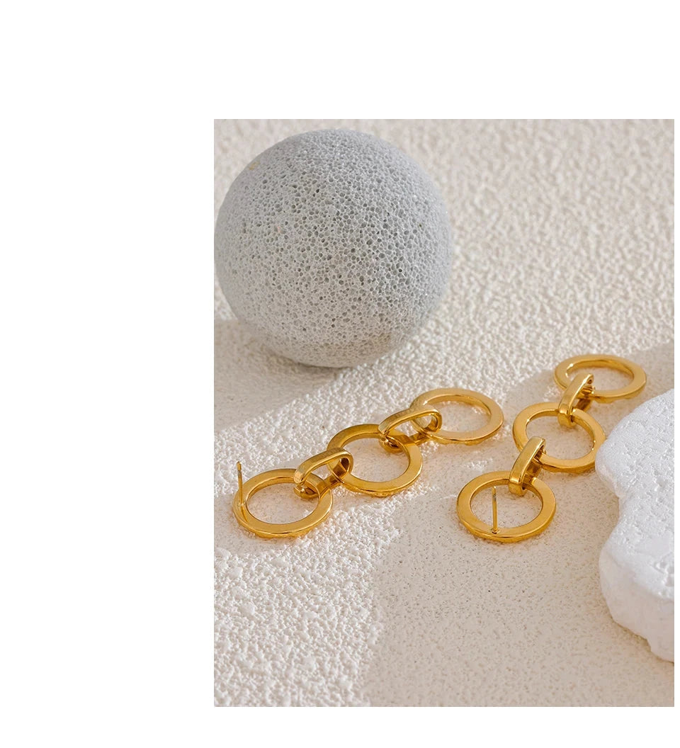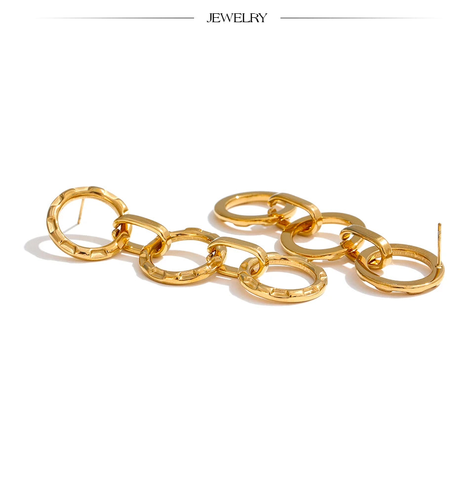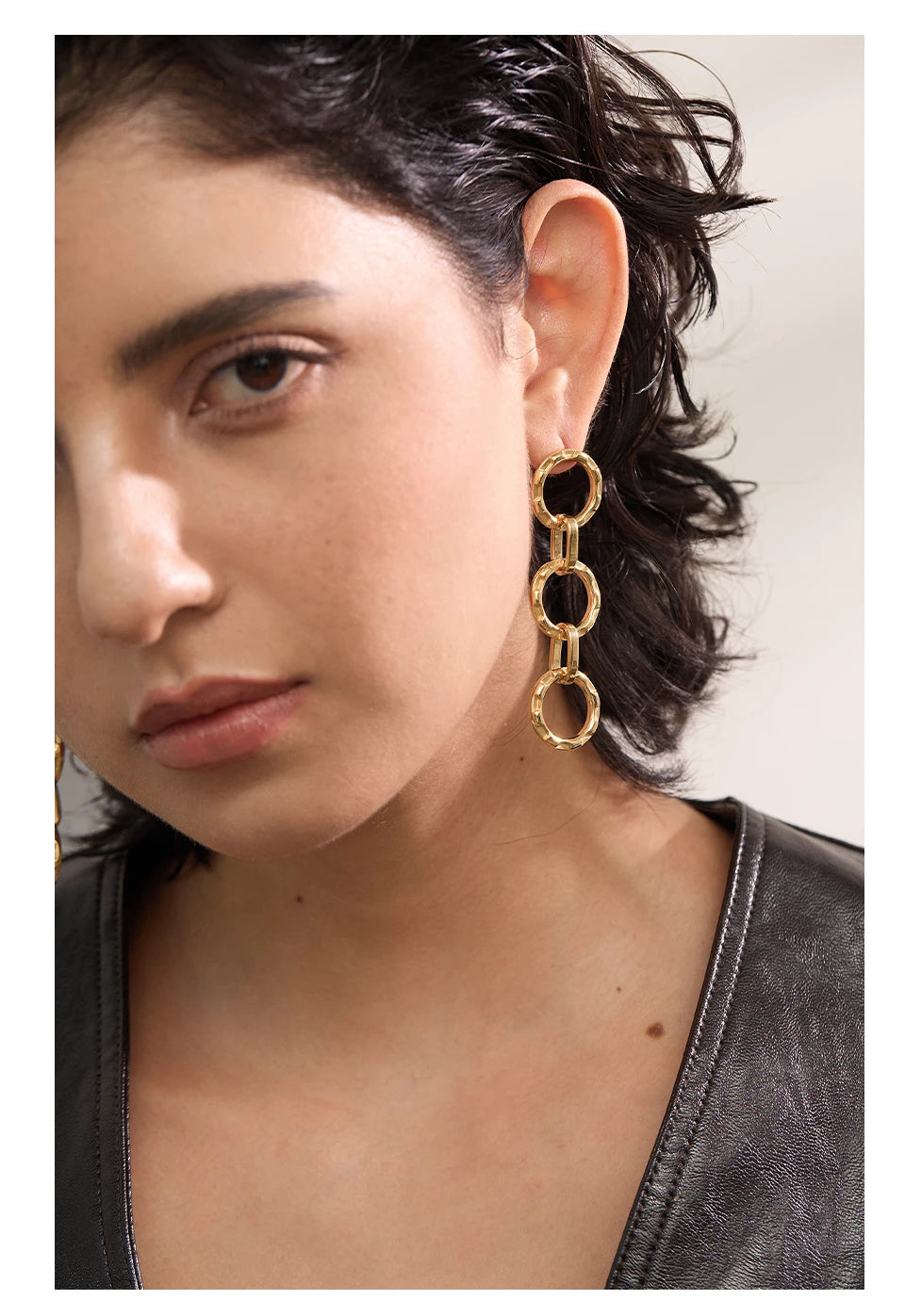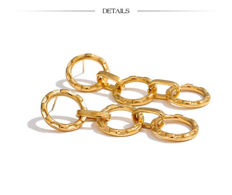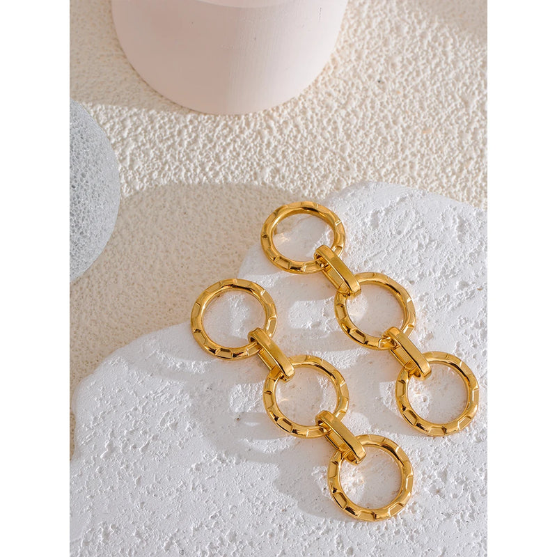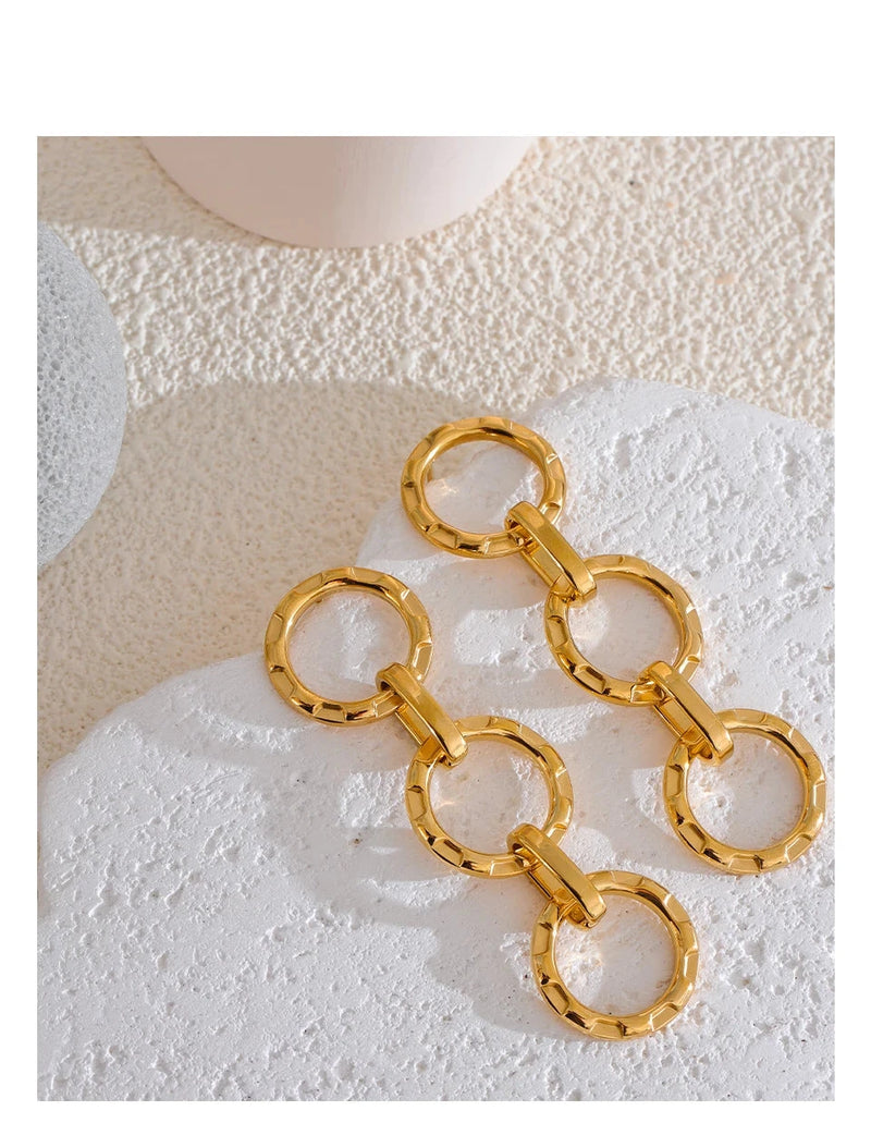 Bellartini 18k Gold Round Circle Link Long Drop Dangle Earrings WP Venice.