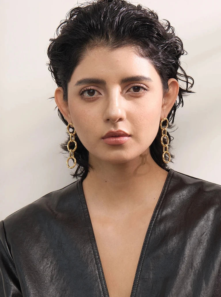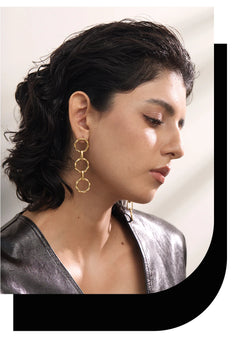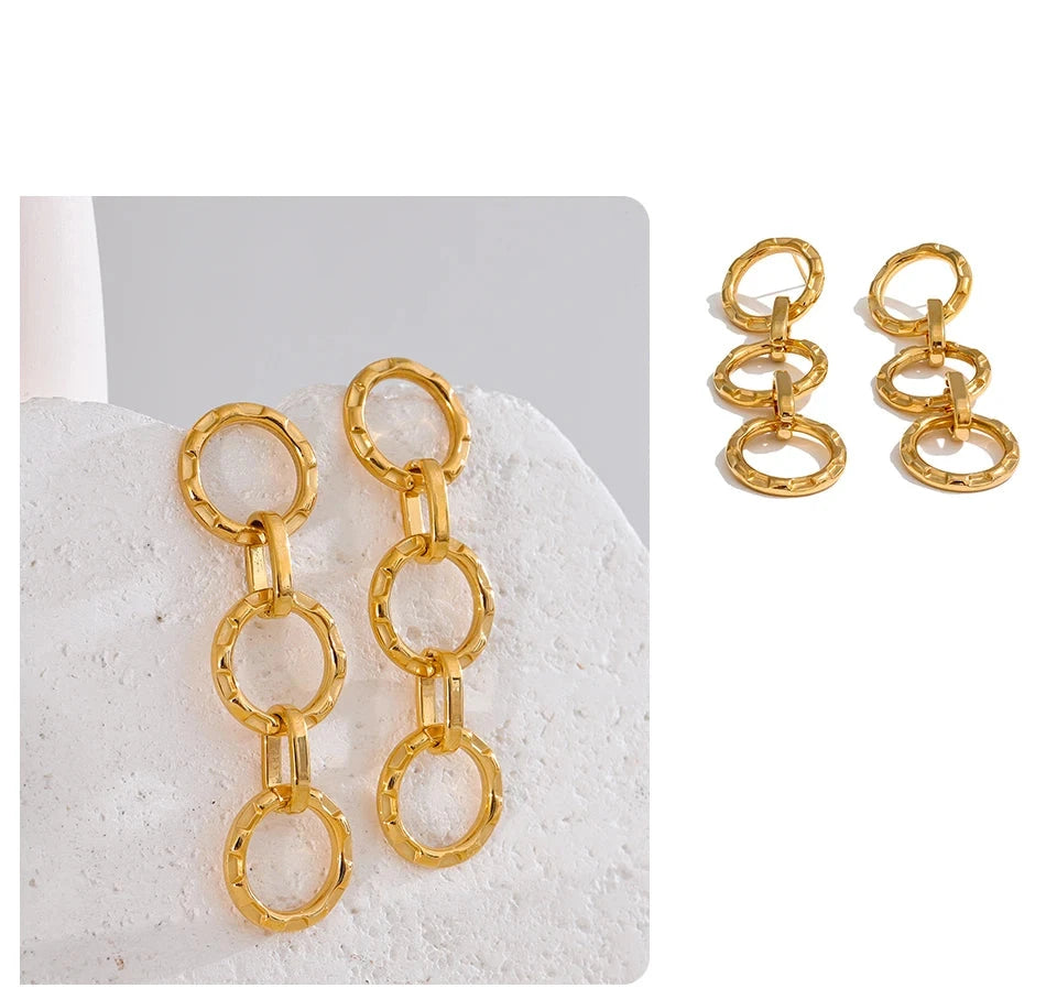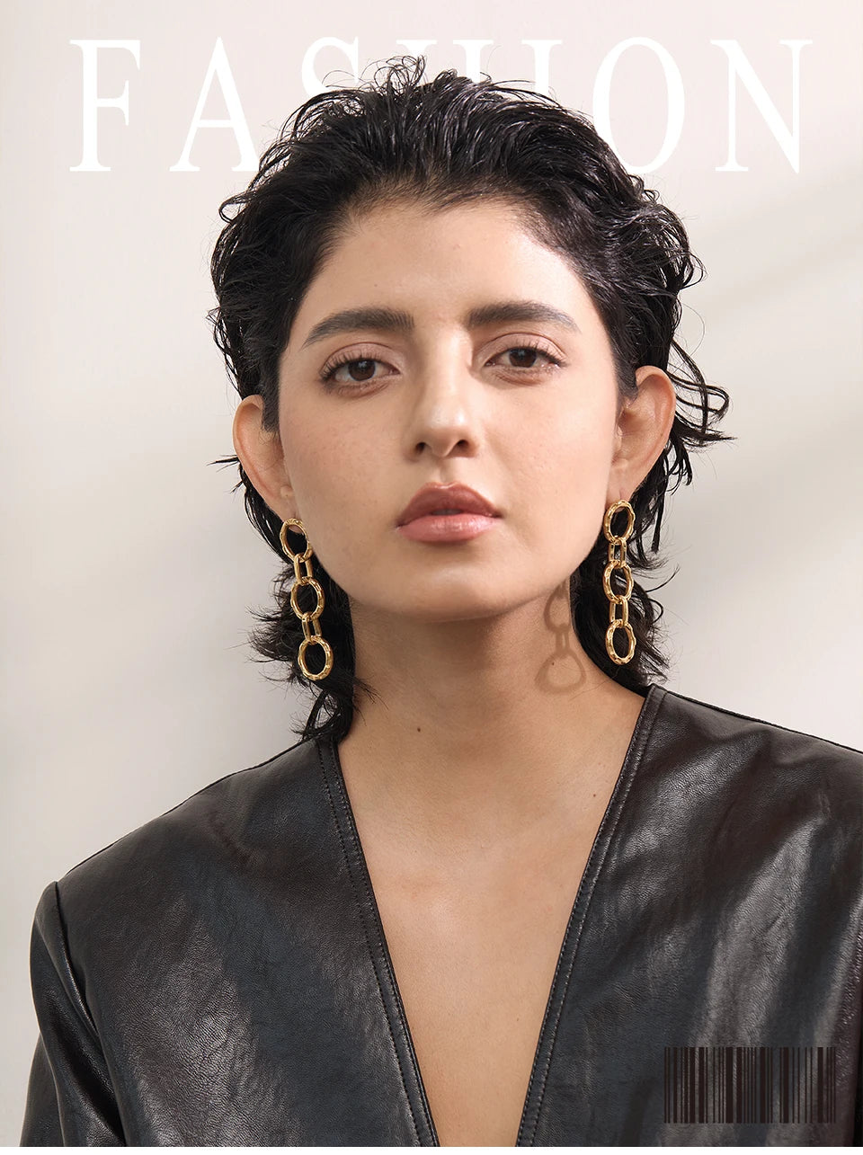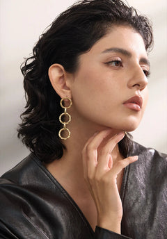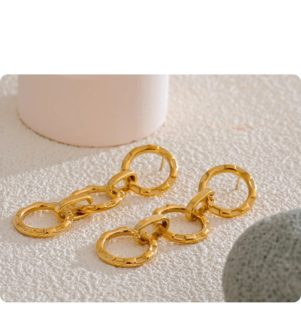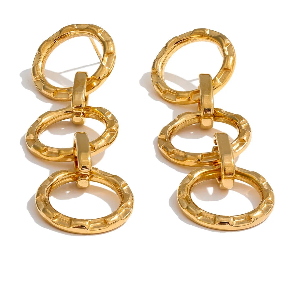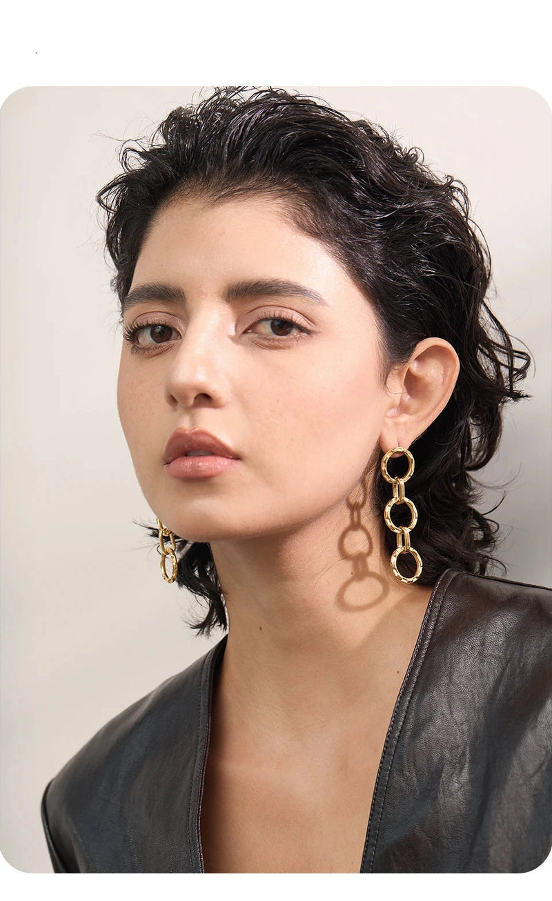 Bellartini 18k Gold Round Circle Link Long Drop Dangle Earrings WP Venice.