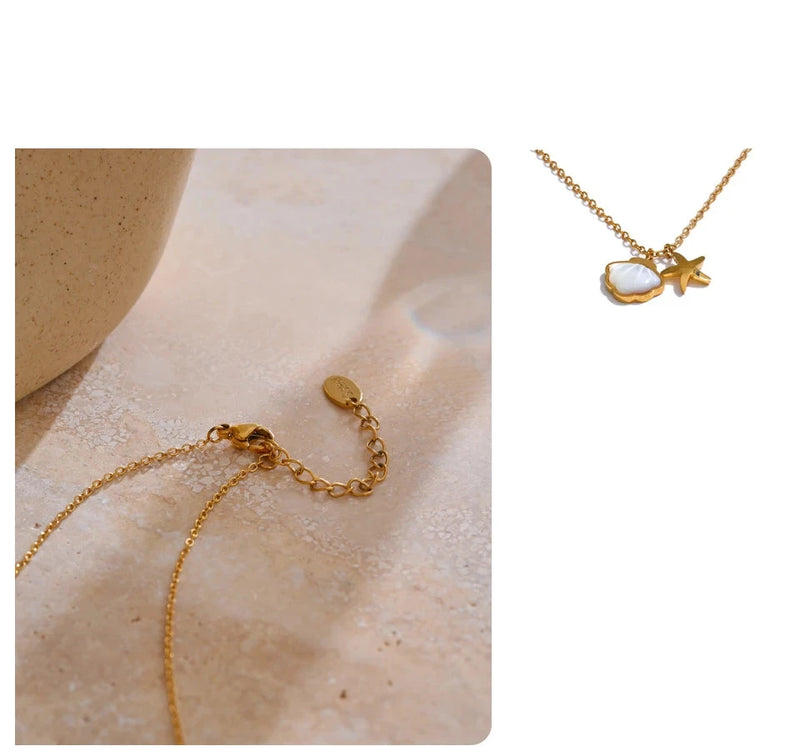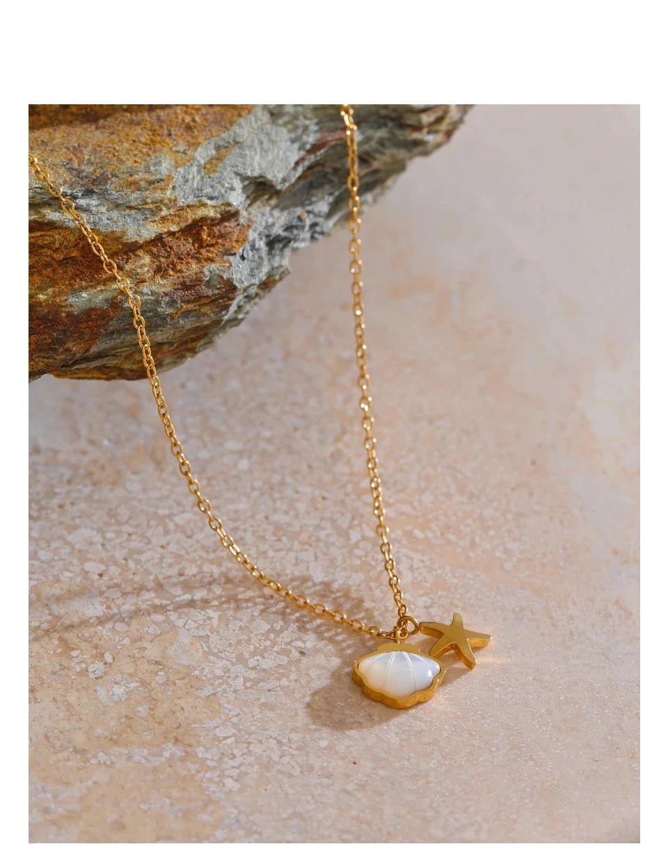 Bellartini Gold Thicker Natural Shell Starfish Pendant Necklace Venice