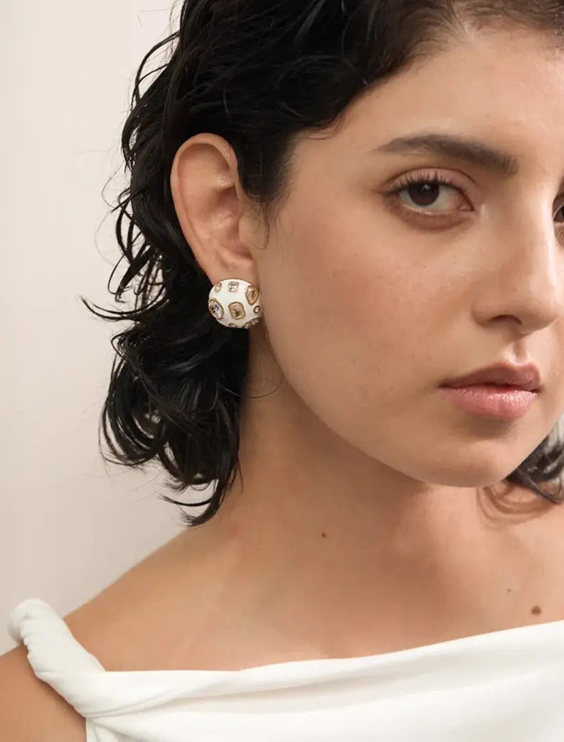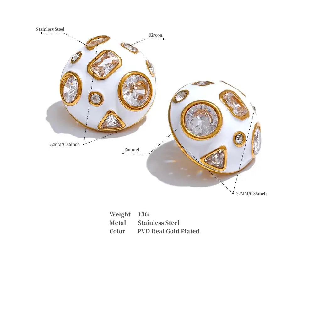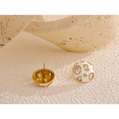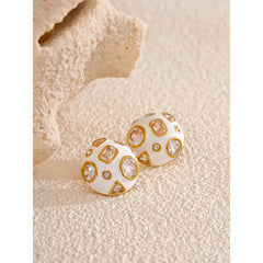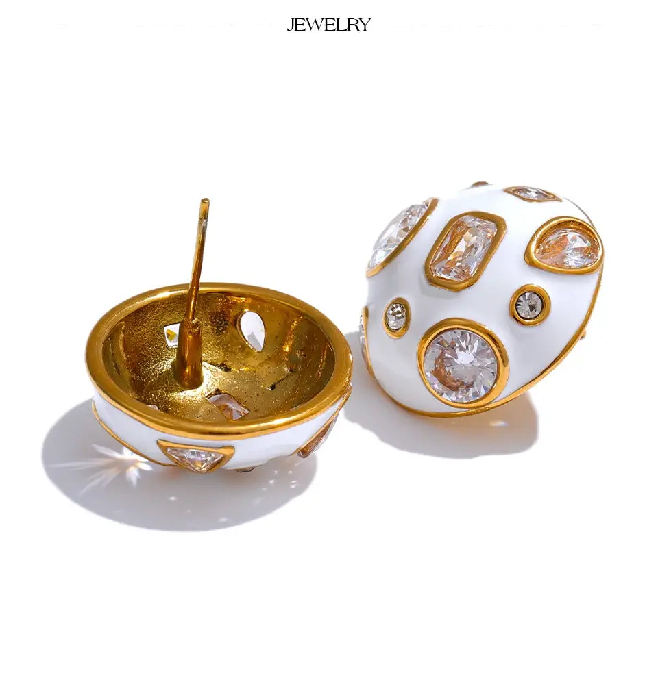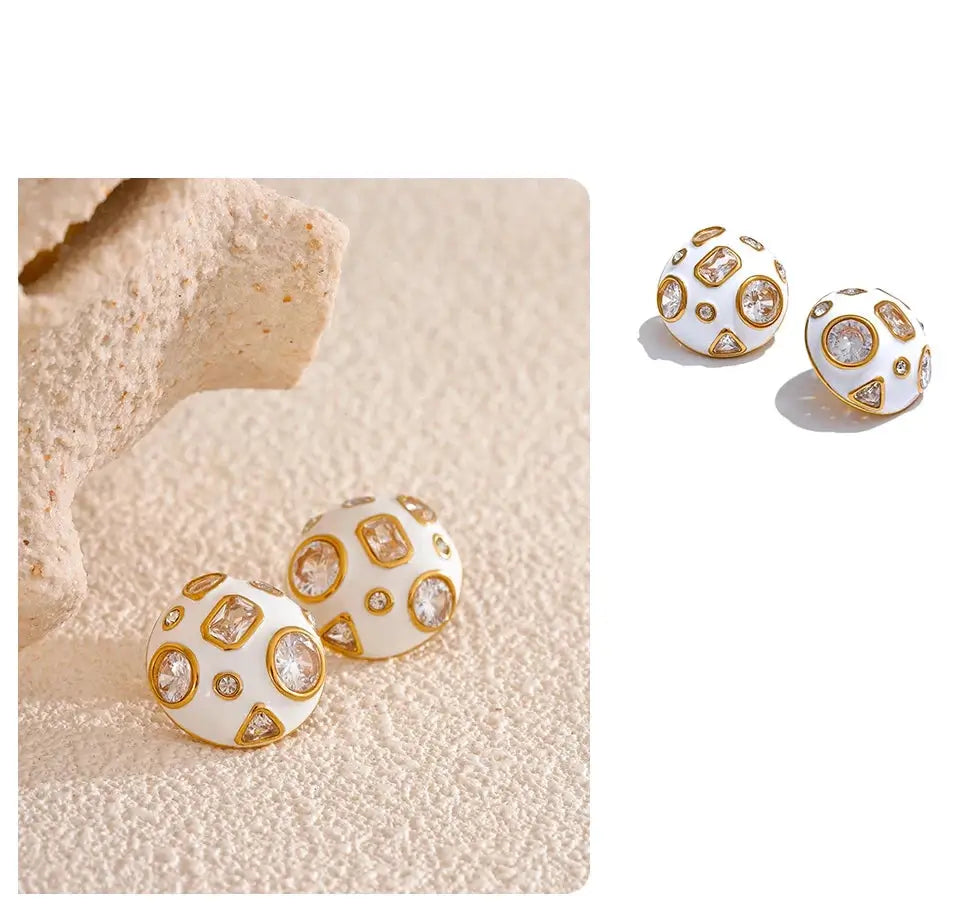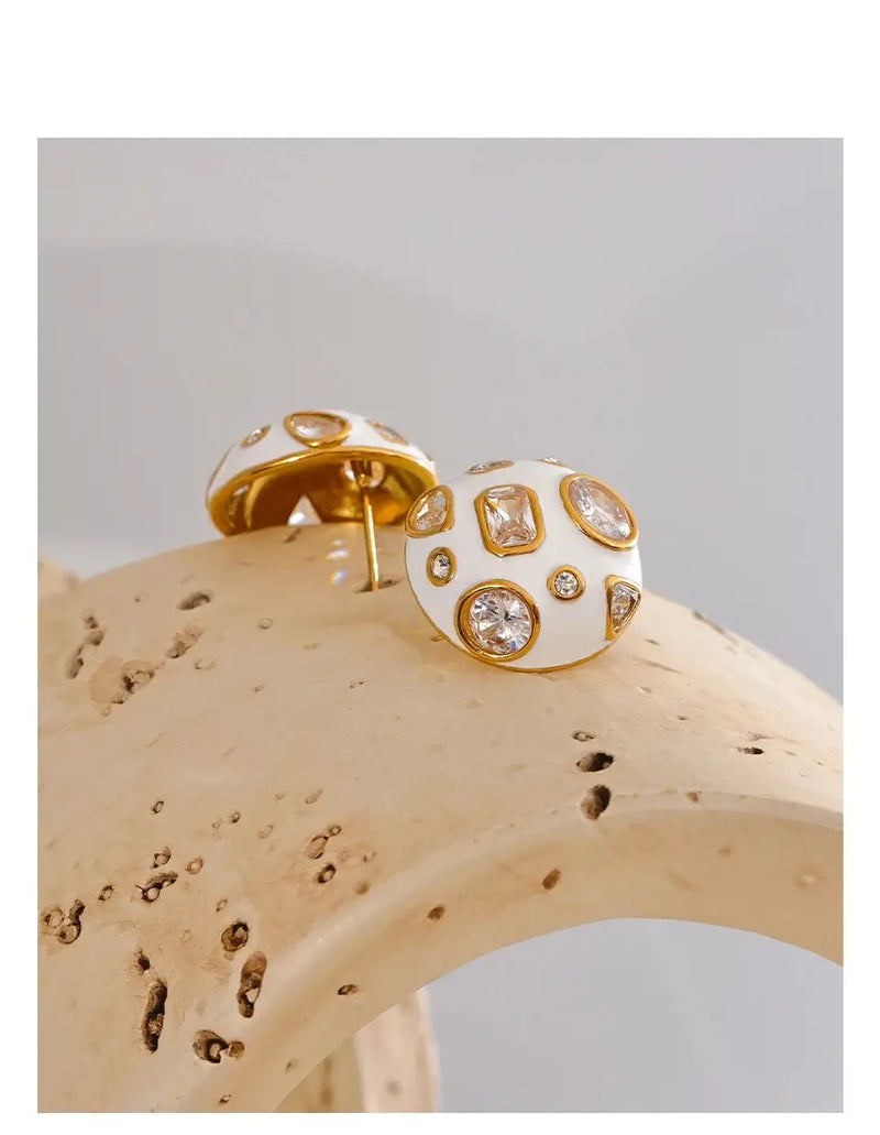 Bellartini Gold White Enamel Cubic Zirconia Charm Stud Earrings WP Venice