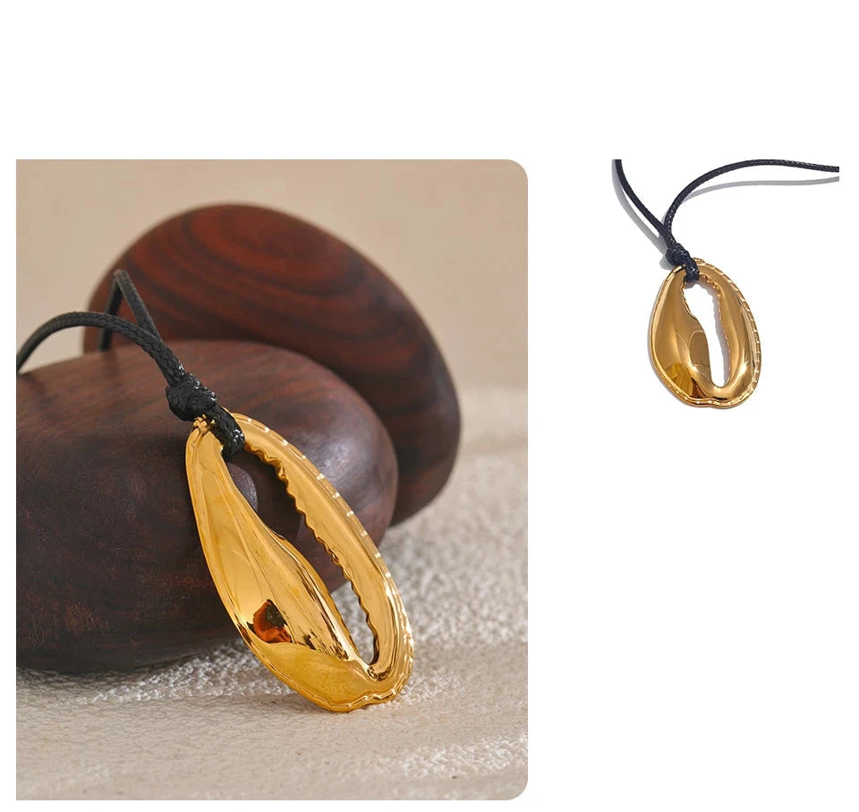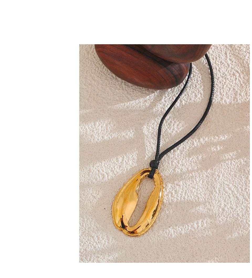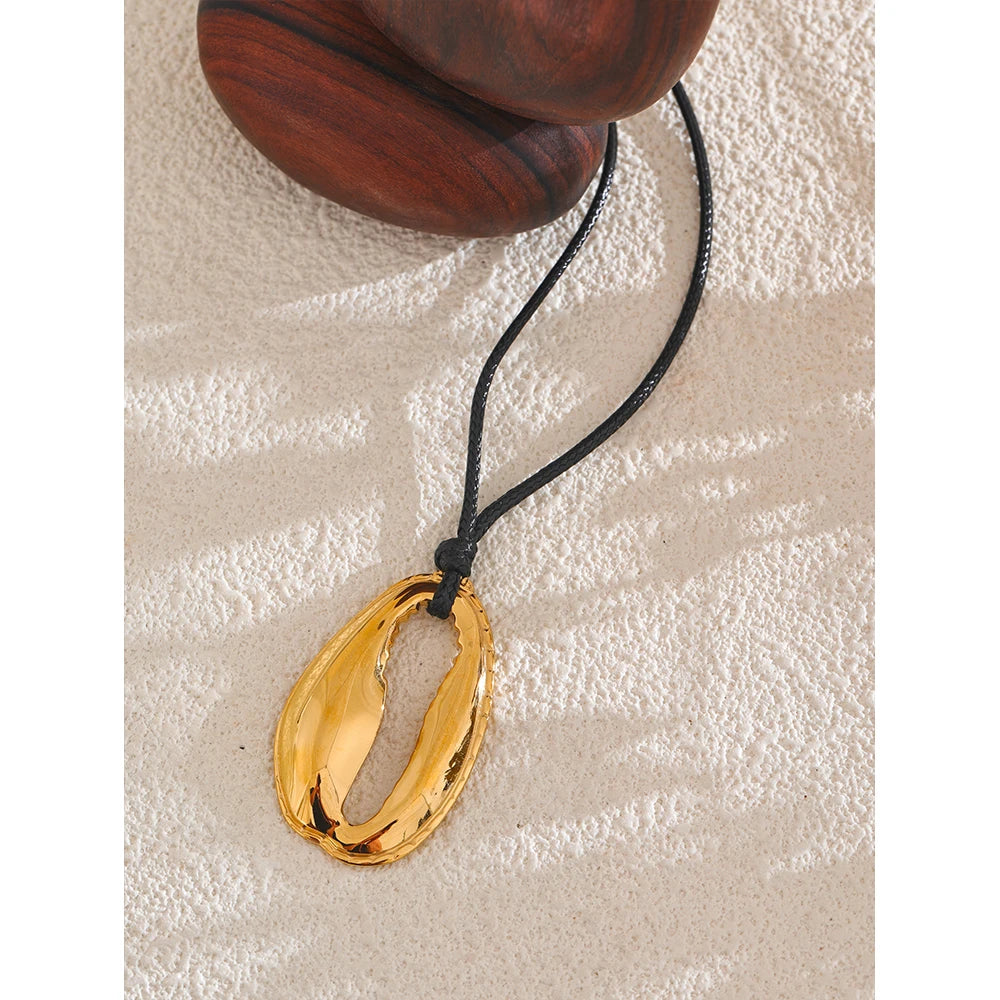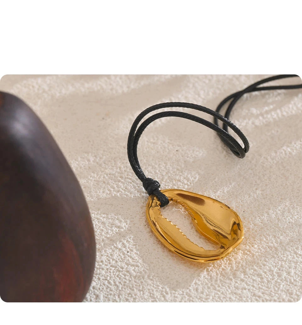 Bellartini Gold Statement Black Rope Chain Shell Pendant Necklace WP Venice