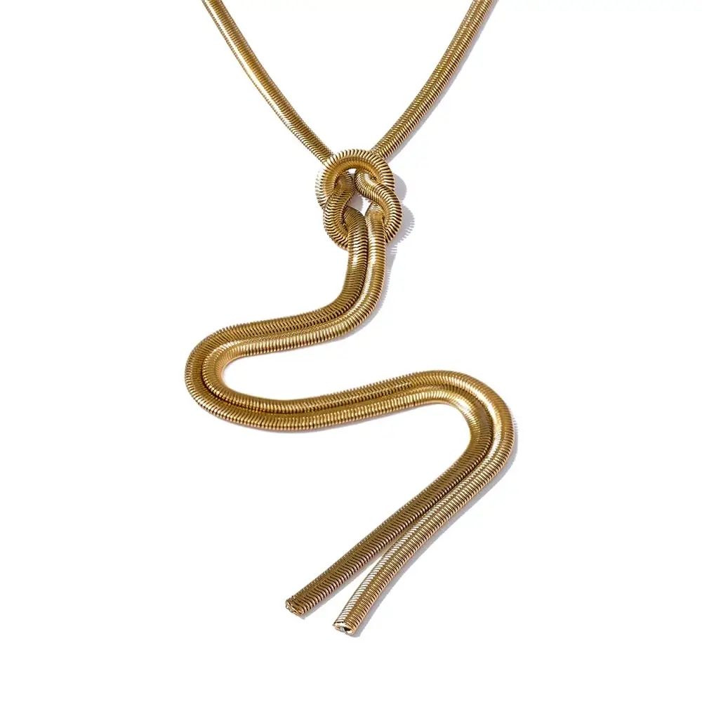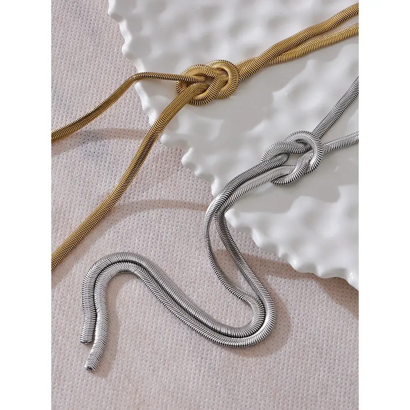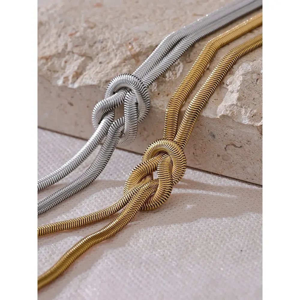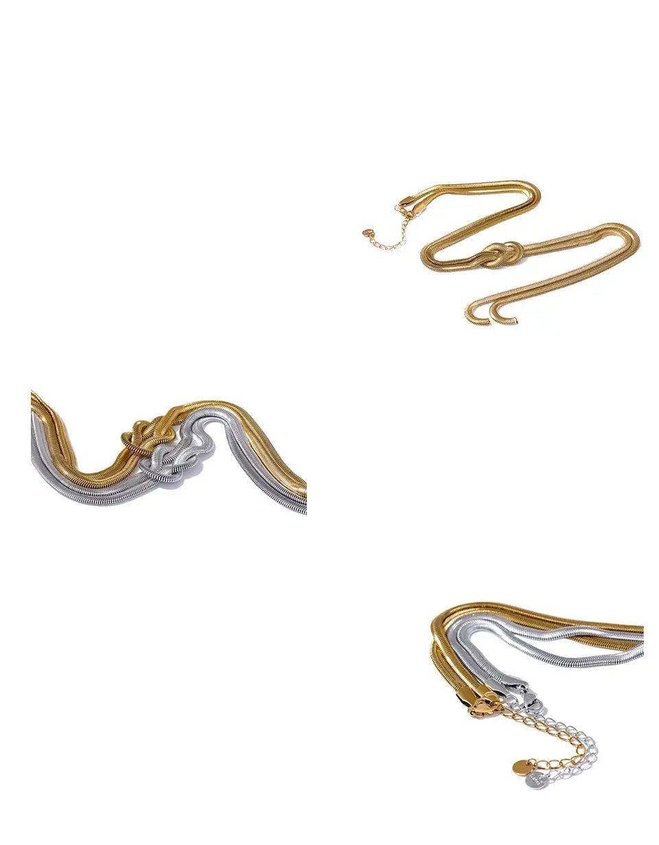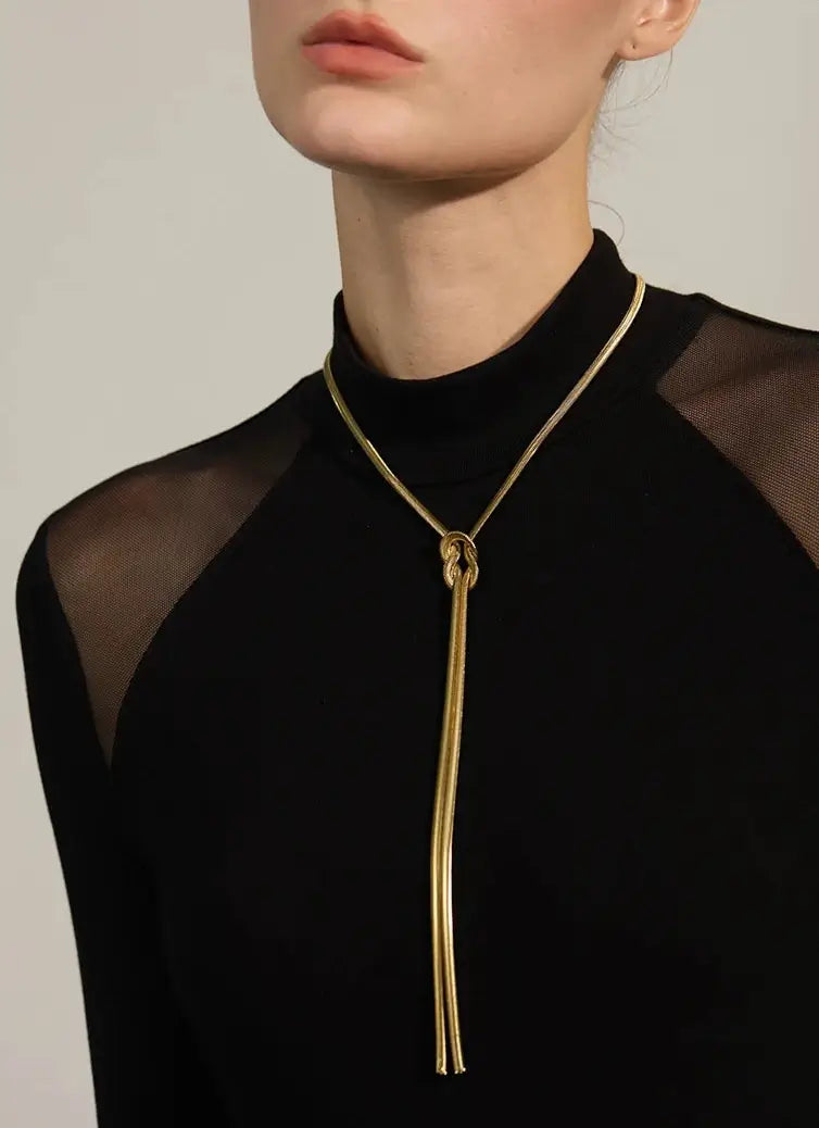 Bellartini Gold Snake Chain Knot Long Chest Bib Necklace WP Venice
