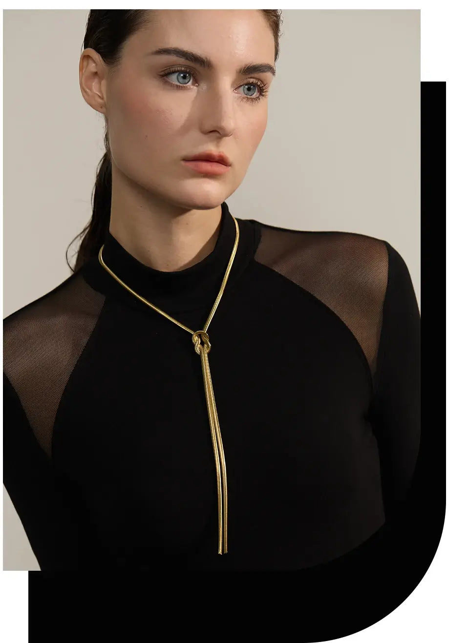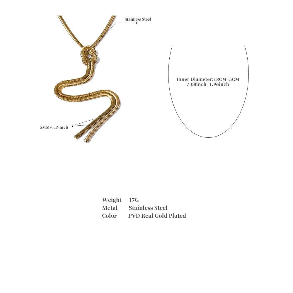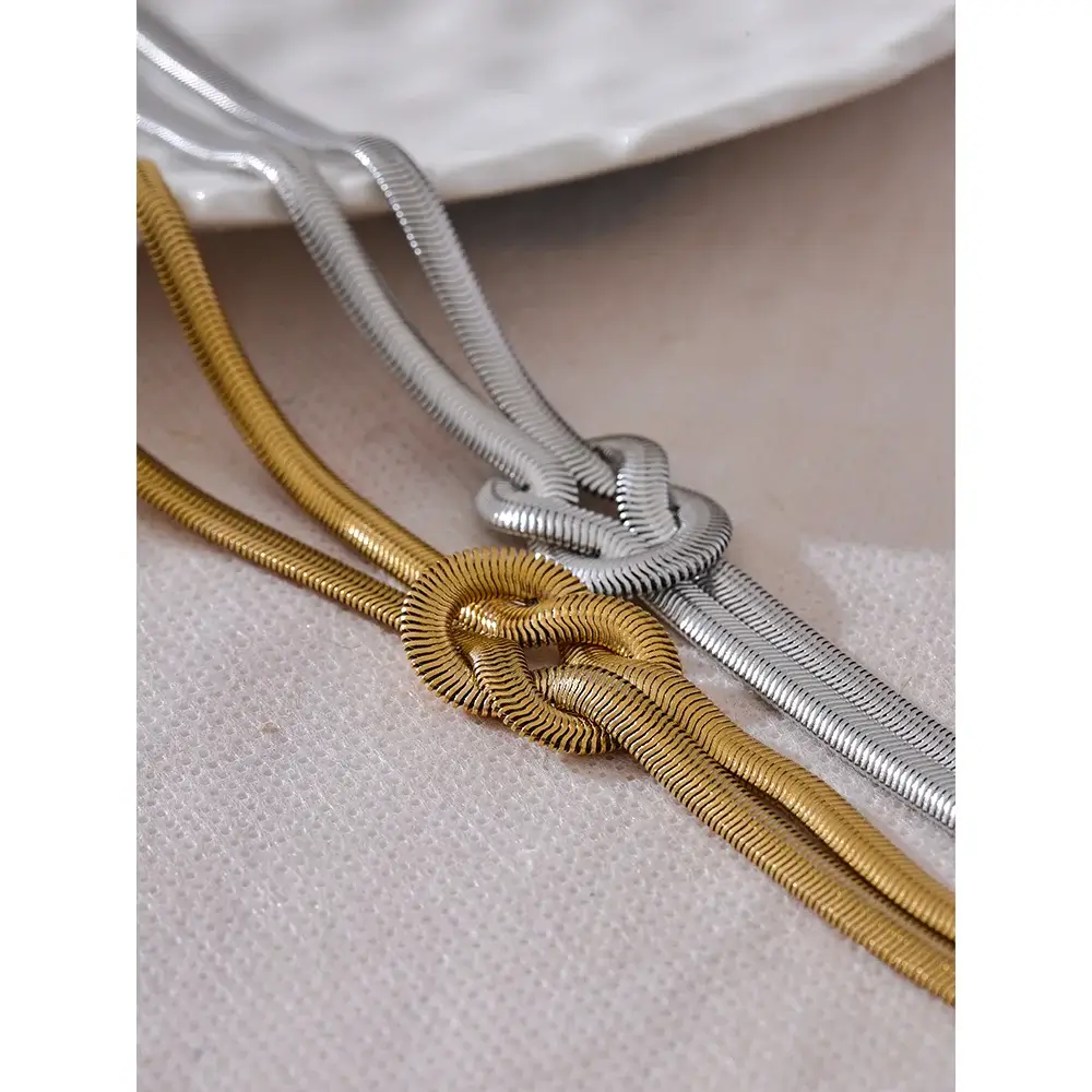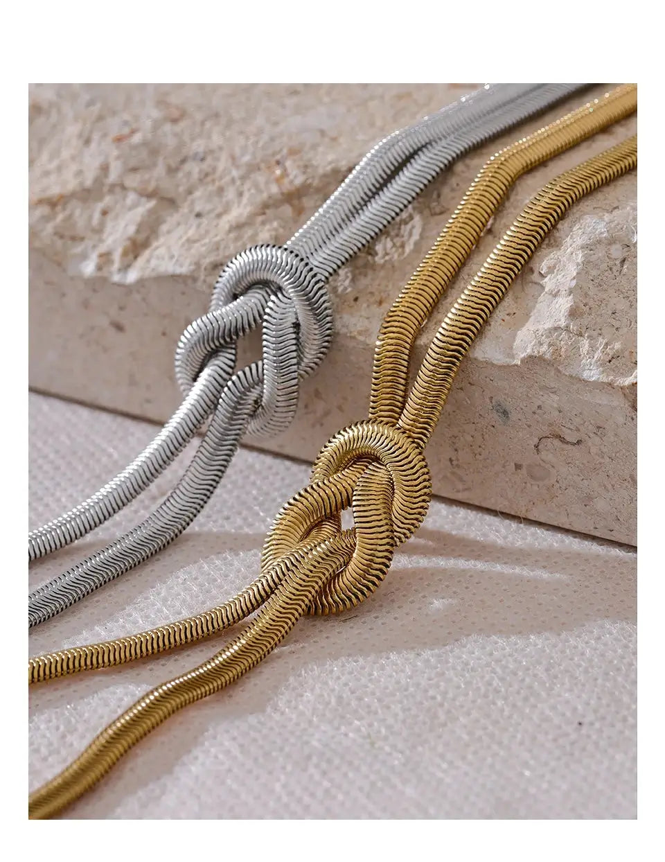 Bellartini Gold Snake Chain Knot Long Chest Bib Necklace WP Venice