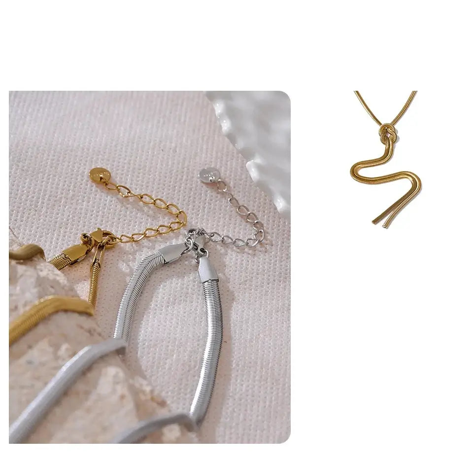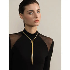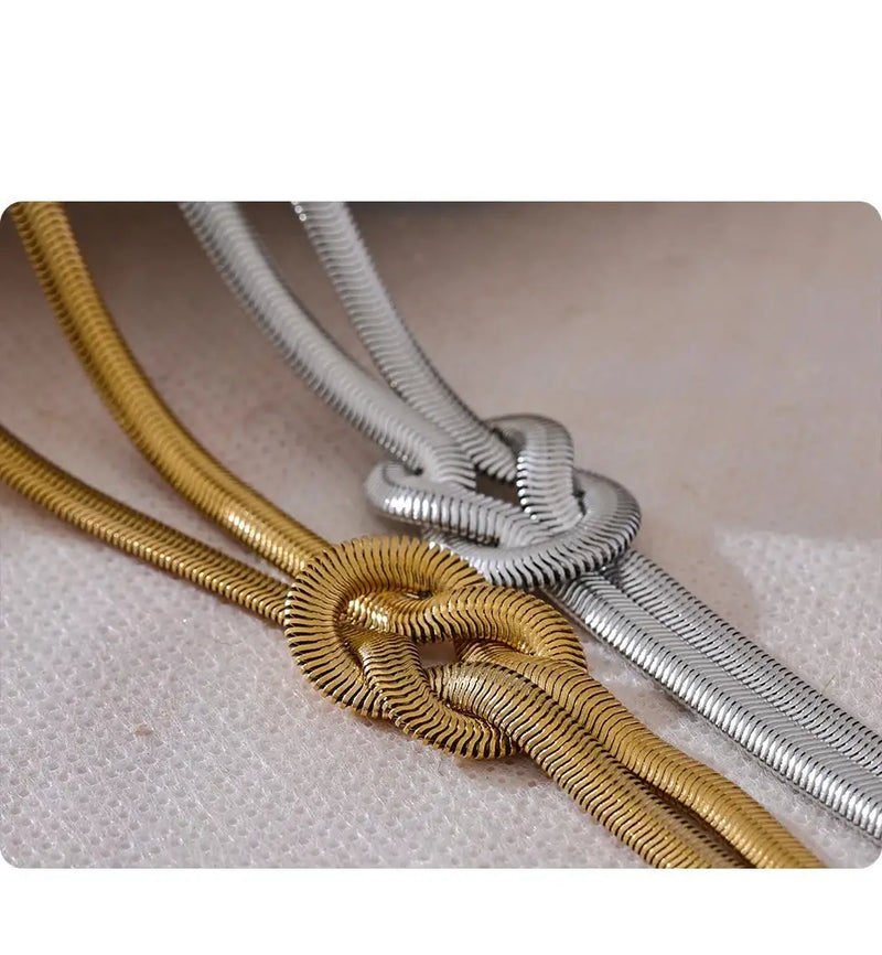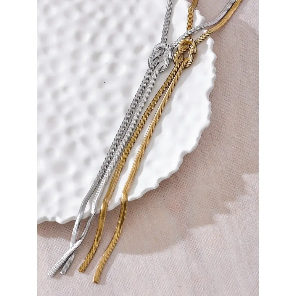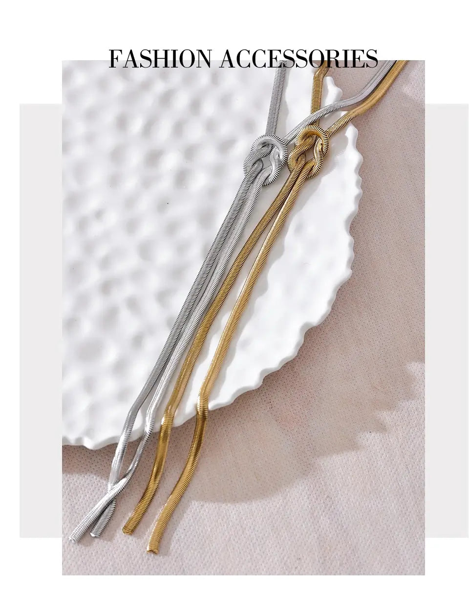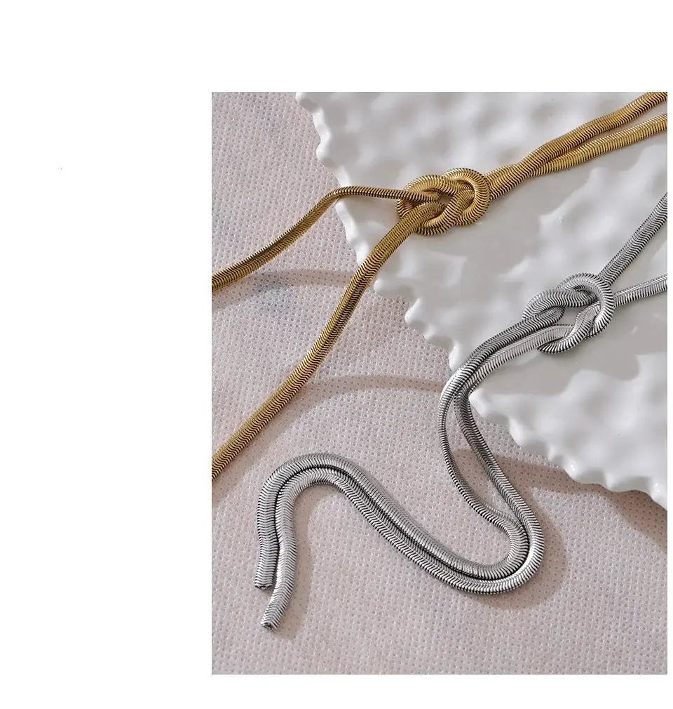 Bellartini Gold Snake Chain Knot Long Chest Bib Necklace WP Venice