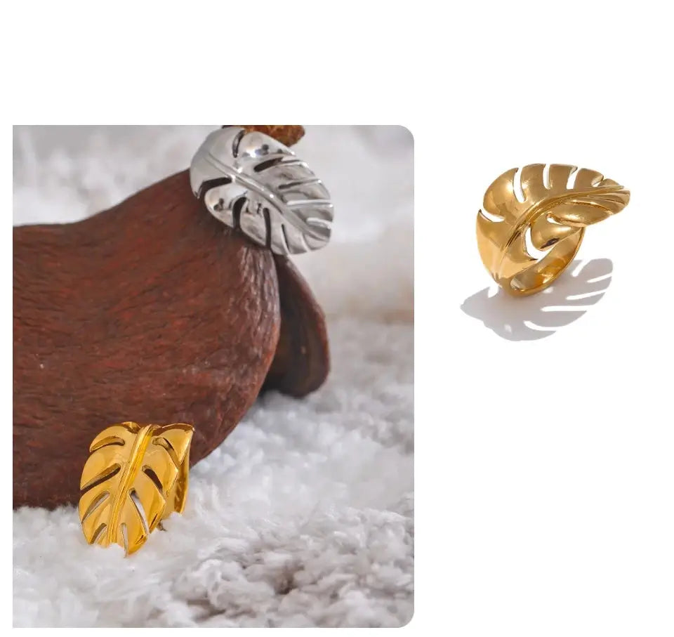 Bellartini Gold Metal Leaf Leaves Open Ring WP Venice