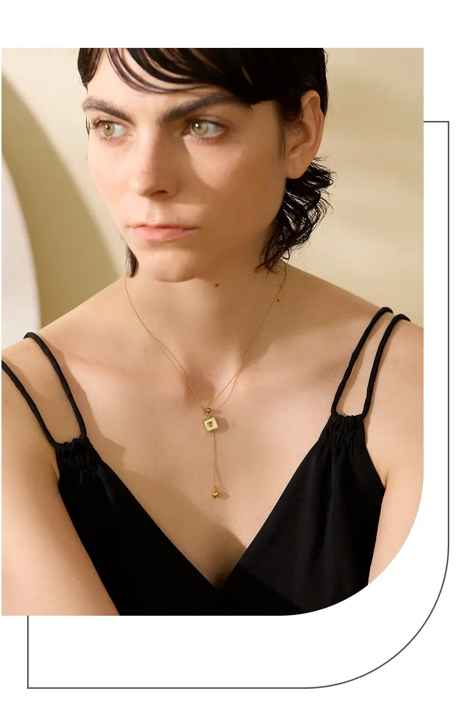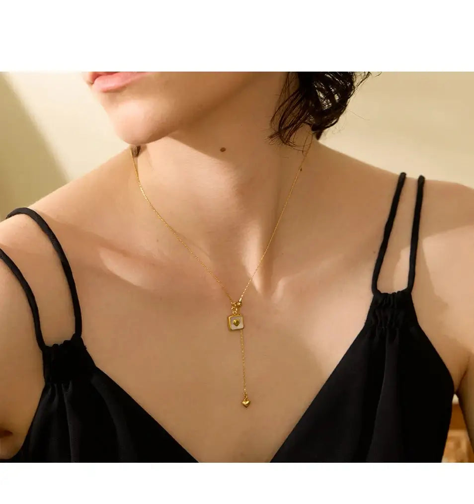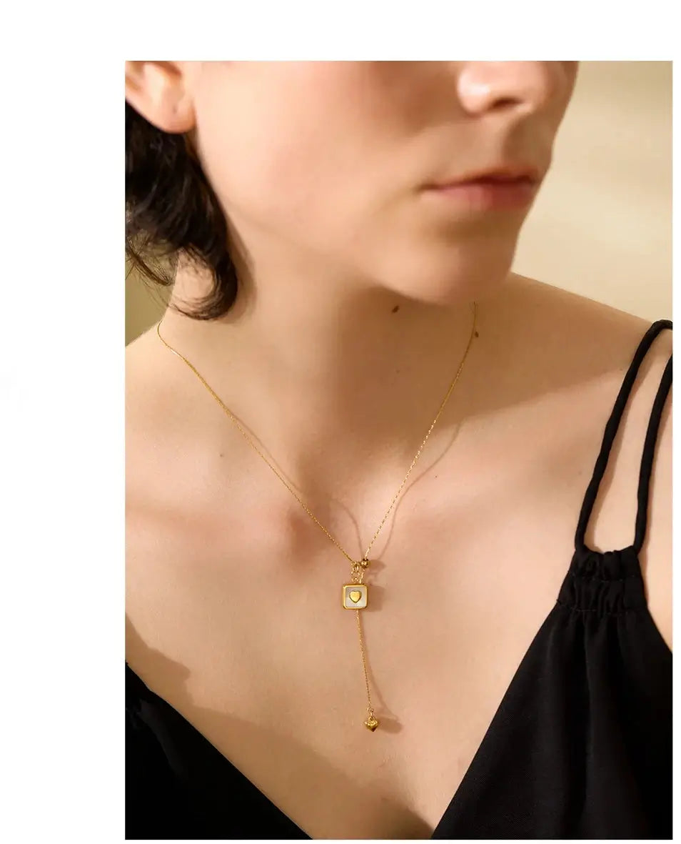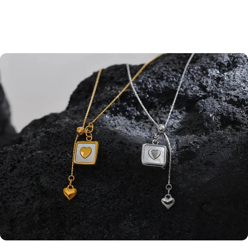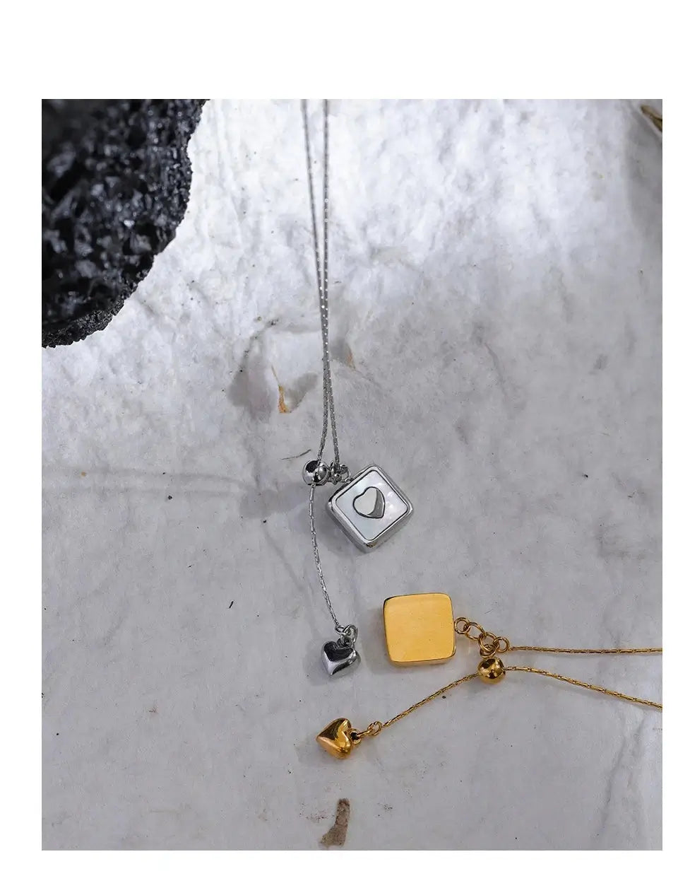 Bellartini 18k Gold Stylish Square Heart Shell Pendant Necklace WP Venice