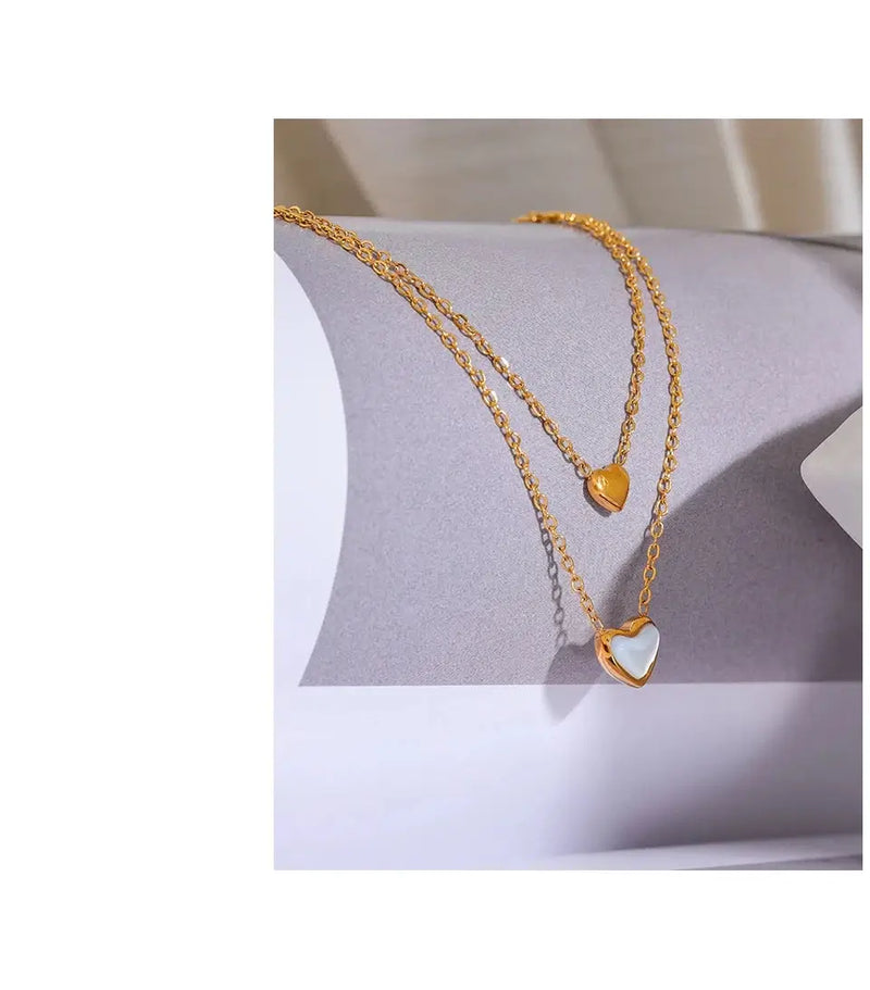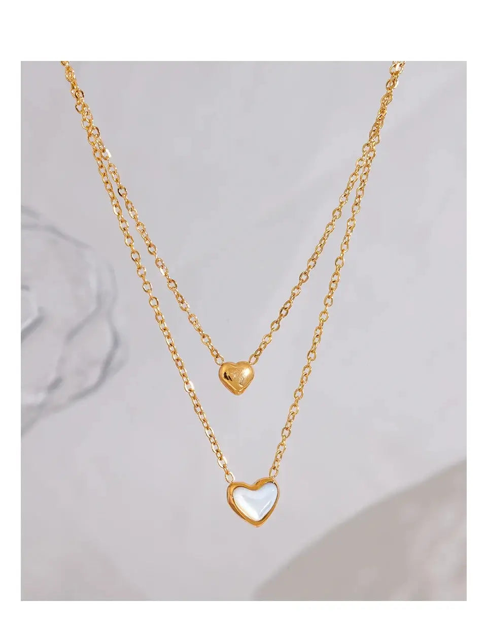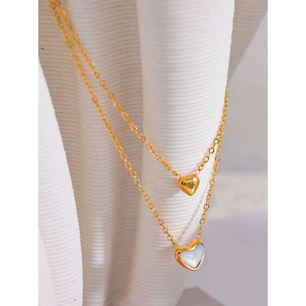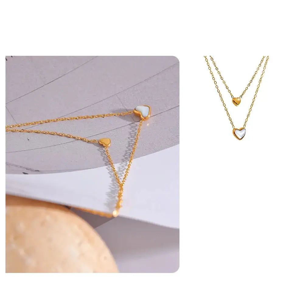 Bellartini Gold Heart Natural Shell Pendant Double Layered Necklace WP Venice