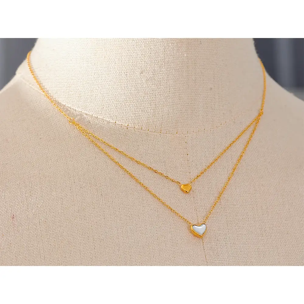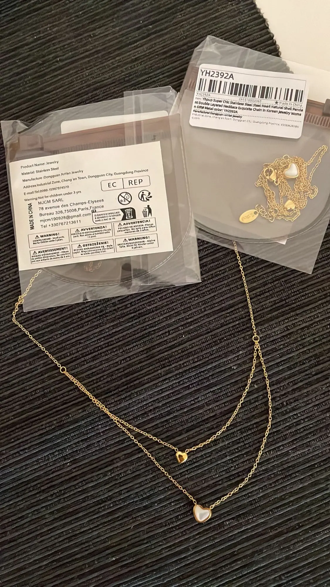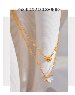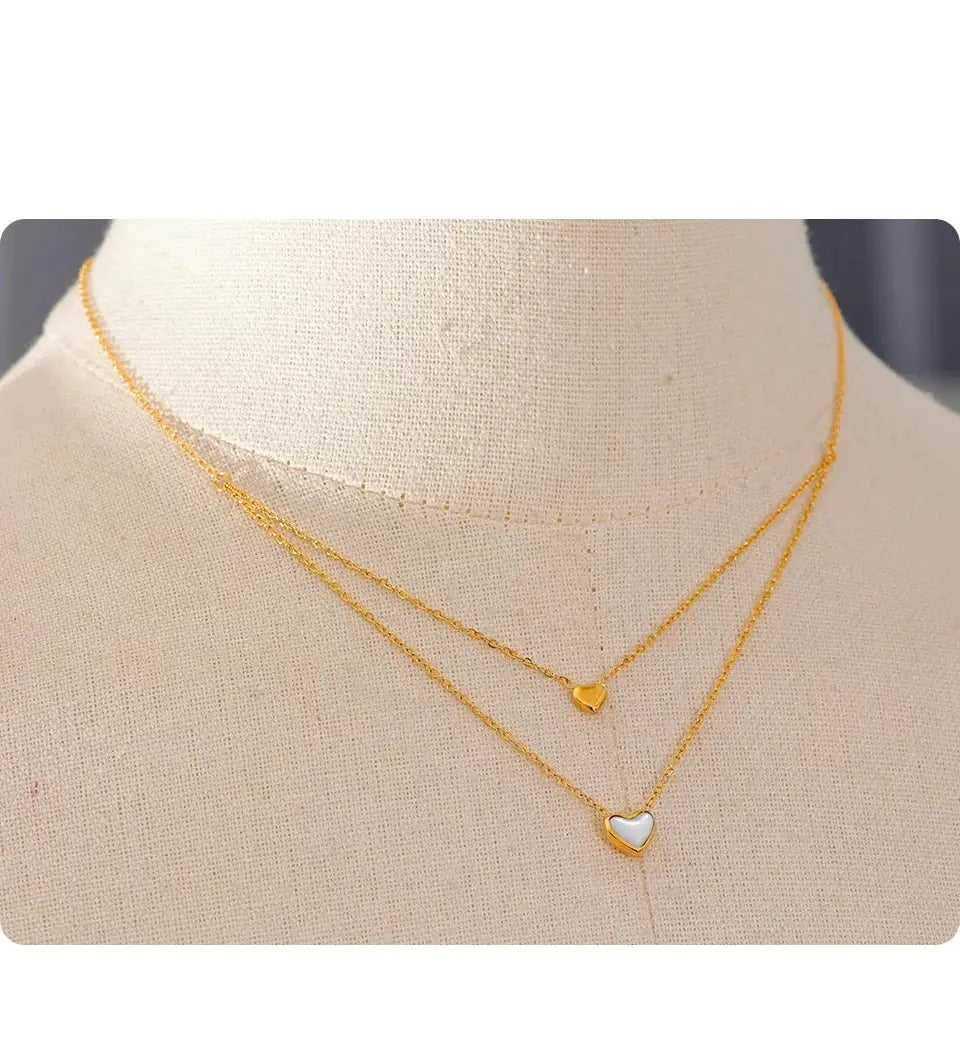 Bellartini Gold Heart Natural Shell Pendant Double Layered Necklace WP Venice